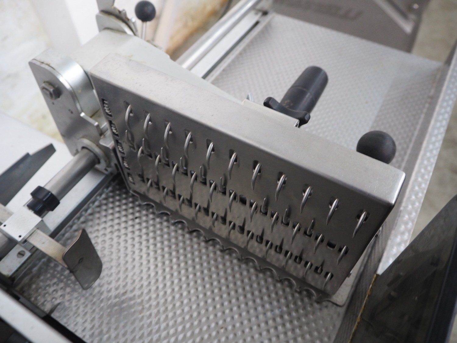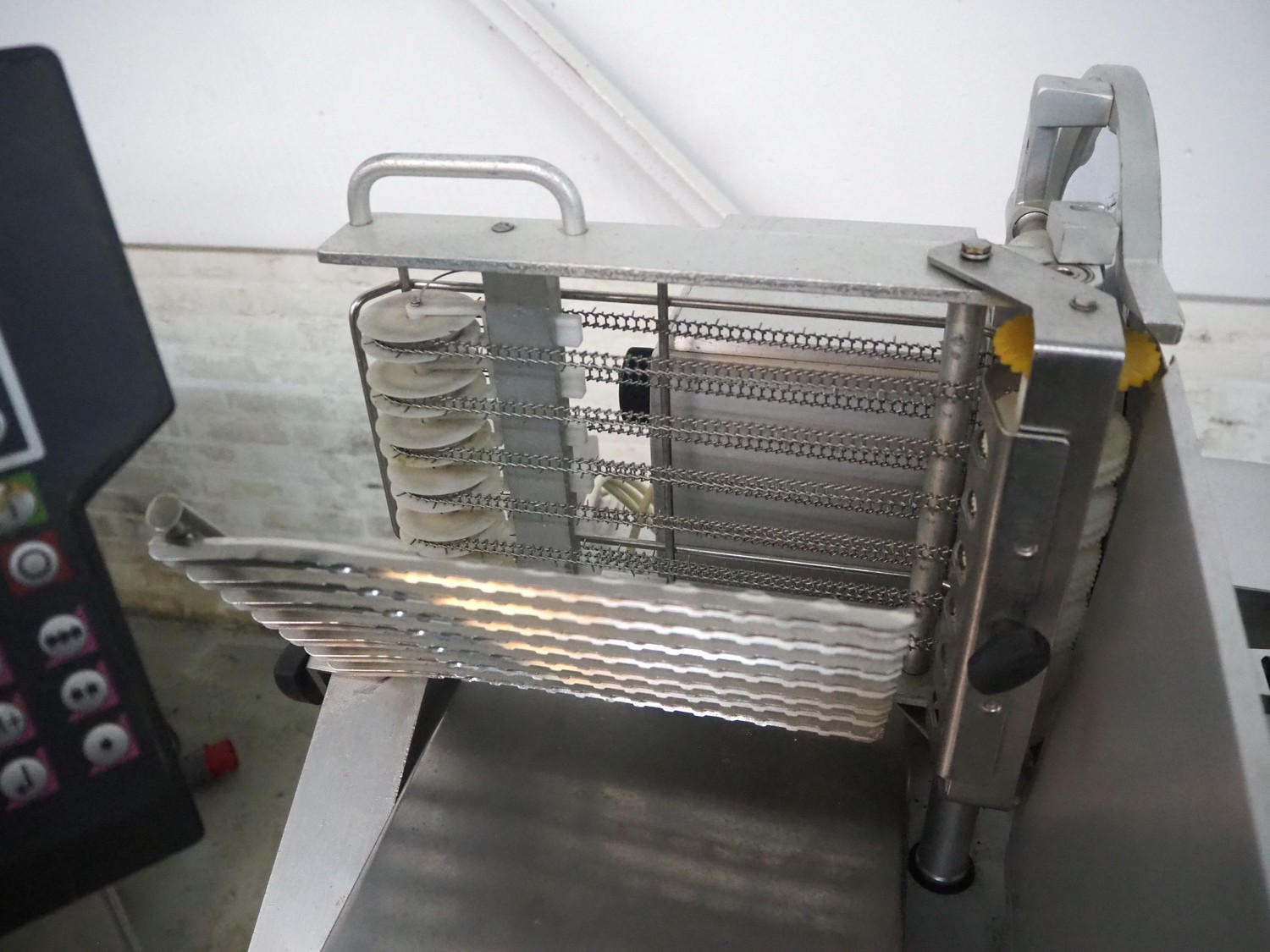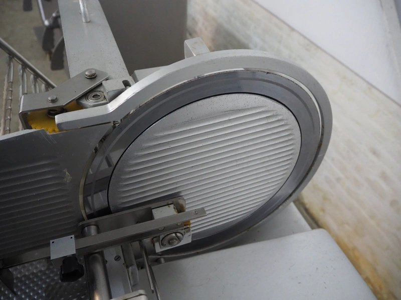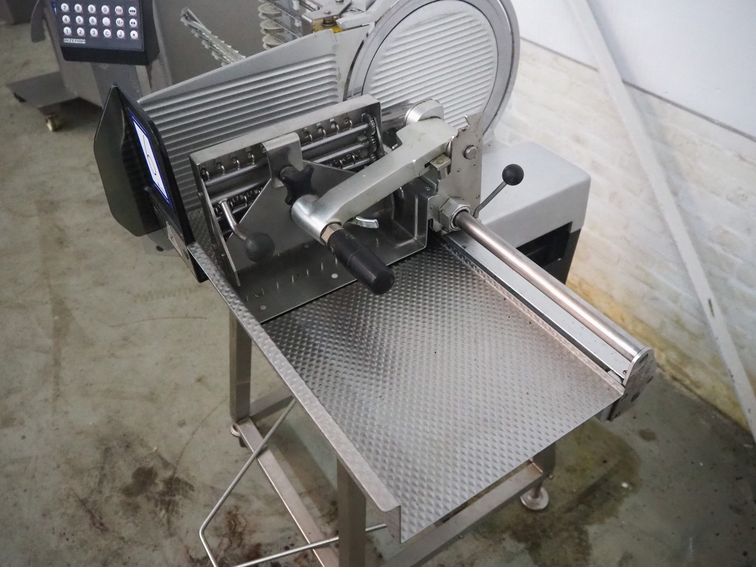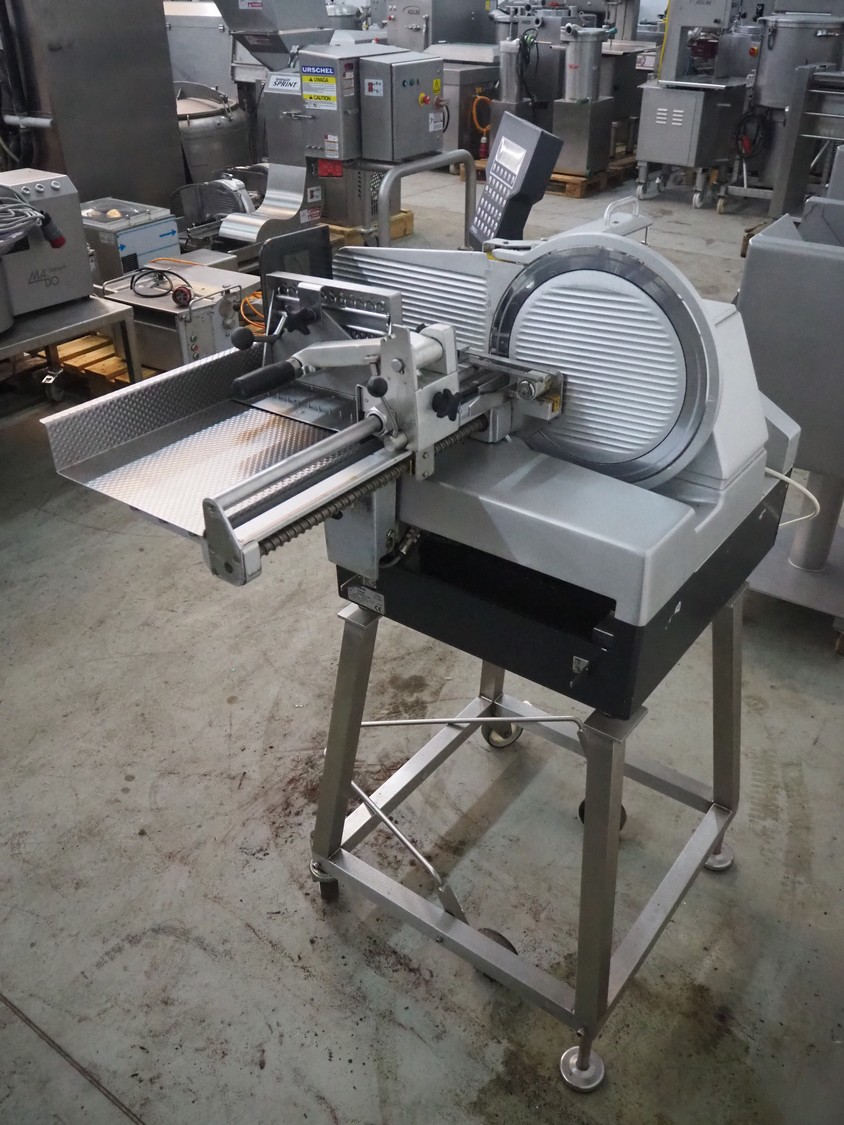 Bizerba automatic slicer, type: A 404, number: 2066935, year of construction: 2002, 230 V, 1 Ph, 50 Hz, 3.1 A, dimensions: 1000 mm x 800 mm x 1370 mm.