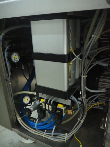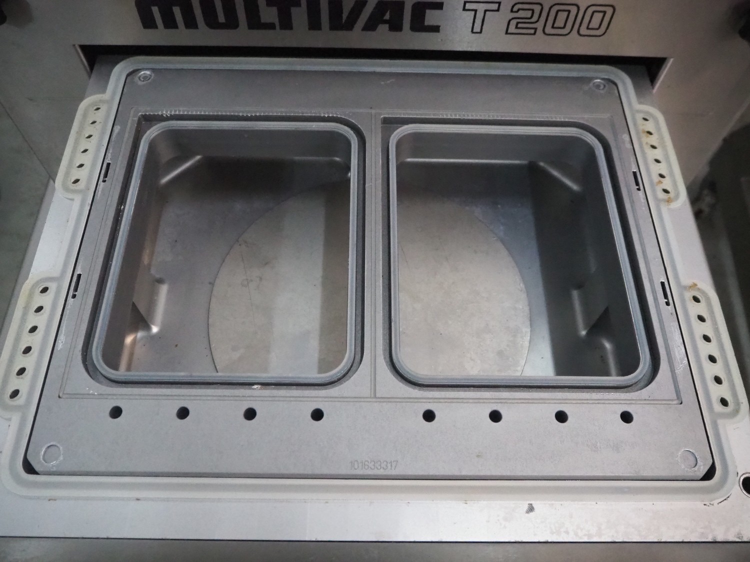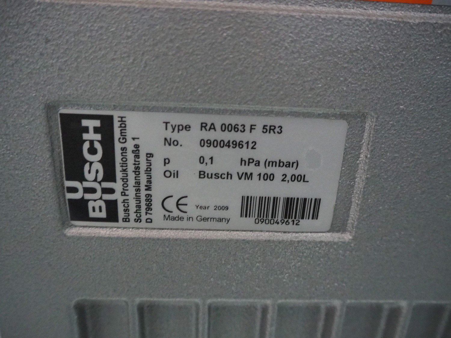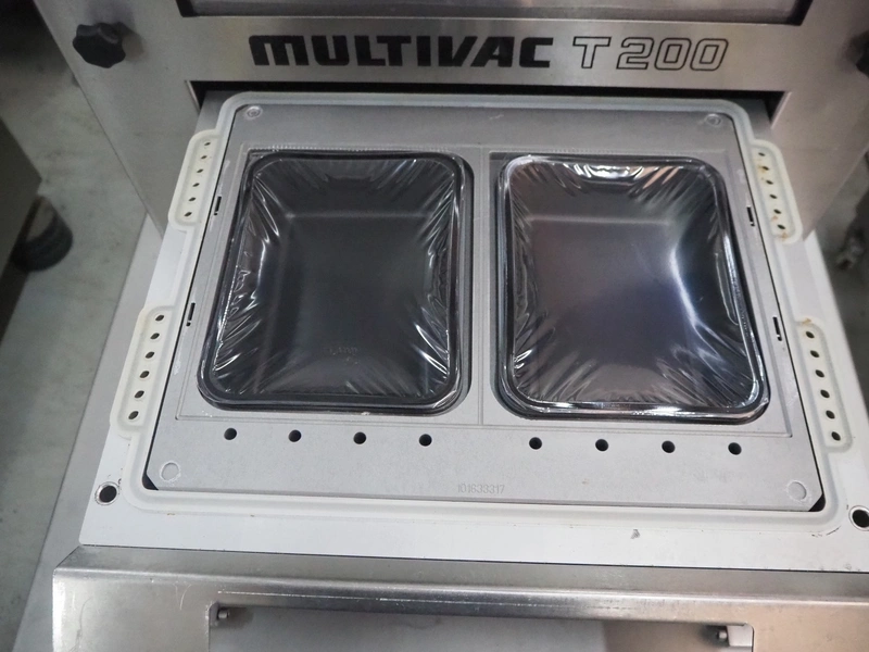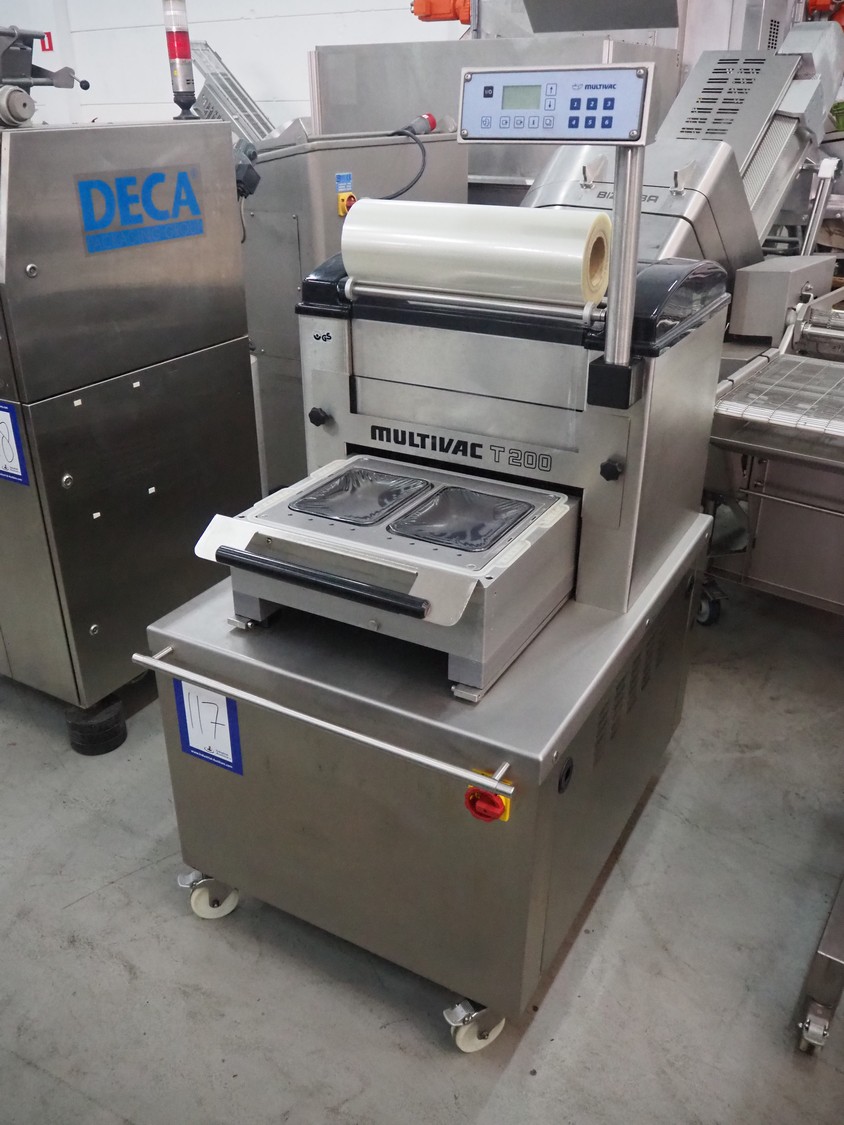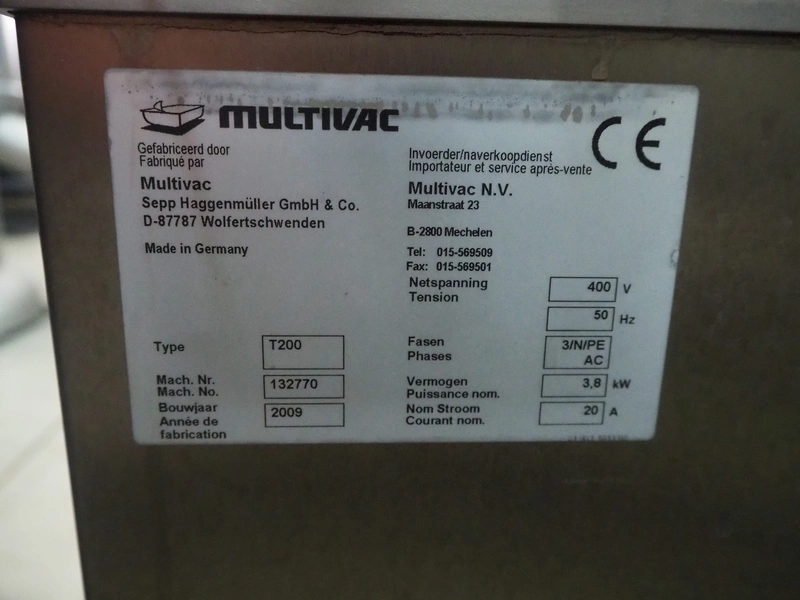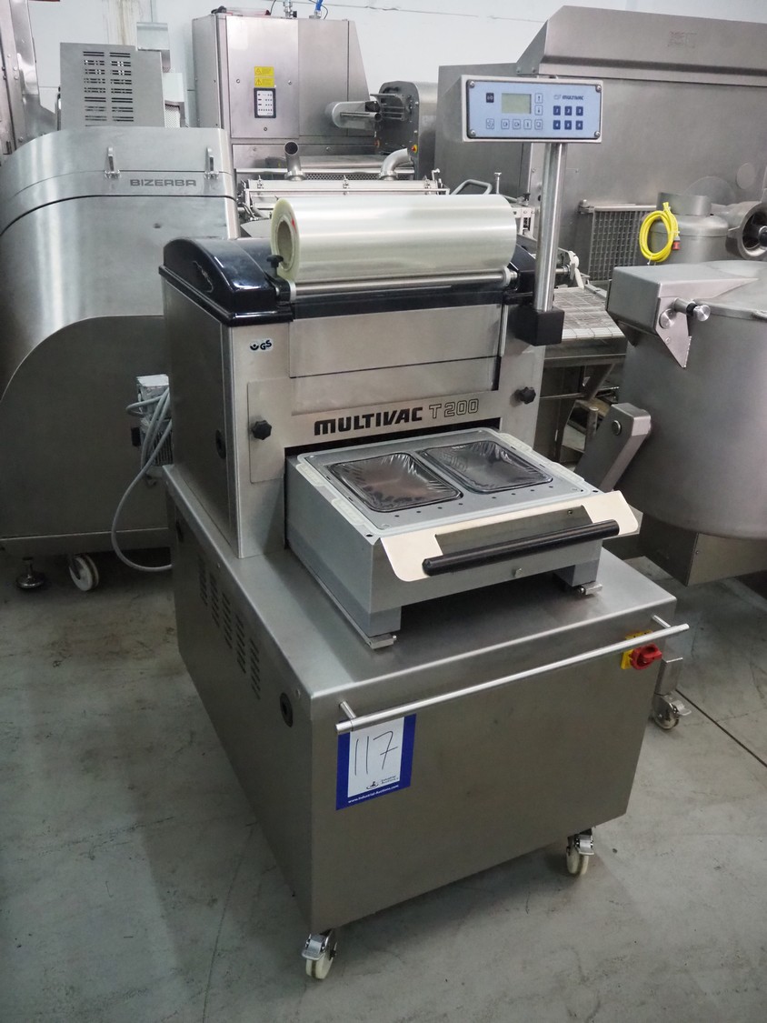 Multivac mobile traysealer, type: T200, machine number: 132770, year of construction: 2009, 400 V, 3 Ph, 50 Hz, 20 A, 3.8 kW, film width: 450 mm, dimensions dye: (2x) 230 mm x 180 mm, Busch vacuum pump, type: RA 0063 F, year of construction: 2009, capacity: 63 m³ per hour, total dimensions: 1050 mm x 750 mm x 1600 mm.