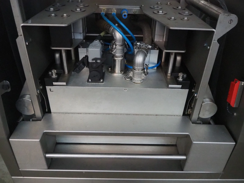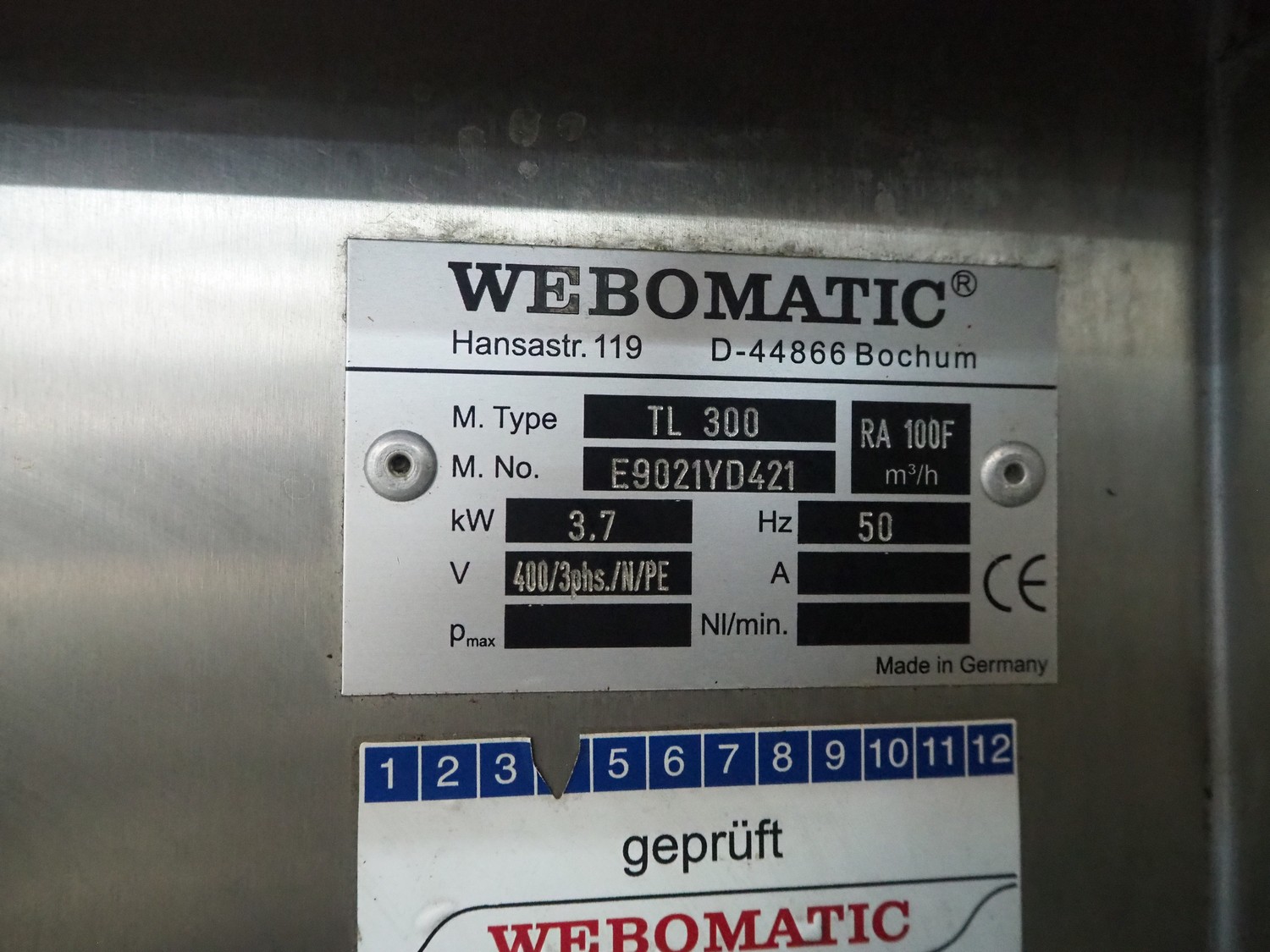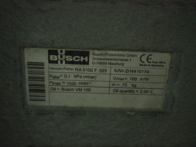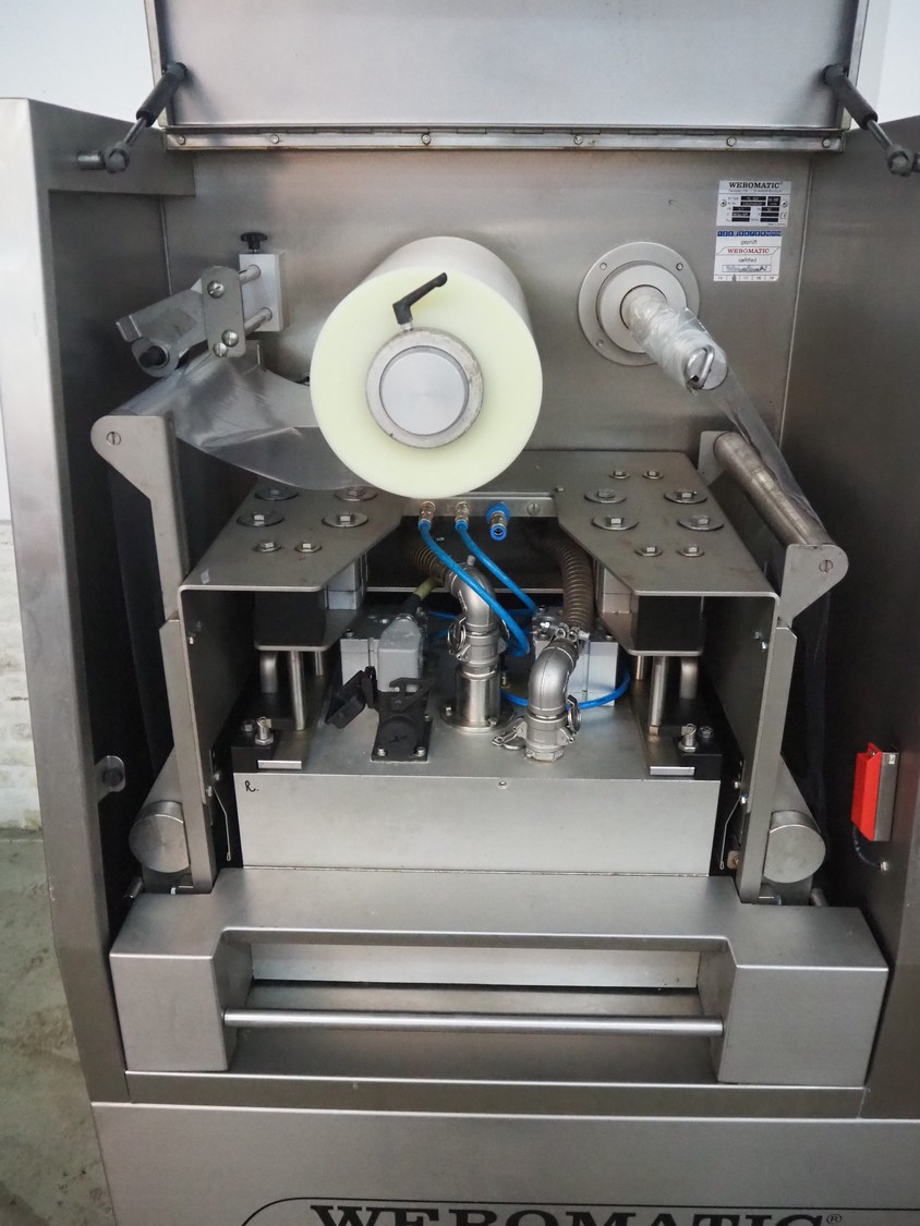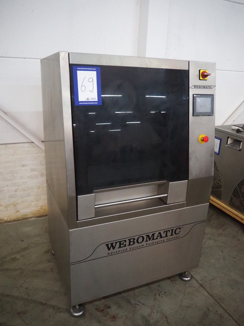 Webomatic traysealer, type: TL 300, machine number: E9021YD421, 400 V, 3 Ph, 50 Hz, 3.7 kW, Busch vacuum pump, type: RA 0100 F 503, serial number: D14410174, , year of construction: 2014, capacity: 100 m³ per hour, total dimensions: 1000 mm x 810 mm x 1600 mm.