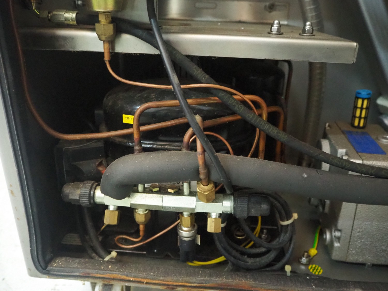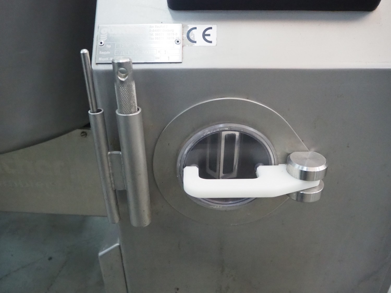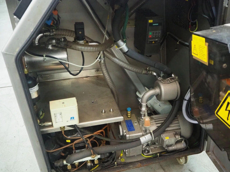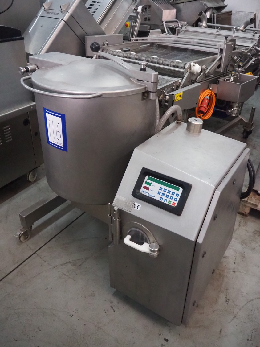 Günther Maschinenbau GmbH mobile cooled vacuum tumbler, type: GPM 130K, machine number: 27156, year of construction: 2001, 400 V, 16 A, 1 kW, volume: 130 liter, Becker vacuum pump, total dimensions: 1270 mm x 900 mm x 1300 mm.