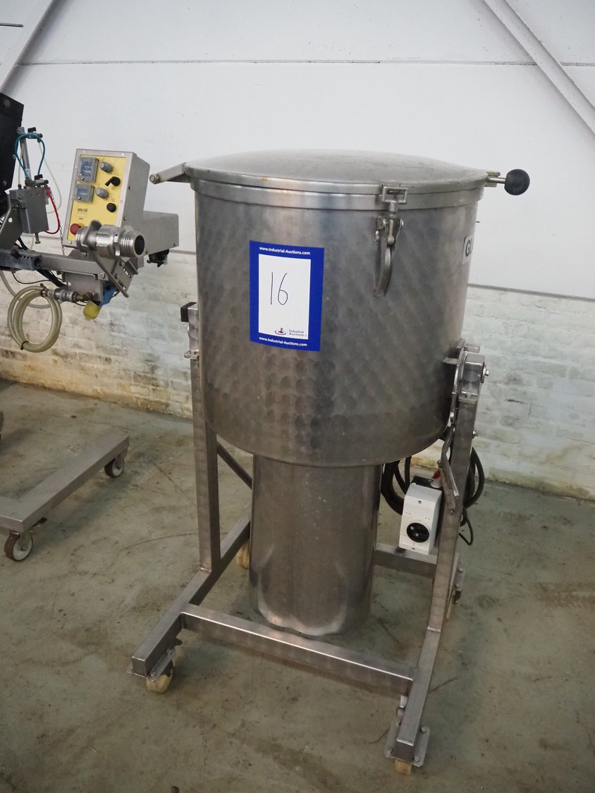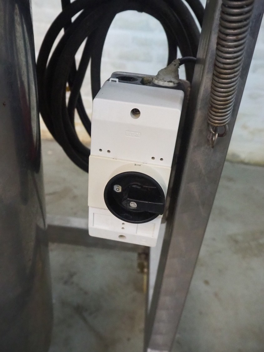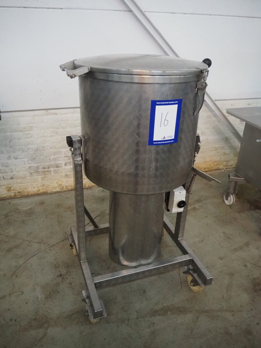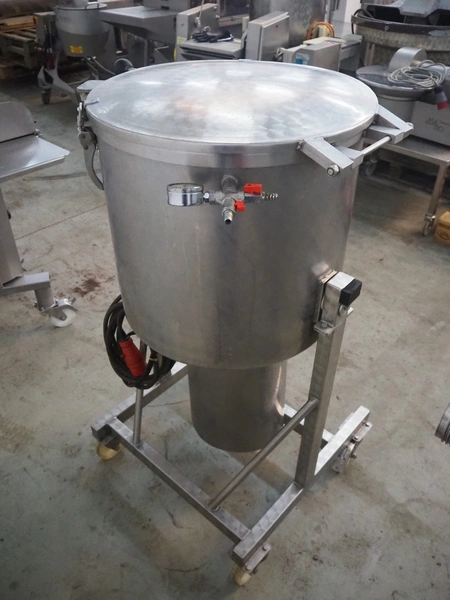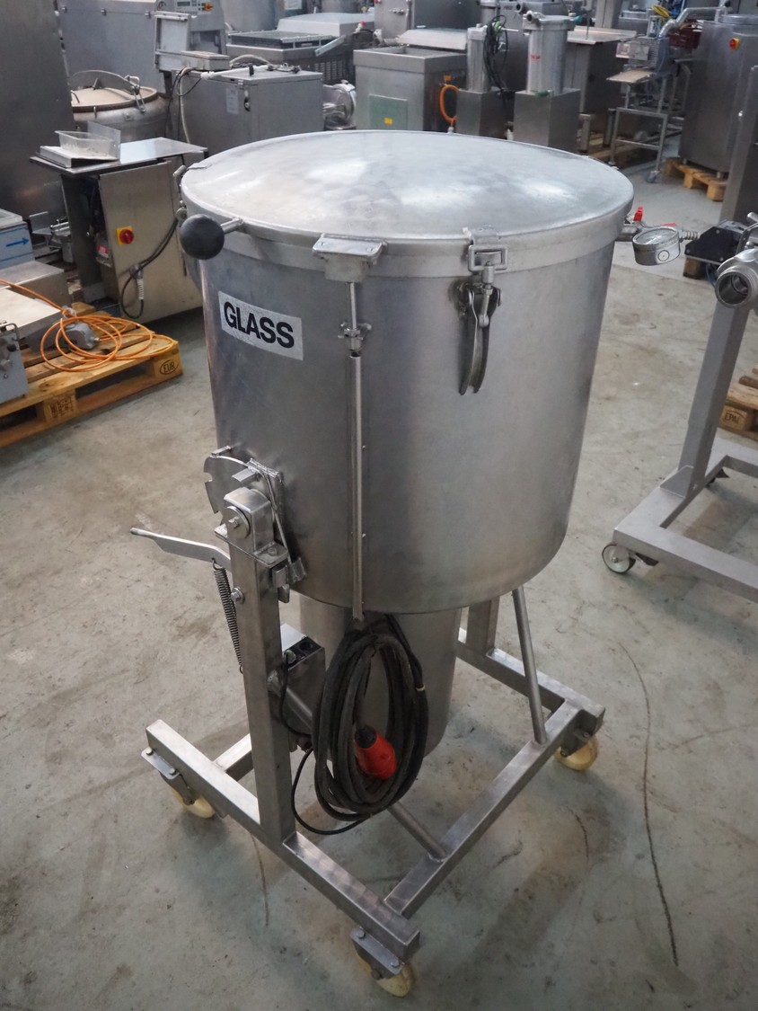 Glass mobile tumbler, inside dimensions: Ø 650 mm x 620 mm, total dimensions: 800 mm x 750 mm x 1400 mm.