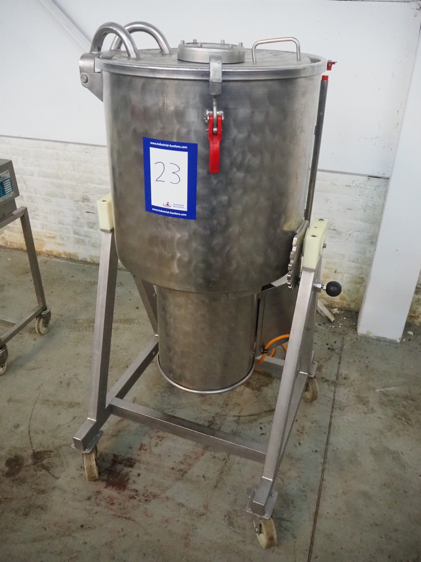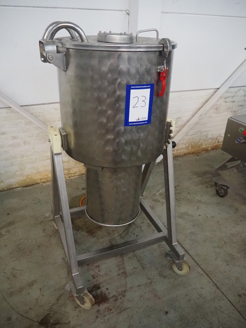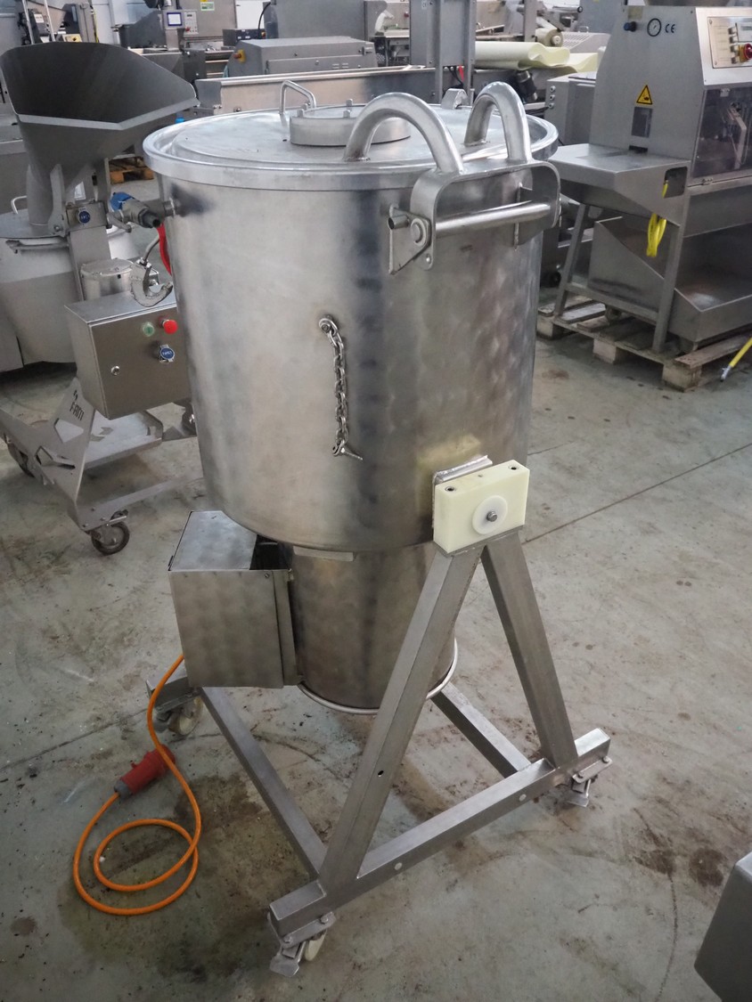 S/s mobile tumbler, inside dimensions: Ø 600 mm x 600 mm, total dimensions: 800 mm x 850 mm x 1550 mm.