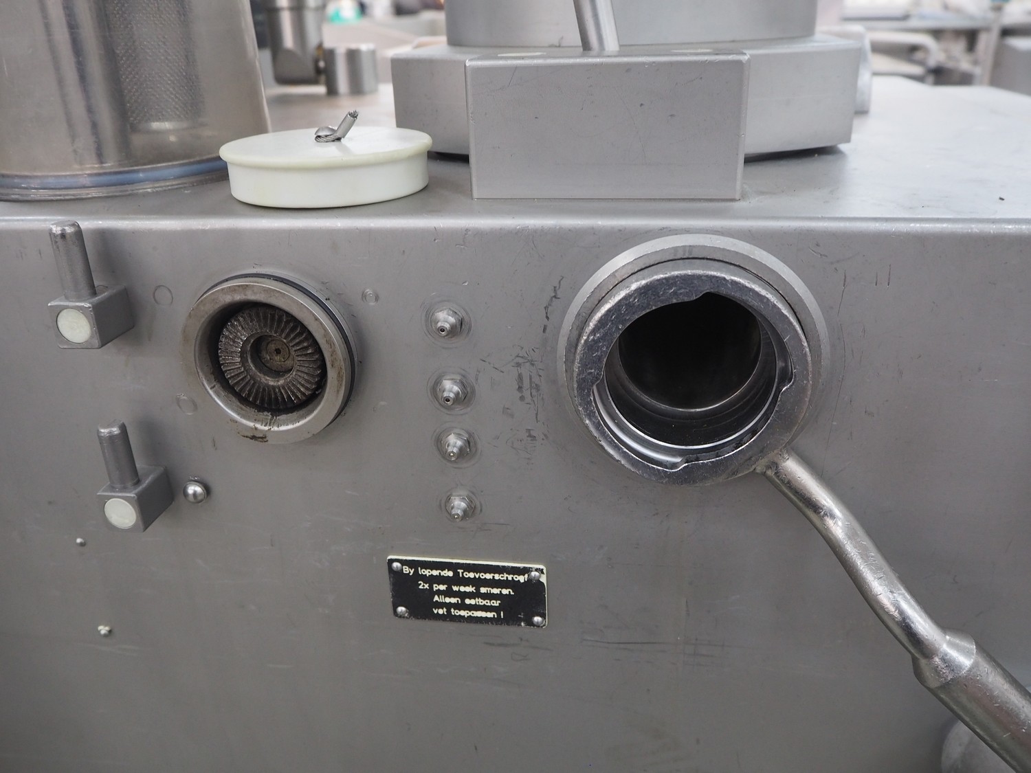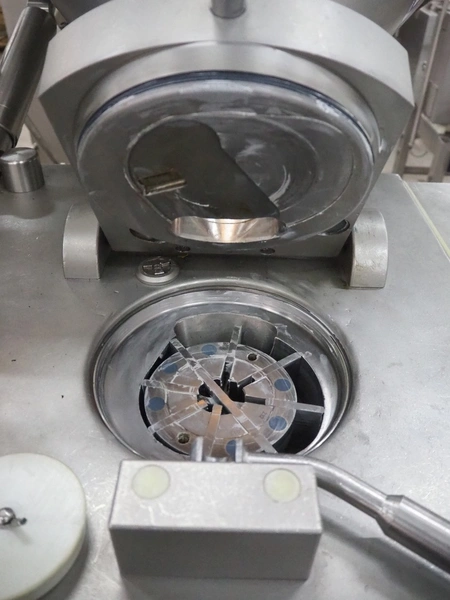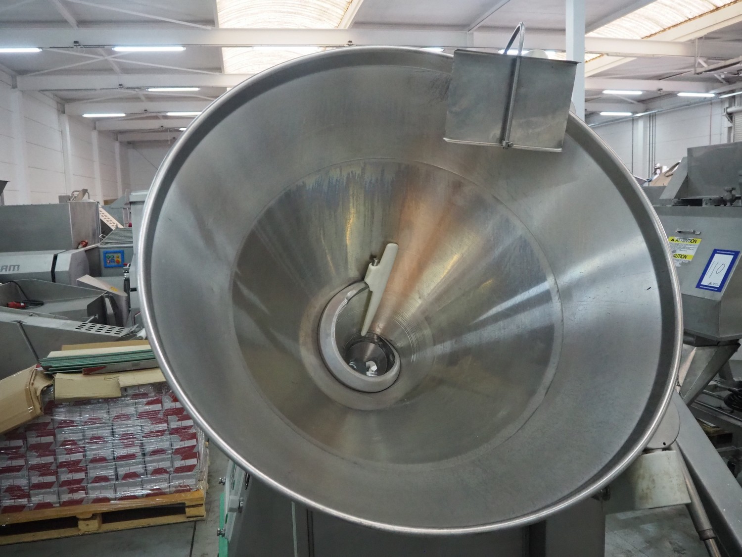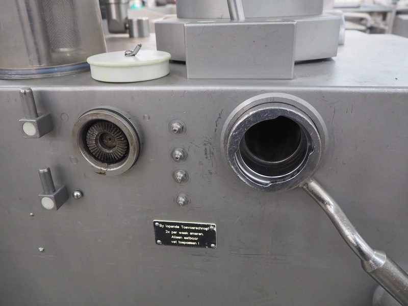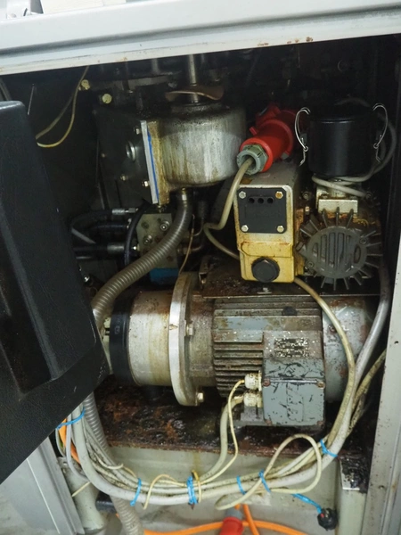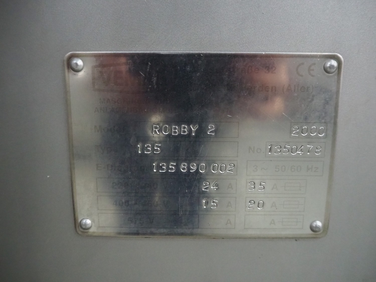Vemag vacuum filling machine with lifter for 200 liter meat bins, model: Robby 2, type: 135, number: 1350478, year of construction: 2000, Busch vacuum pump, type: KC 0016 E 320, number: 140020158, year of construction: 2014, capacity: 16/19 m³ per hour, dimensions: 1800 mm x 1300 mm x 2000 mm.