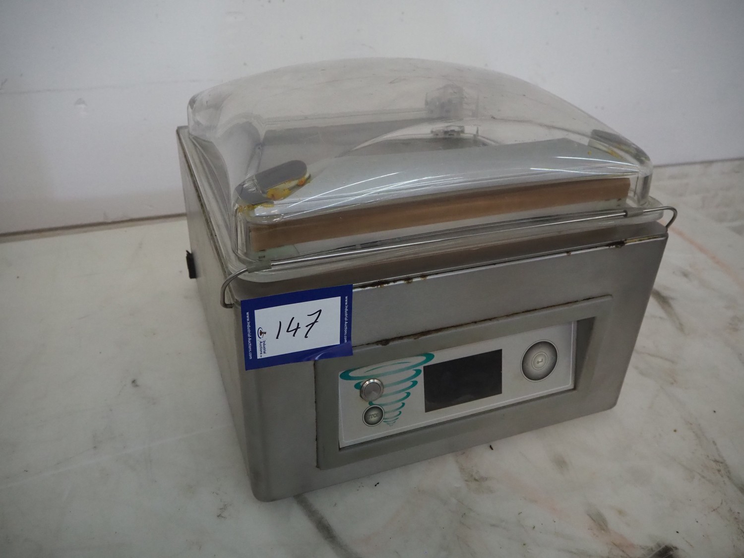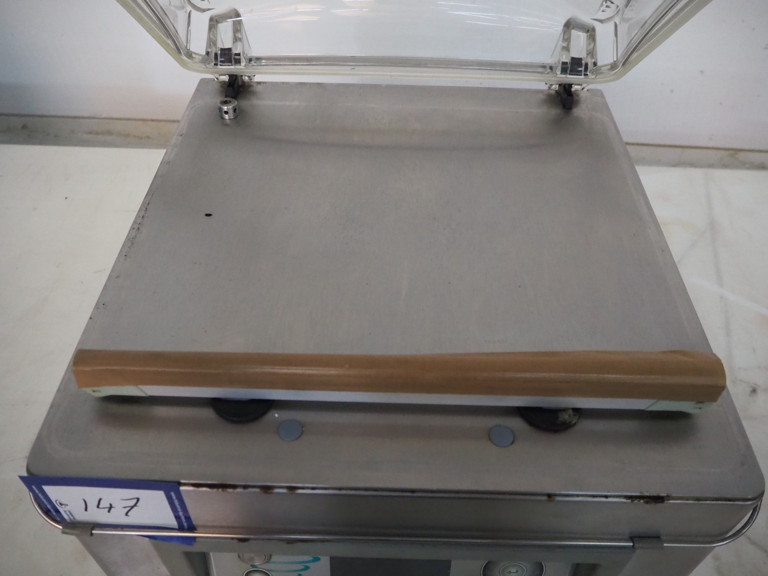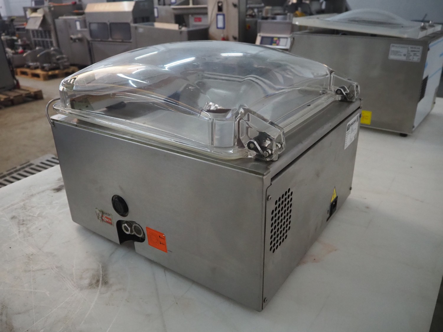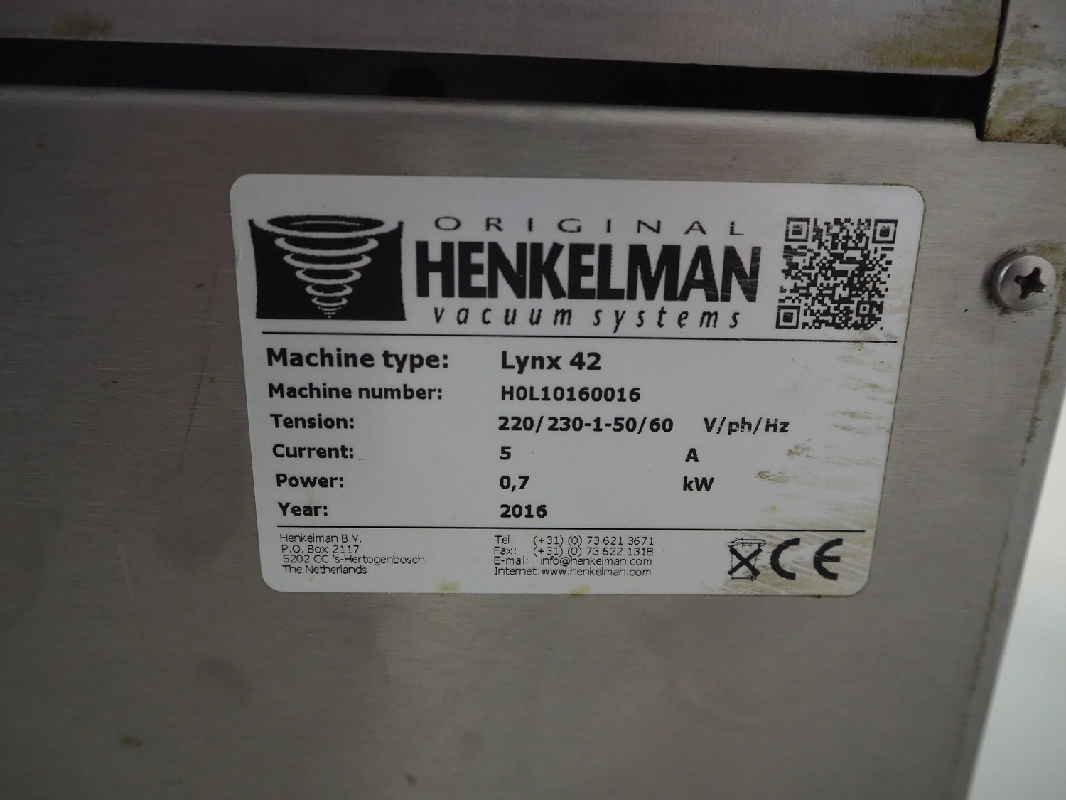 Henkelman vacuum machine, type: Lynx 42, machine number: H0L10160016, year of construction: 2016, 220/230 V, 1 Ph, 50/60 Hz, 5 A, 0.7 kW, seal length: 430 mm, chamber: 430 mm x 370 mm, total dimensions: 520 mm x 500 mm x 400 mm.