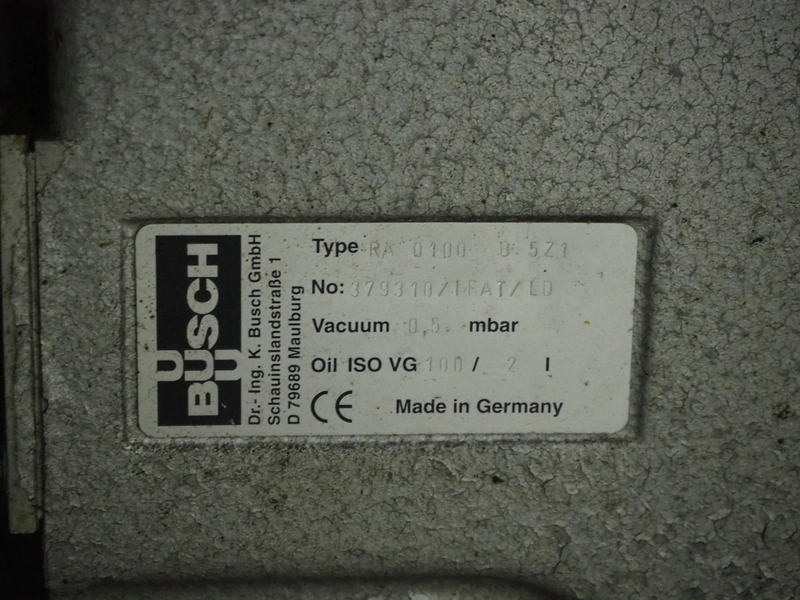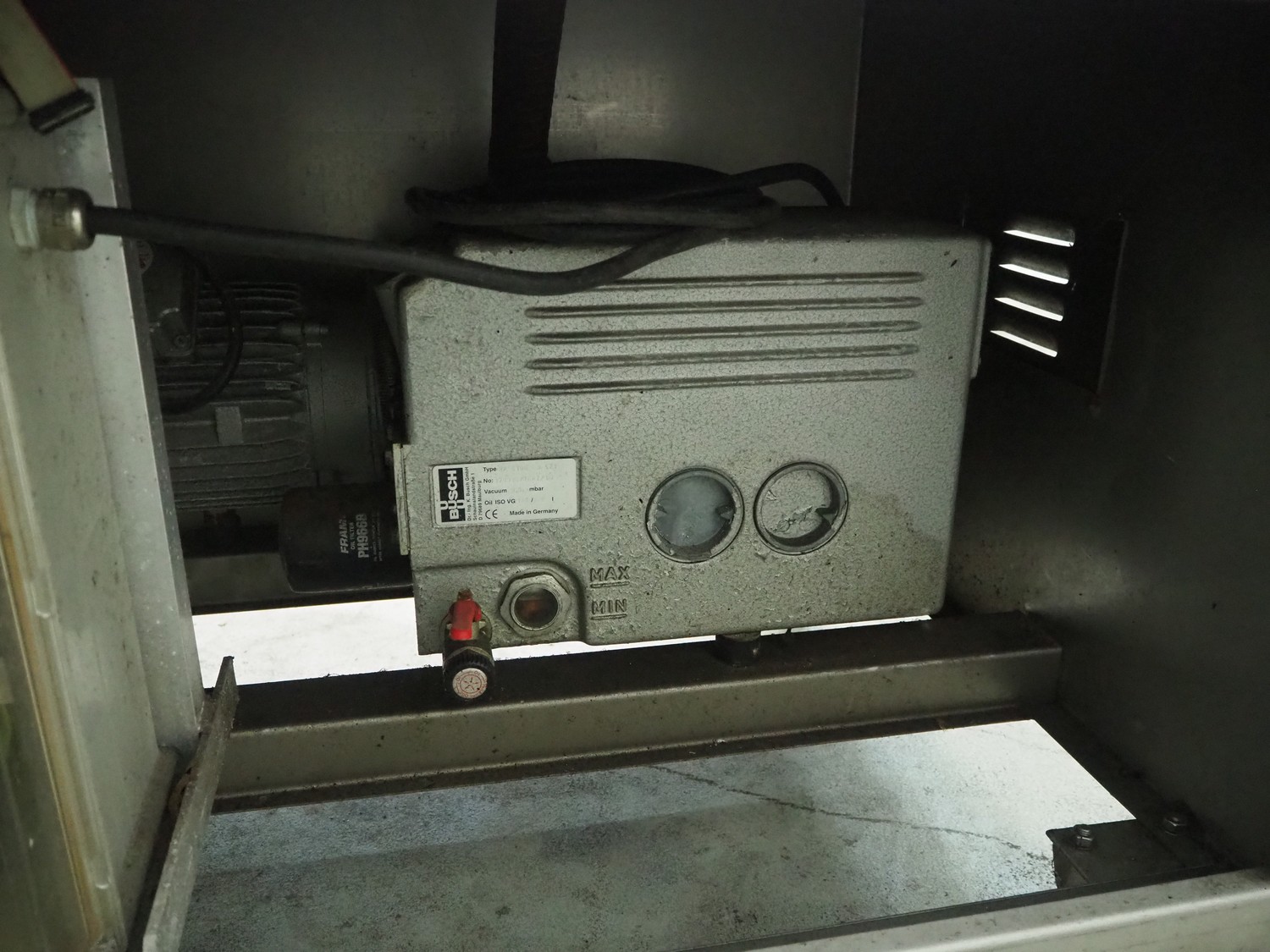 Mobile vacuum machine, with Busch vacuum pump, type: RA 0100 D 5Z1, number: 379310/1FAT/LD, seal length: 800 mm and 500 mm, total dimensions: 900 mm x 700 mm x 1100 mm.