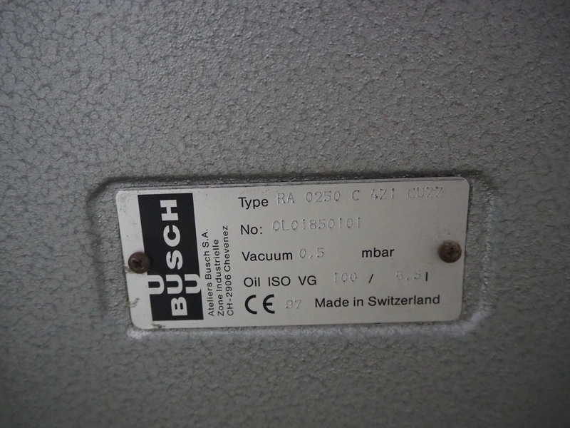 Busch vacuum pump, type: RA 0250 C 4Z1 CUZZ, number: 0L01850101, capacity: 250 m³ per hour, dimensions: 980 mm x 500 mm x 400 mm.