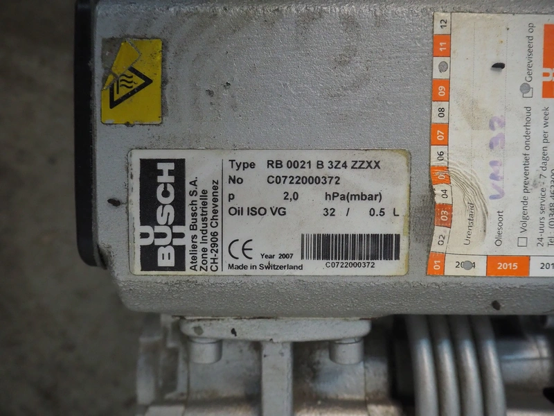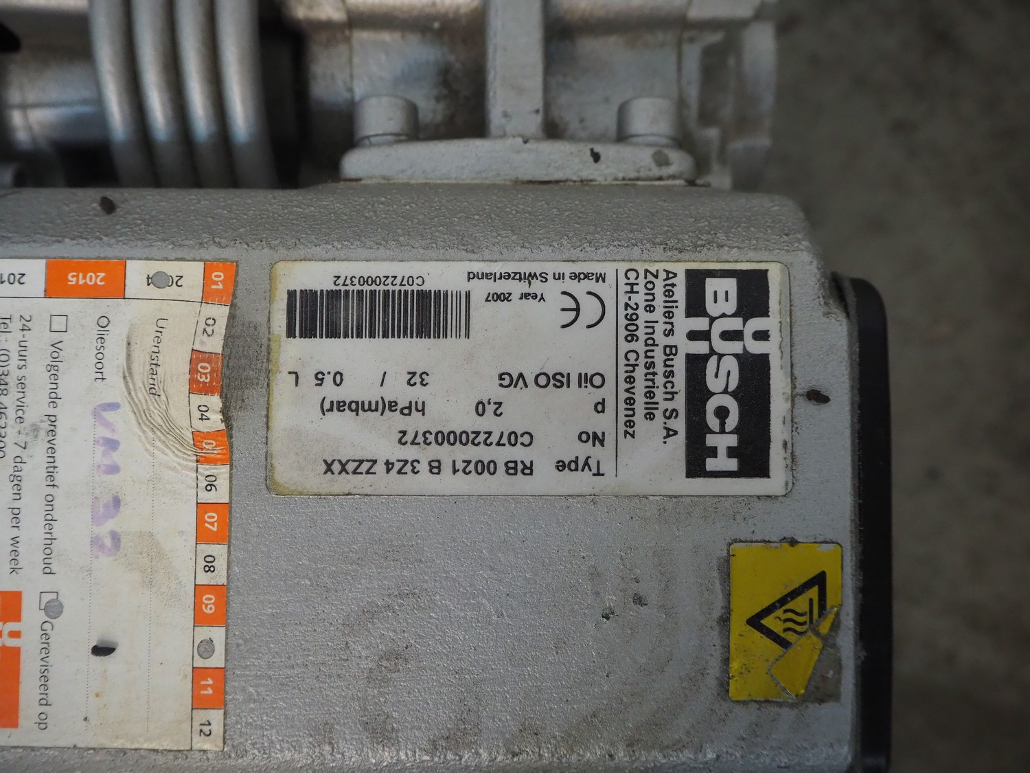 Busch vacuum pump, type: RB 0021 B 3Z4 ZZXX, number: C0722000372, year of construction: 2007, capacity: 21 m³ per hour, dimensions: 400 mm x 280 mm x 200 mm.