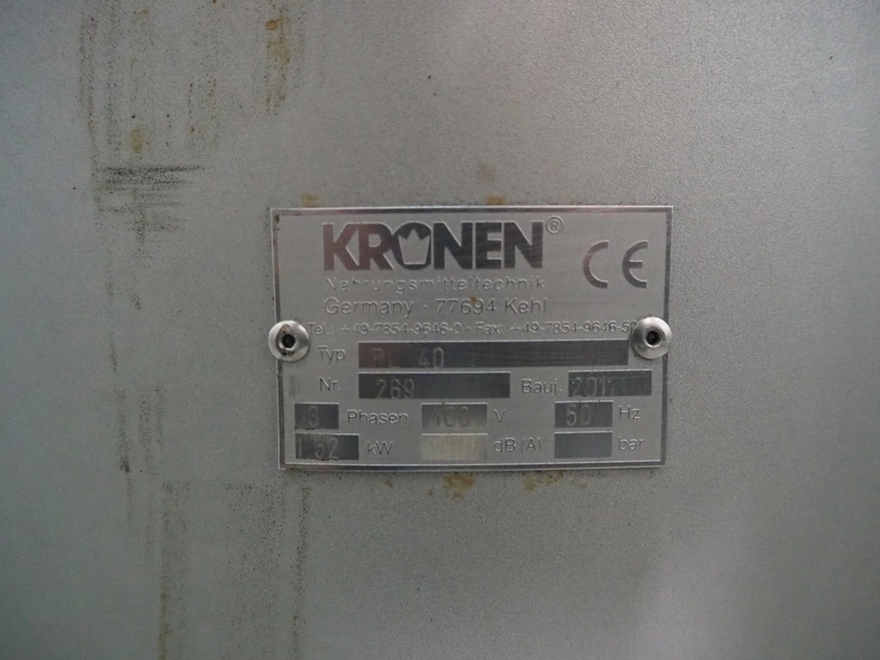 Kronen peeler, type: PL 40, number: 269, year of construction: 2011, 400 V, 3 Ph, 50 Hz, 1.52 kW, dimensions: 900 mm x 850 mm x 1400 mm.