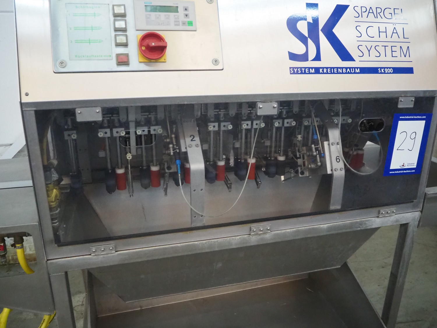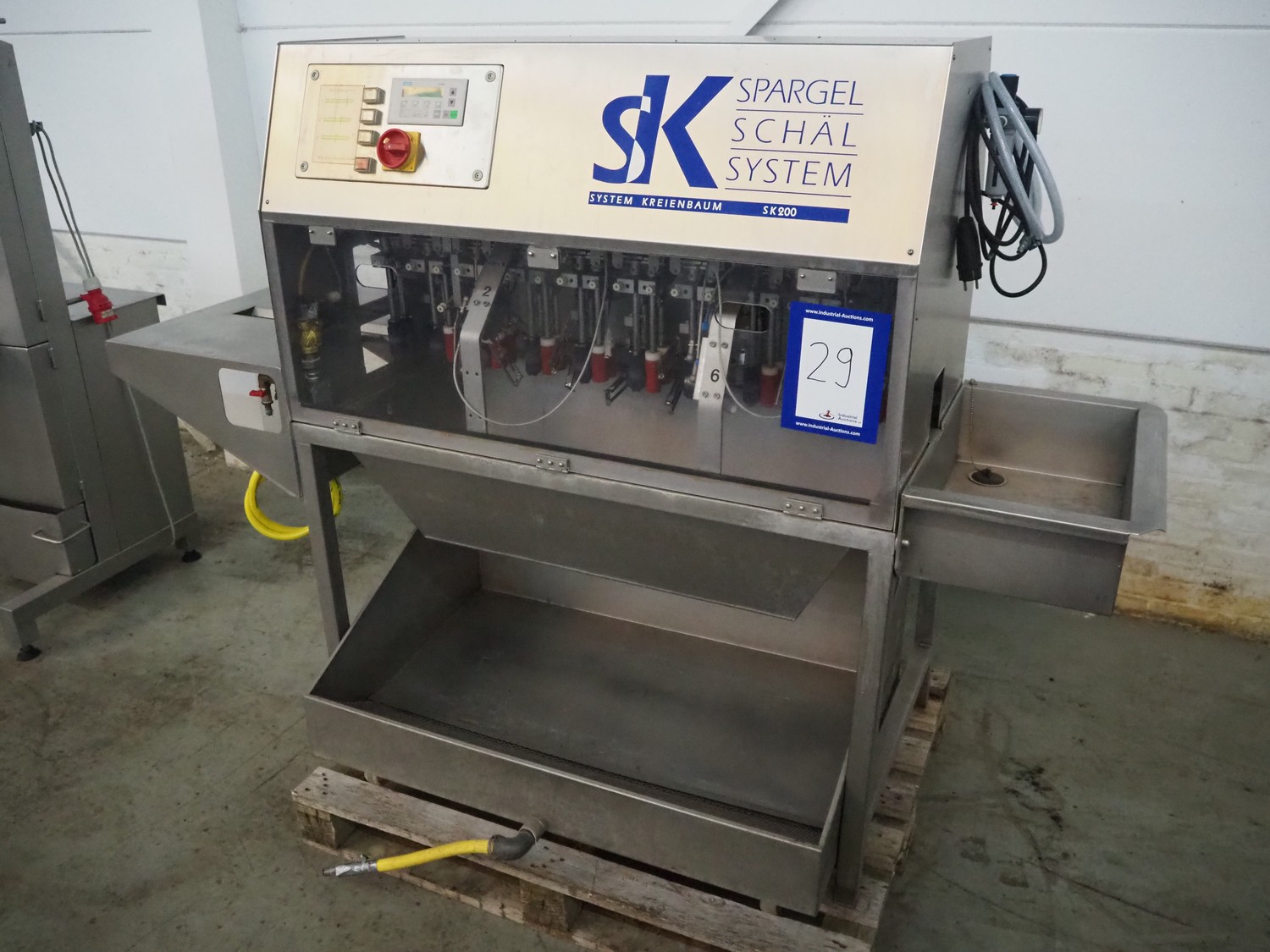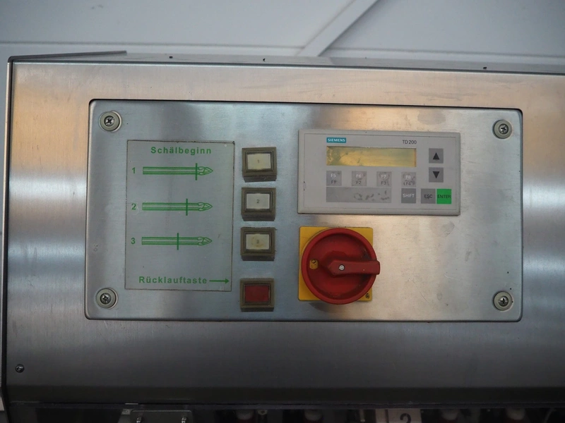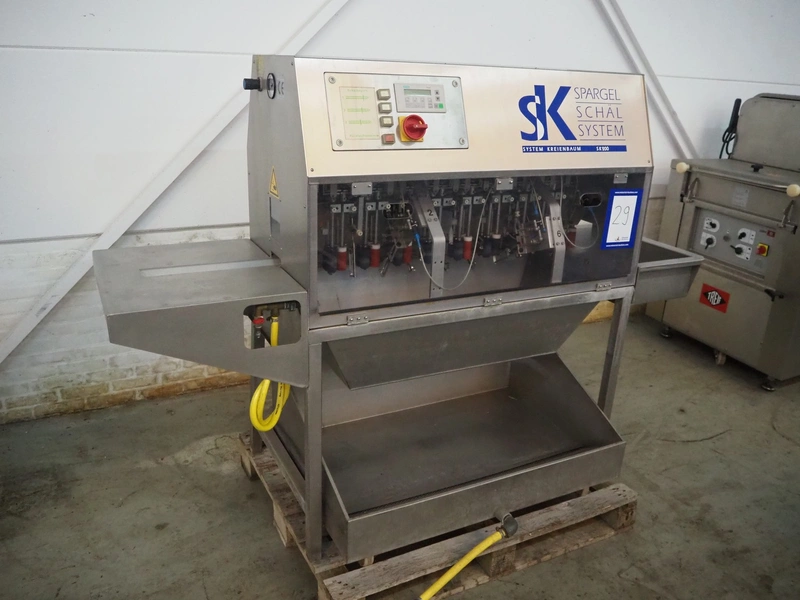 Tenge-Rietberg mobile industrial asparagus peeling machine, type: SP 0006, machine number: 262, year of construction: 2001, 230 V, 50 Hz, 6 A, 235 kg, 4-8 bar, dimensions: 2020 mmx 1000 mm x 1500 mm.