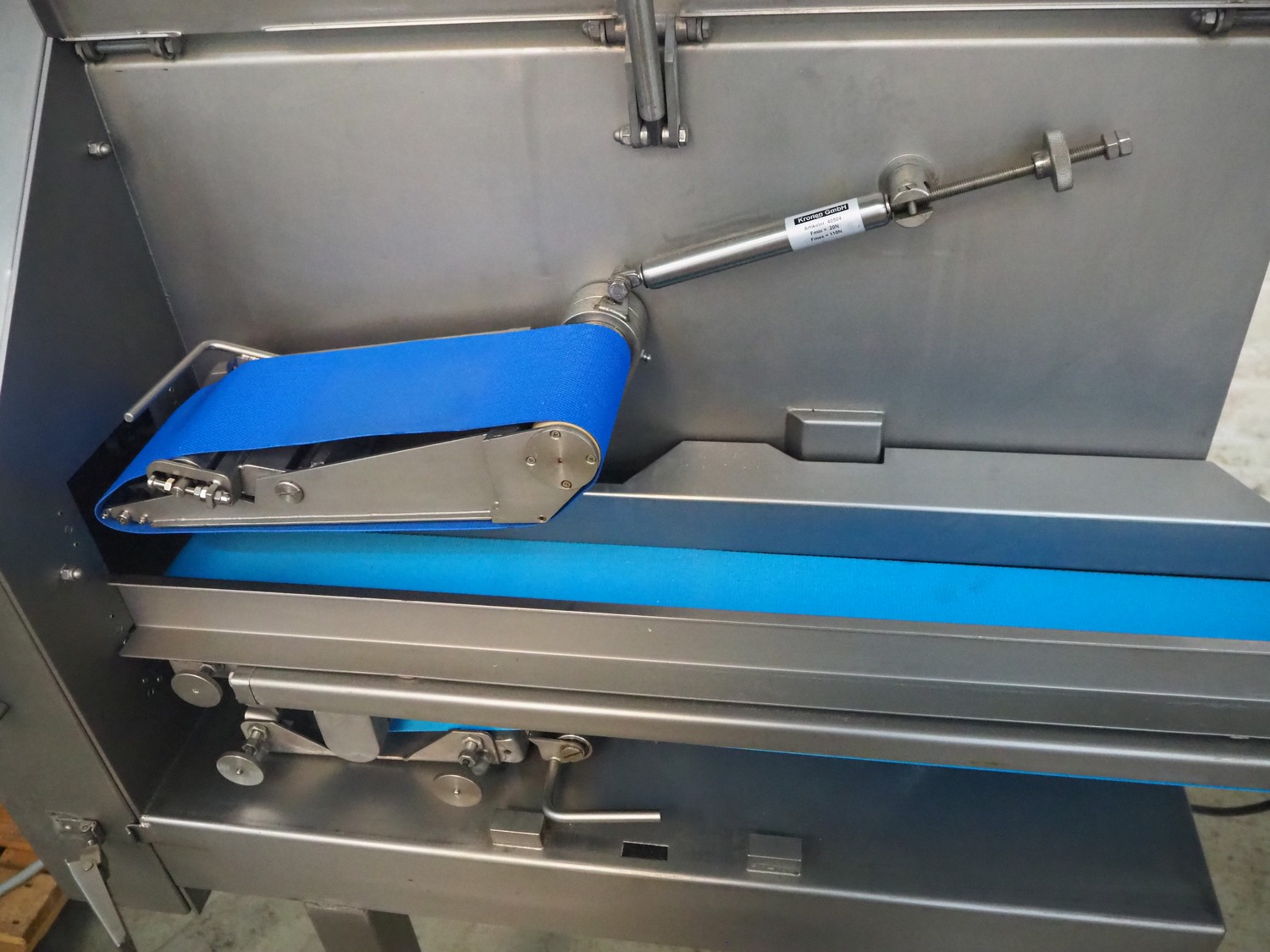 Kronen mobile slicer, plastic belt, belt width: 130 mm, clearance: 120 mm x 120 mm, total dimensions: 2560 mm x 600 mm x 1400 mm.