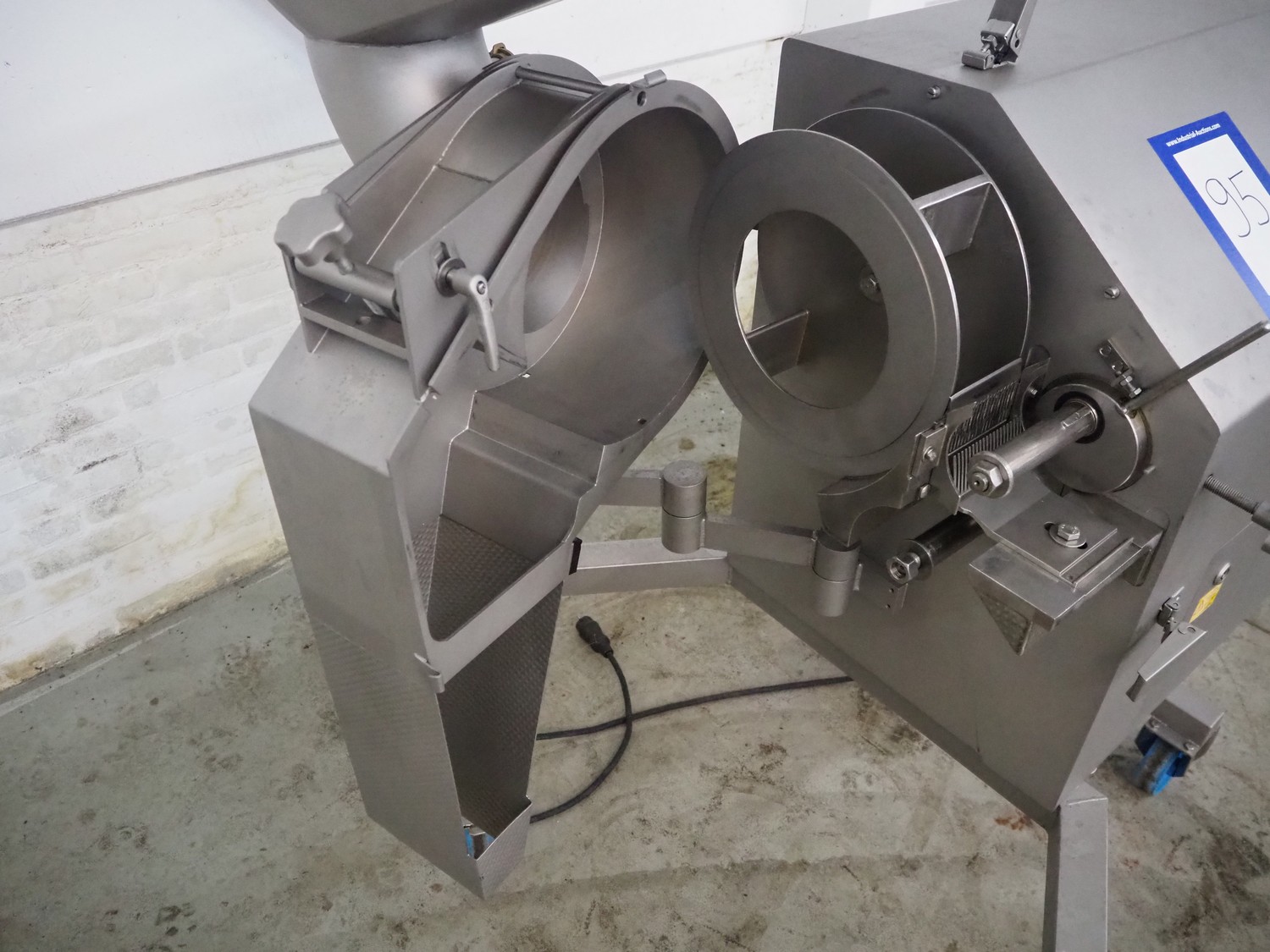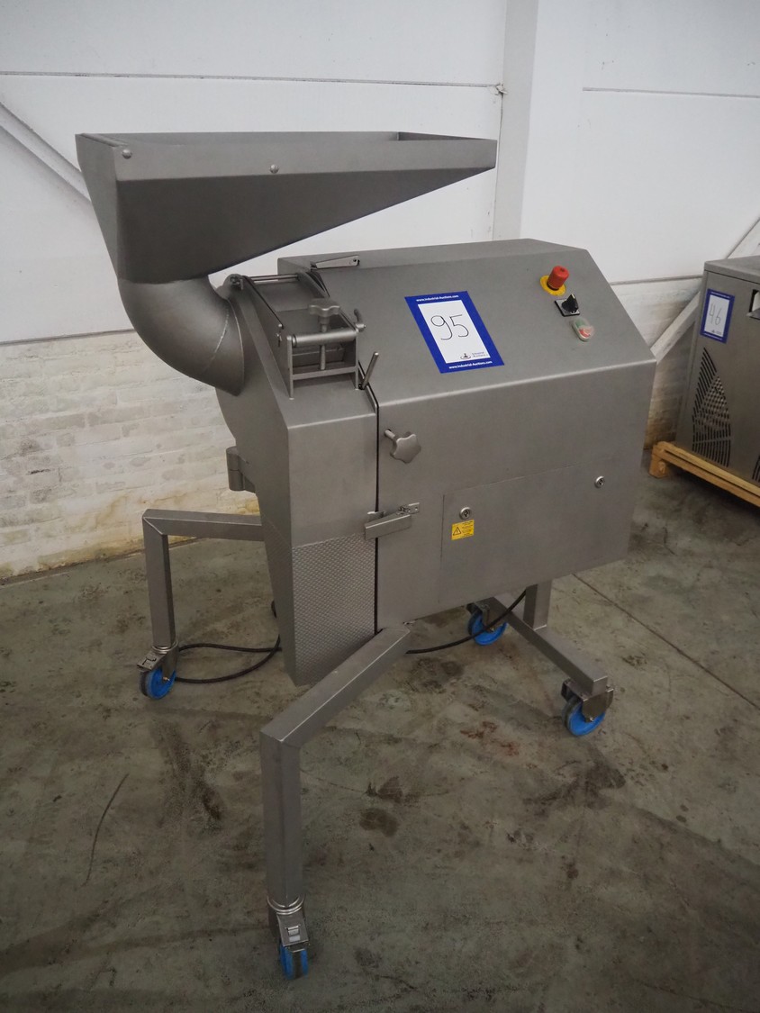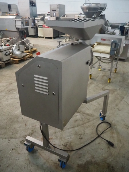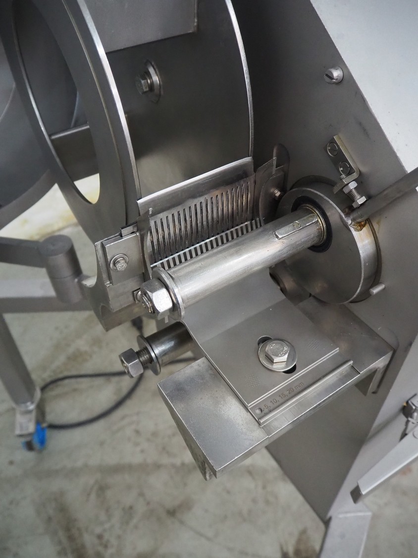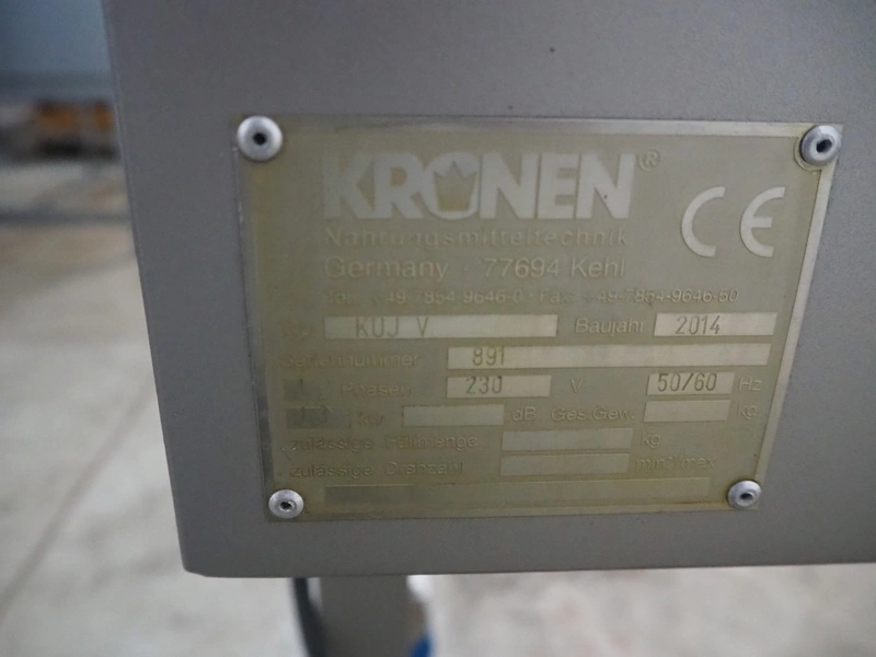 Kronen mobile vegetable slicer, type: KUJ V, serial number: 891, year of construction: 2014, 230 V, 1 Ph, 50/60 Hz, 1.3 kW, distance between knives, total dimensions: 1100 mm x 1000 mm x 1500 mm.