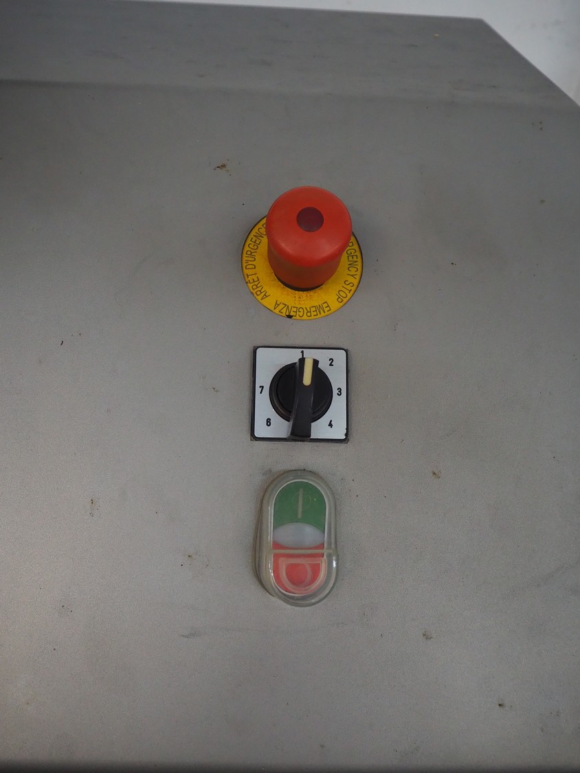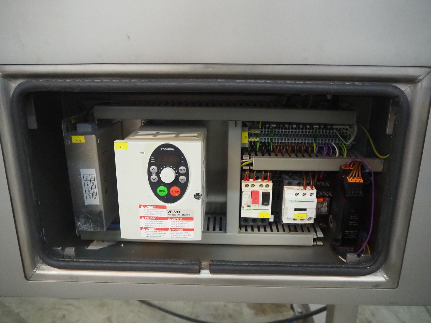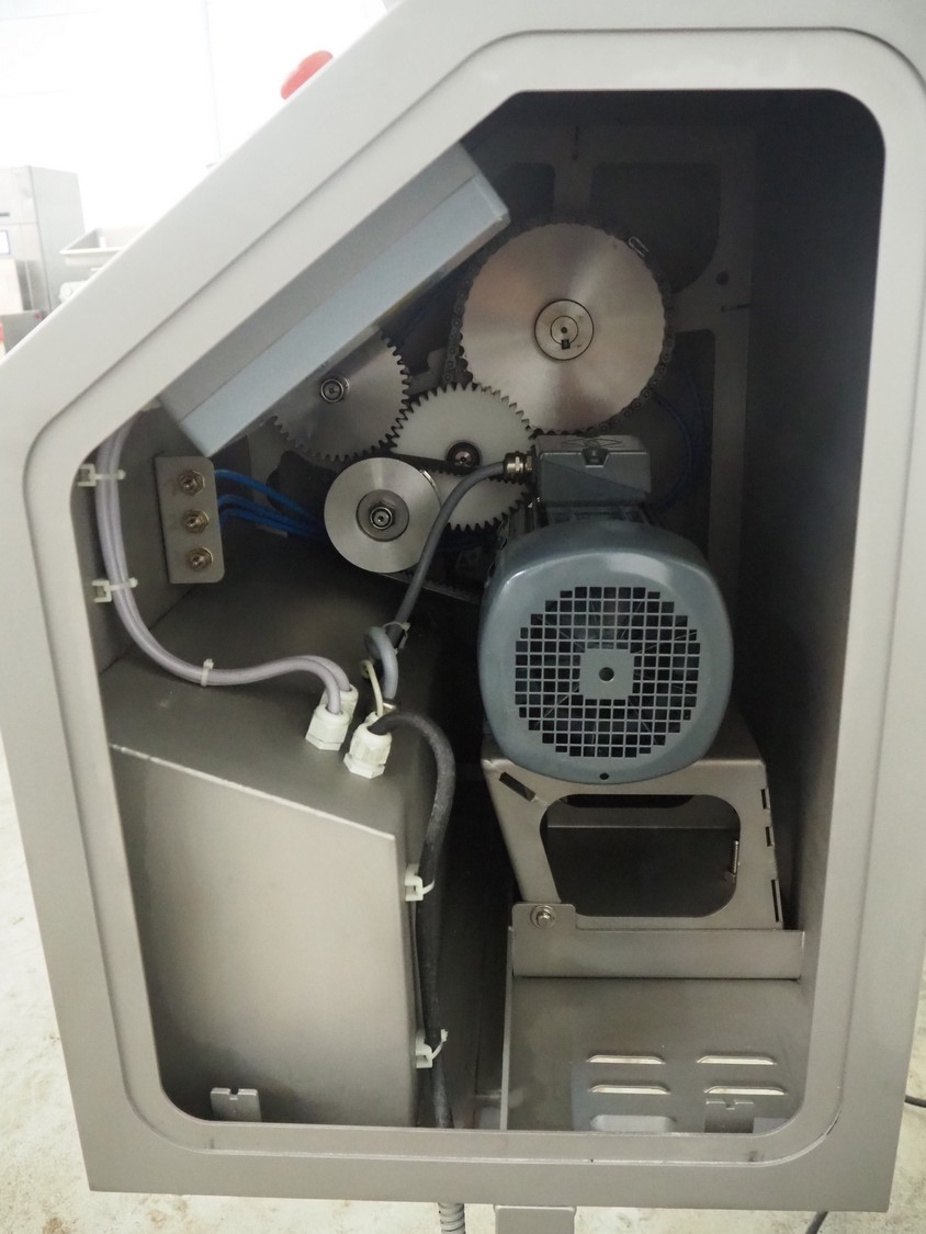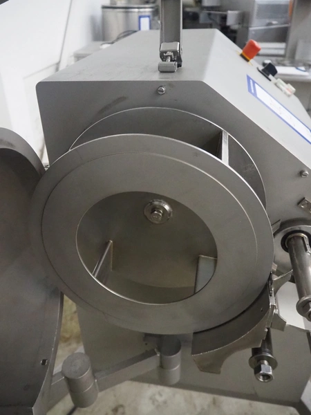 Kronen mobile vegetable slicer, type: KUJ V, serial number: 891, year of construction: 2014, 230 V, 1 Ph, 50/60 Hz, 1.3 kW, distance between knives, total dimensions: 1100 mm x 1000 mm x 1500 mm.