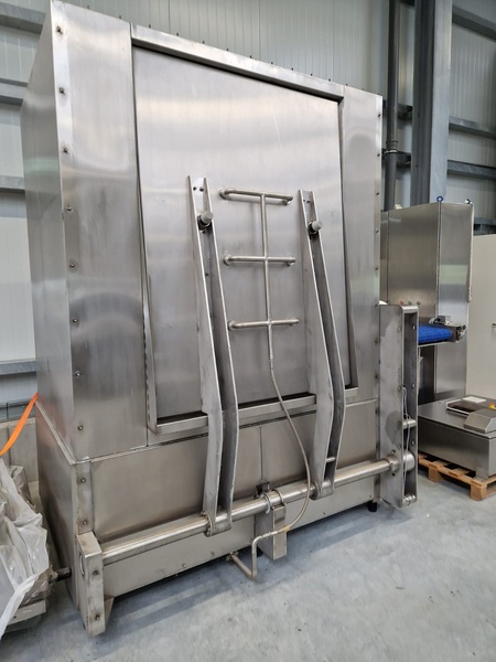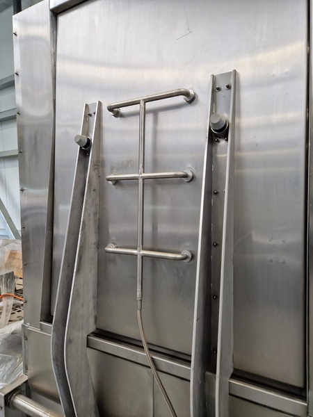 Peböck Palox washing machine, model: CTL 36, 400 V, 3 Ph, 50 Hz, 1.12 kW, capacity: 20 Paloxen per hour, steam heated, steam consumption: ca. 55 kg, tank capacity: 1000 liter, maximum washing temperature: 40-50° Celsius, equipped with: dosing device, underbody cleaning, Siemens PLC control and safety grid with IP69 light barrier, maximum dimensions of the items to be washed: 760 mm x 720 mm x 950 mm and 1200 mm x 1000 mm x 1000 mm, dimensions of machines when assembled: 4360 mm x 2820 mm x 2950 mm, dimensions disassembled: 2500 mm x 2100 mm x 2900 mm, 2700 mm x 1600 mm x 1100 mm and (3x) 1200 mm x 800 mm x 800 mm.
