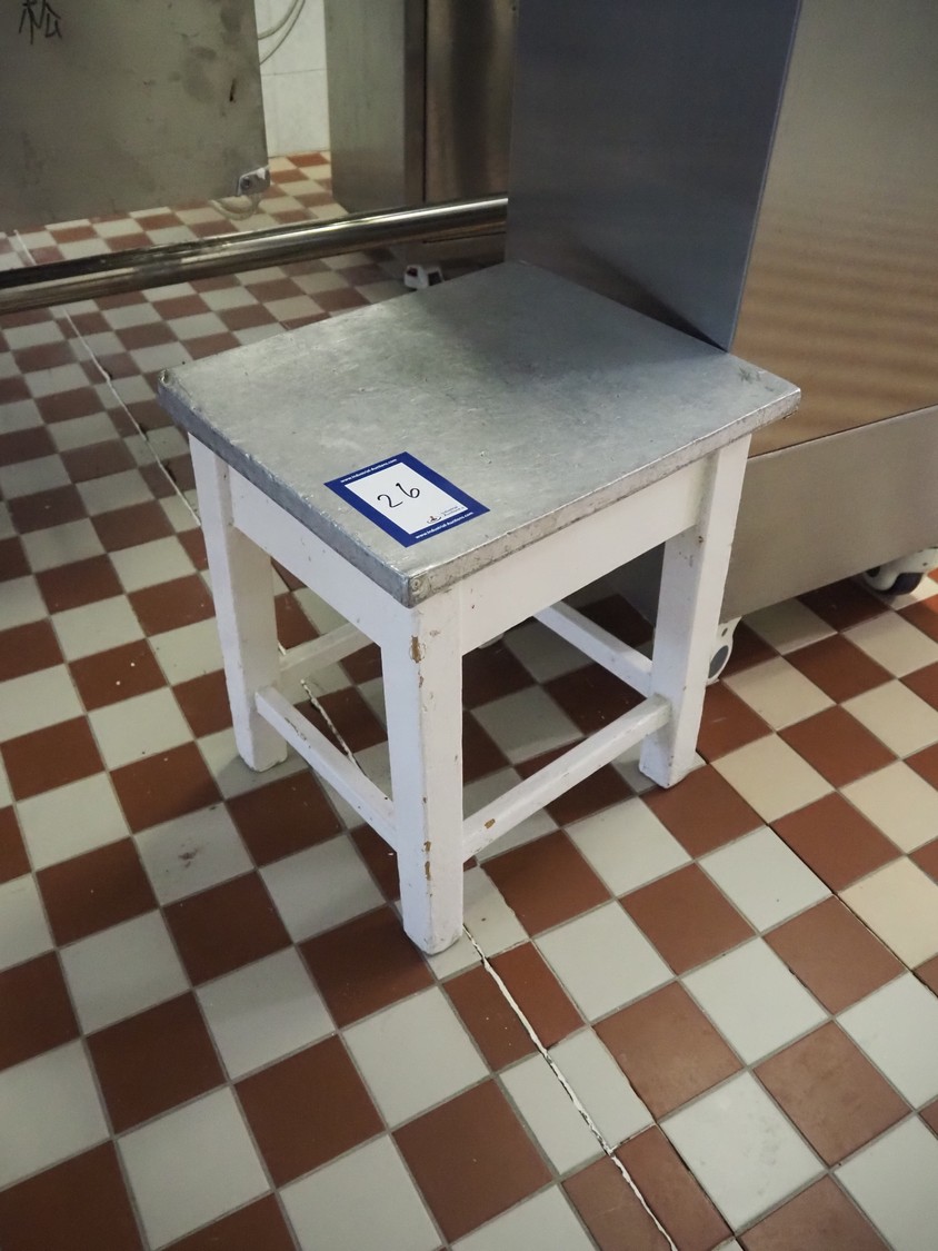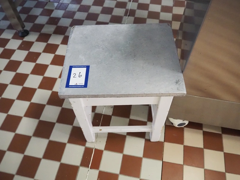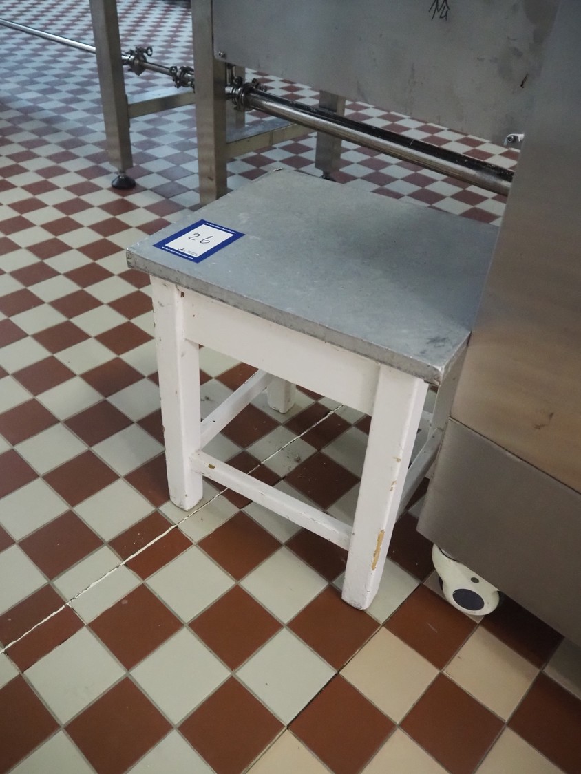 Wooden step stool with aluminium top, dimensions: 430 mm x 350 mm x 480 mm.