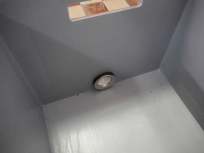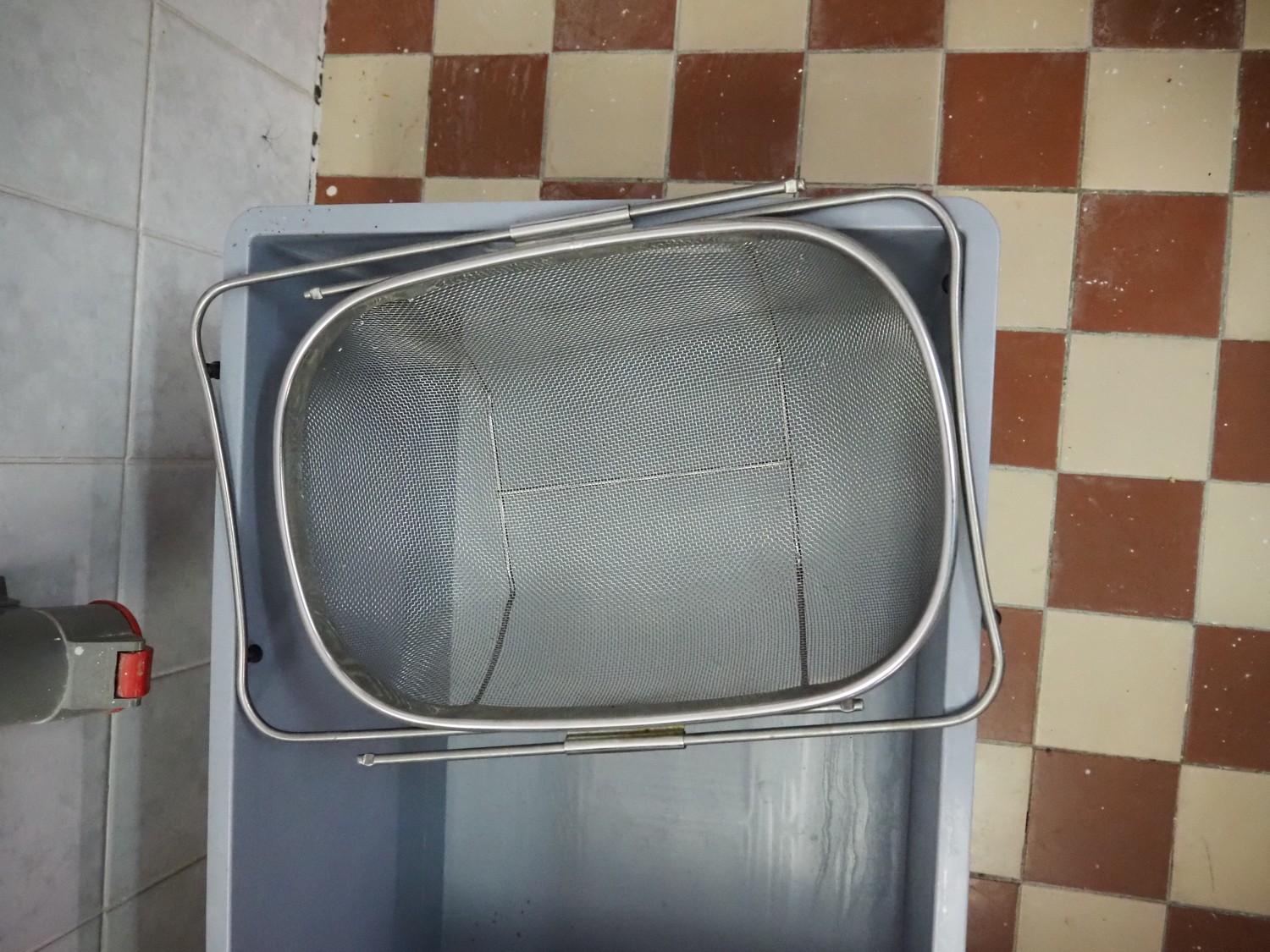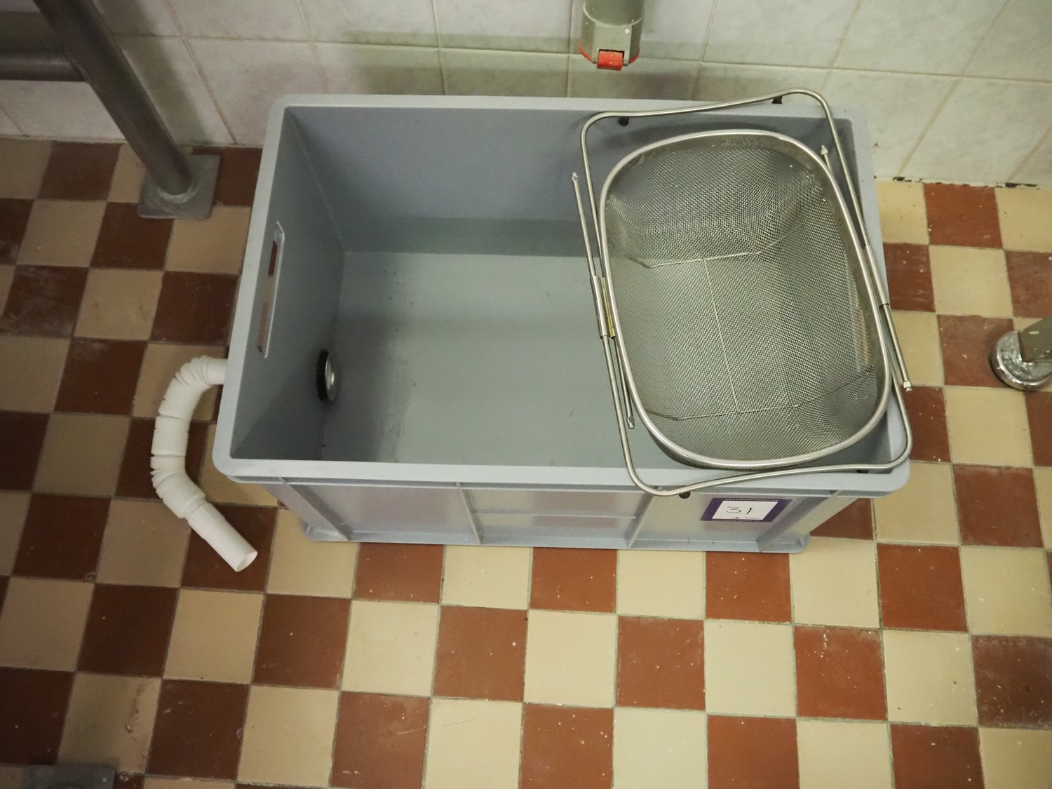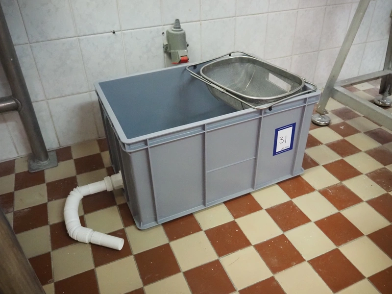 Plastic crate with sieve and drain, dimensions: 600 mm x 400 mm x 300 mm.