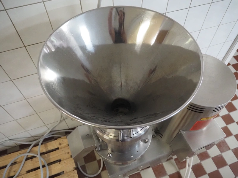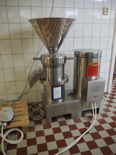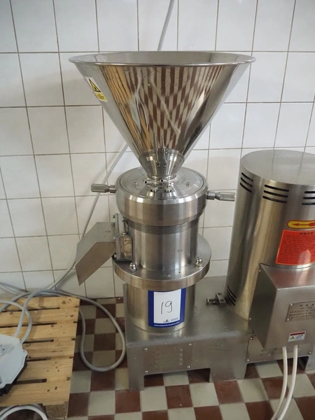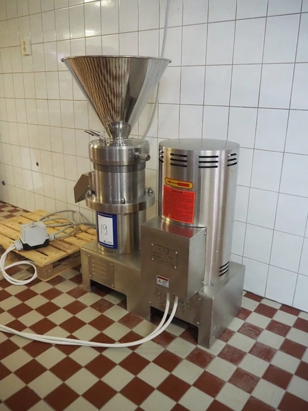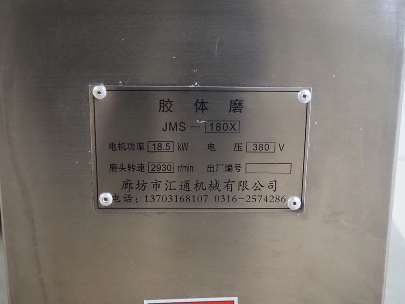 Langfang Huitong Machinery colloid mill, model: JMS-180X, 380 V, 18.5 kW, dimensions: 1100 mm x 550 mm x 1230 mm.