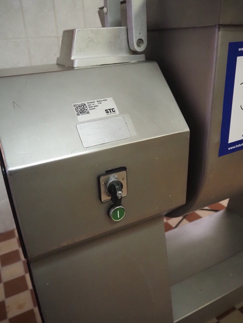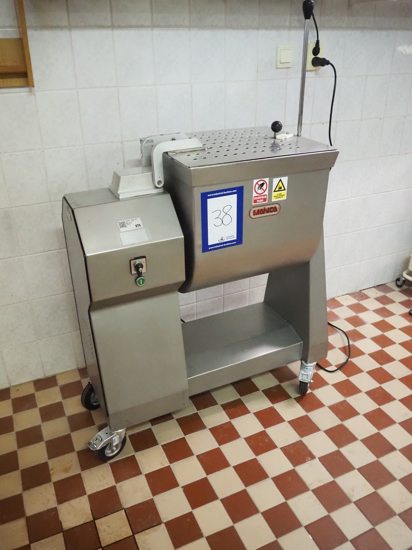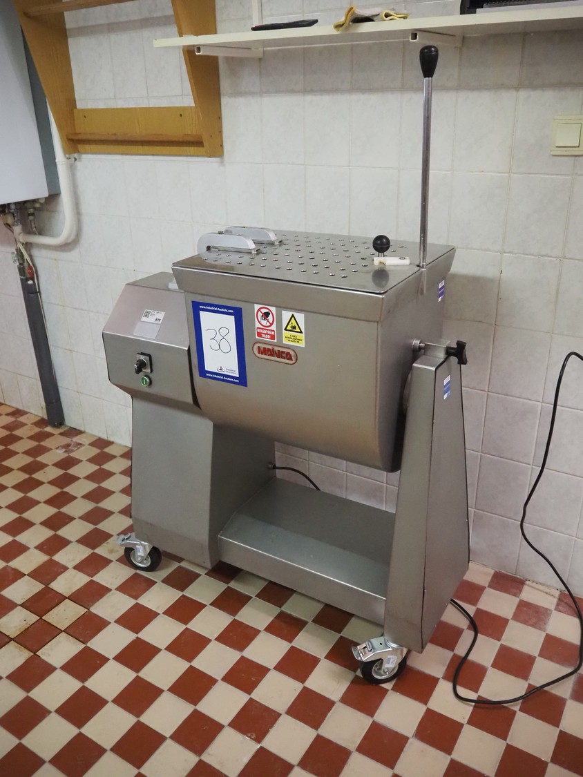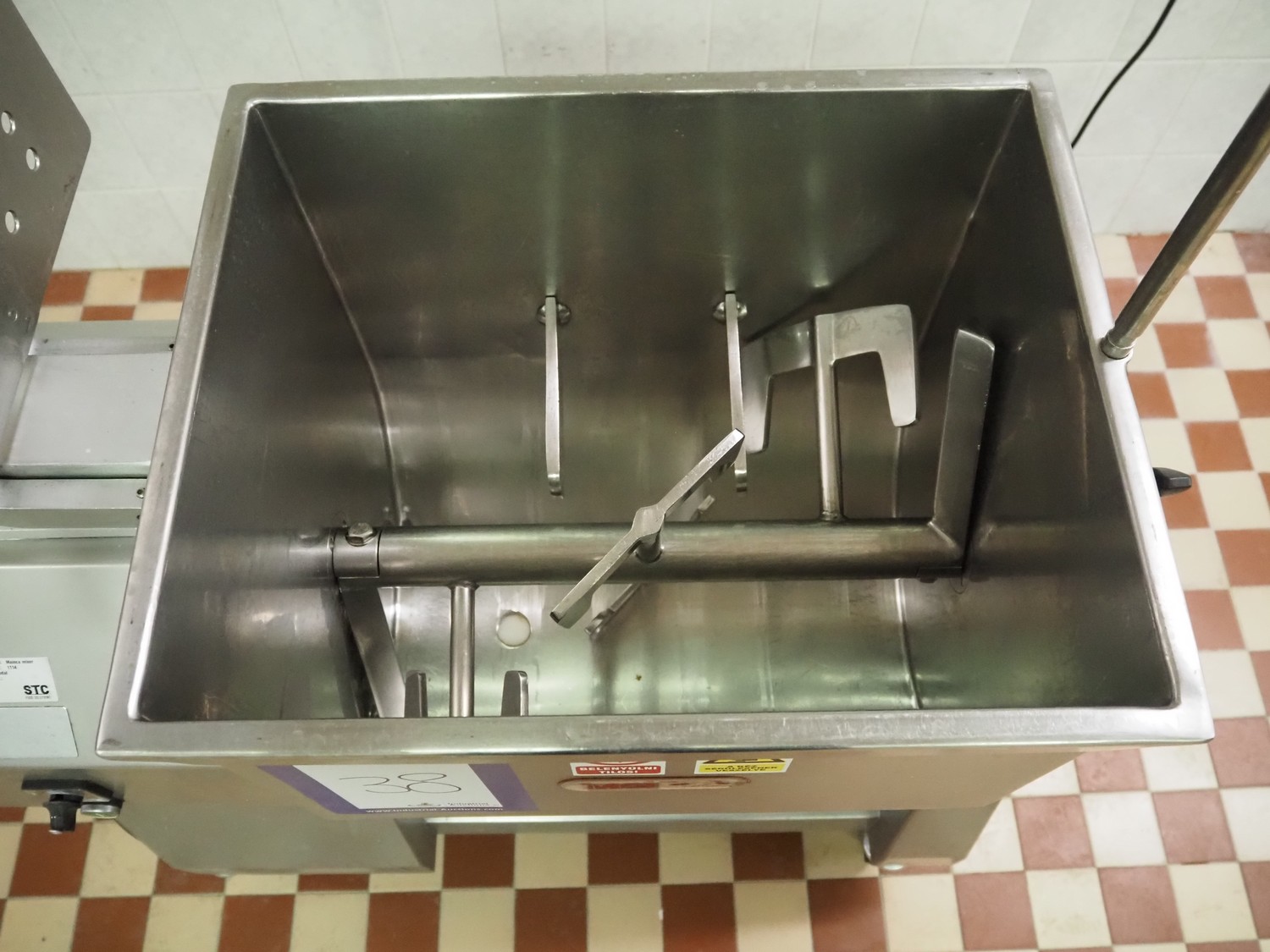 Mainca mobile paddle mixer, inside dimensions: 500 mm x 400 mm x 500 mm, total dimensions: 950 mm x 450 mm x 1450 mm.