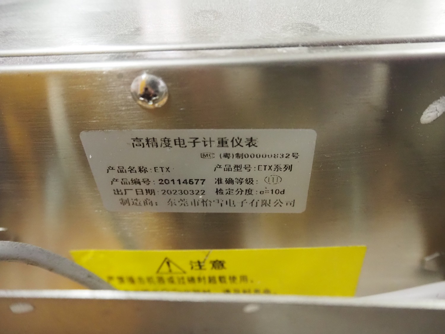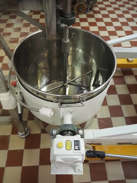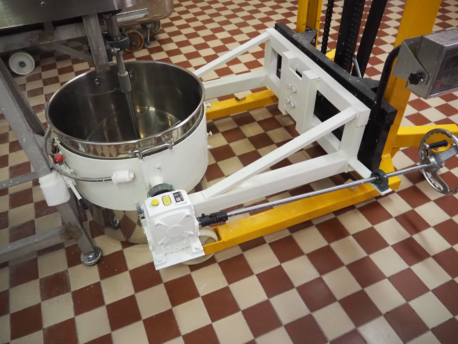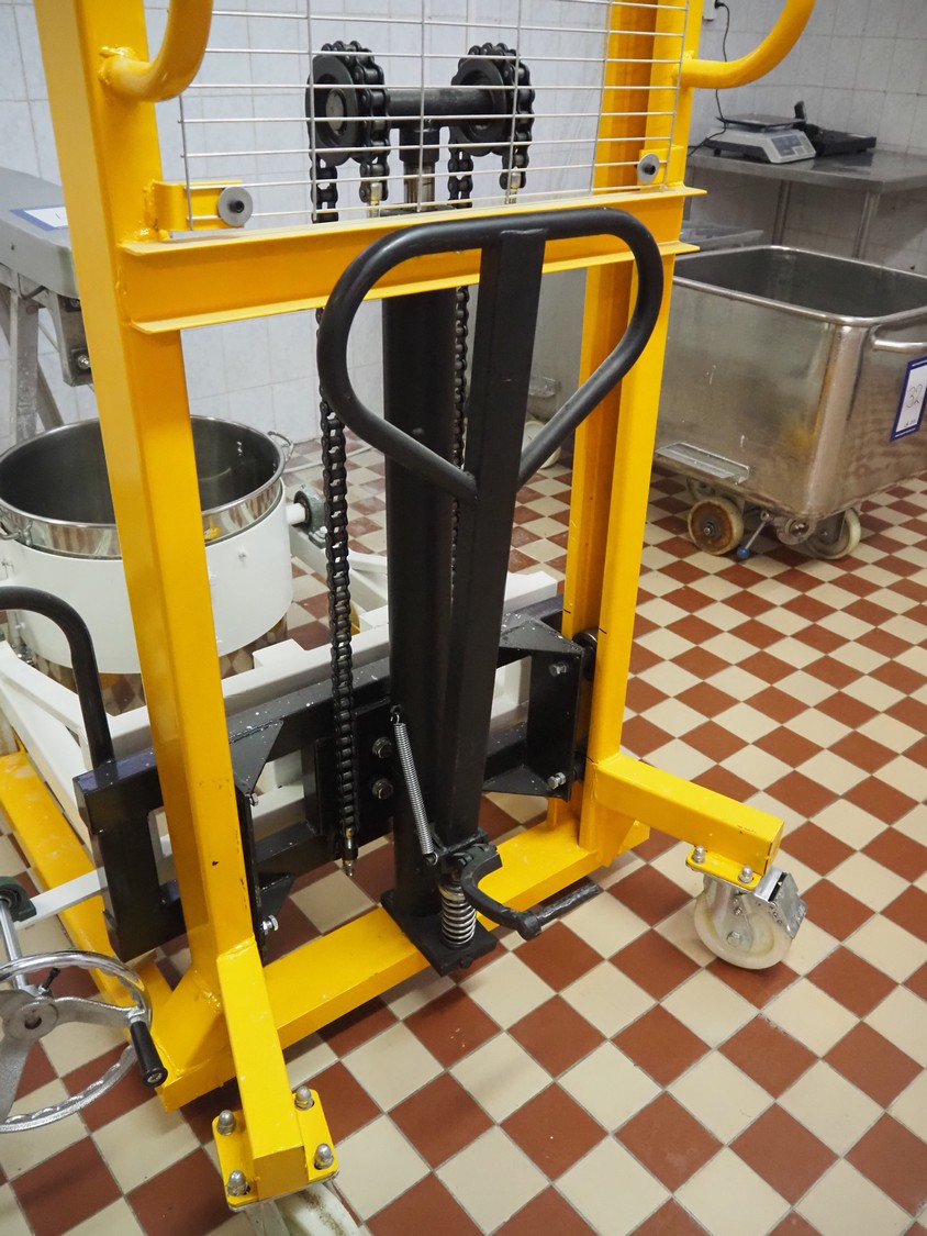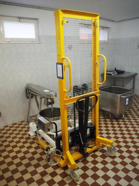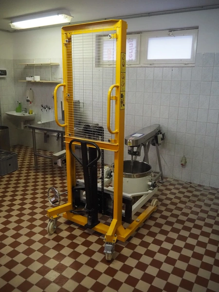 Mobile lifting and weighing machine for bowls, model indicator: ETX, number: 20114577, year of construction: 2023-03-22, e=: 10 gram, s/s bowl, dimensions bowl: Ø 500 mm x 500 mm, lifting height: 1500 mm, total dimensions: 1400 mm x 1000 mm x 2000 mm.