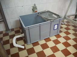 Plastic crate with sieve and drain, dimensions: 600 mm x 400 mm x 300 mm.0 bidsLot is closed -