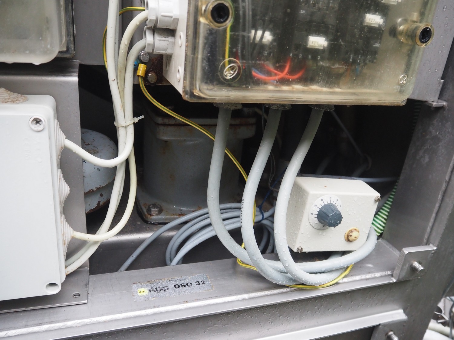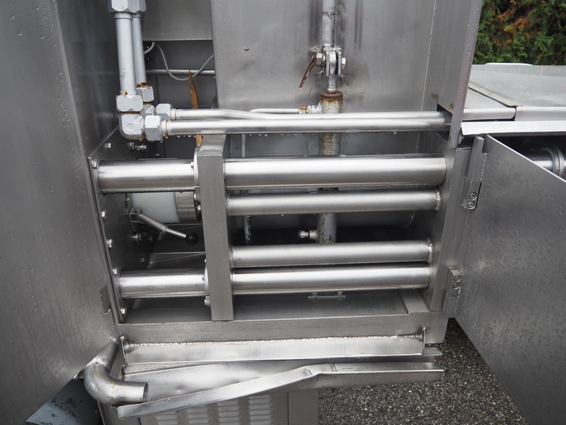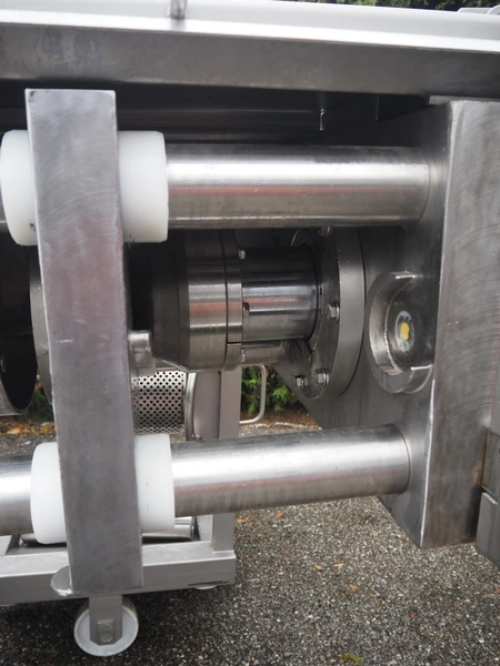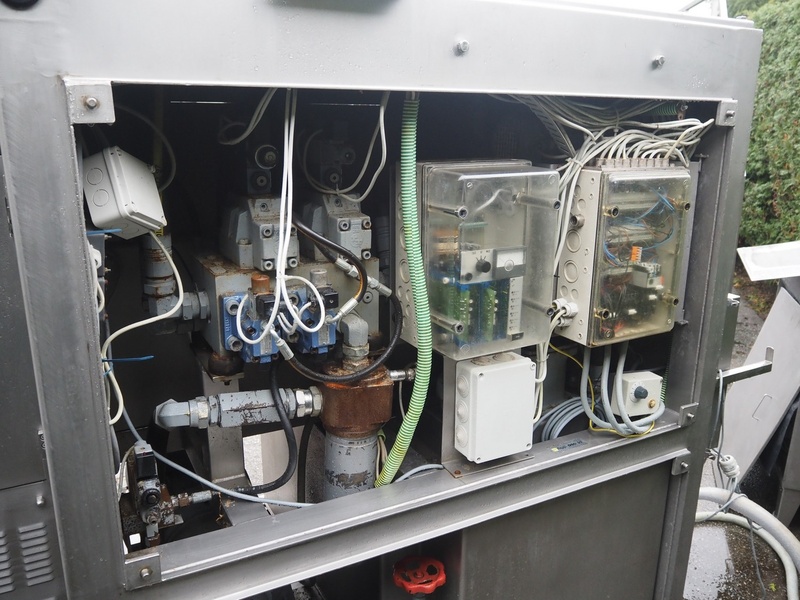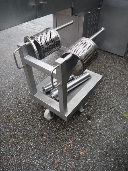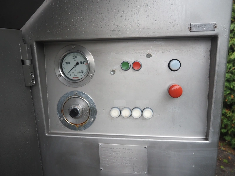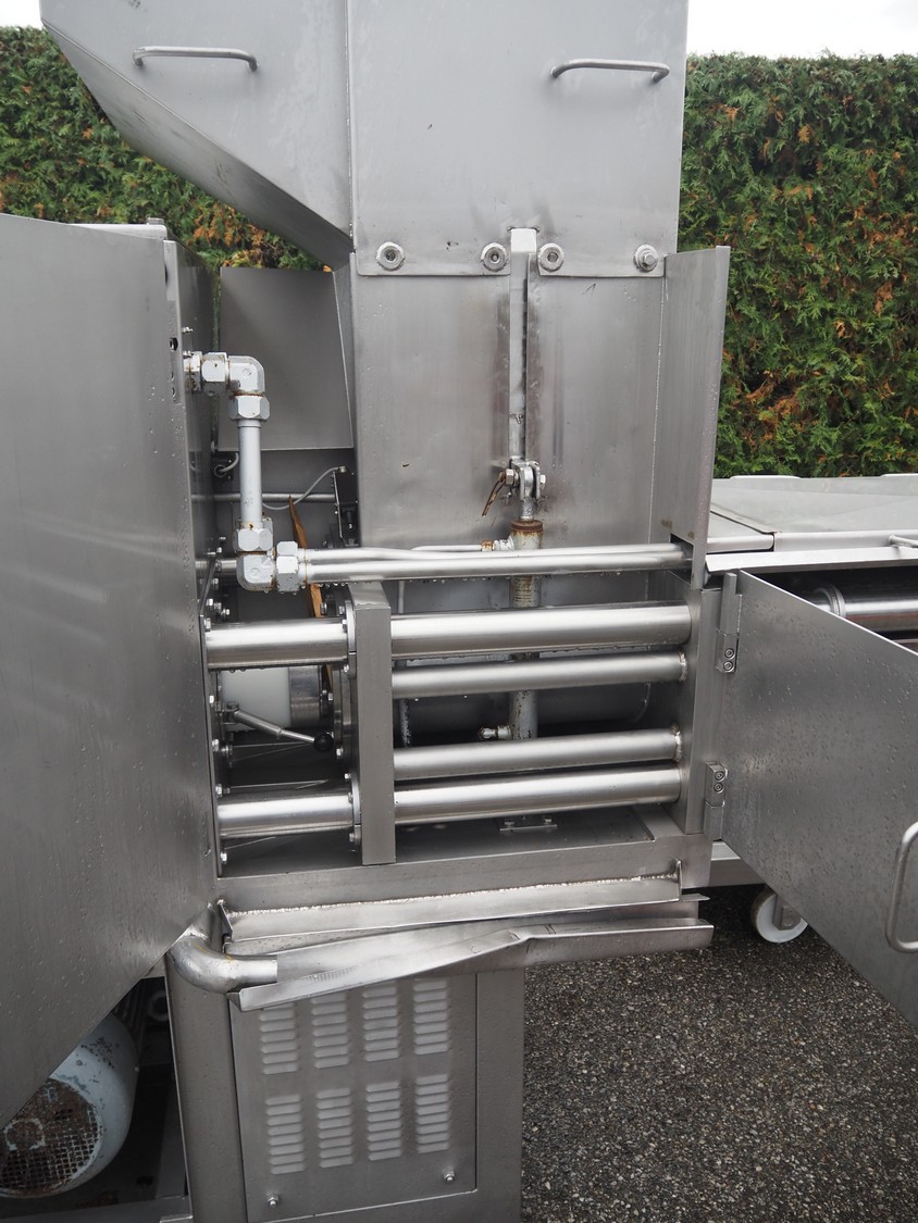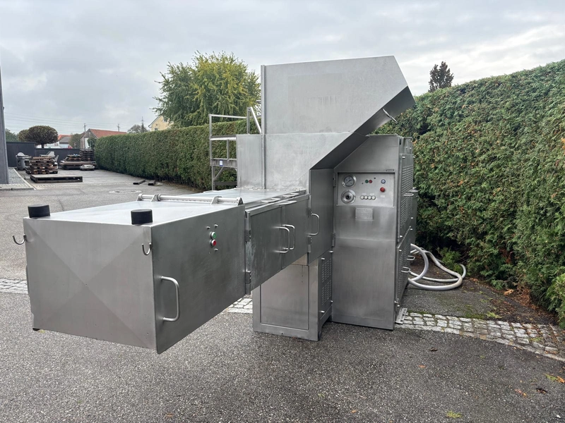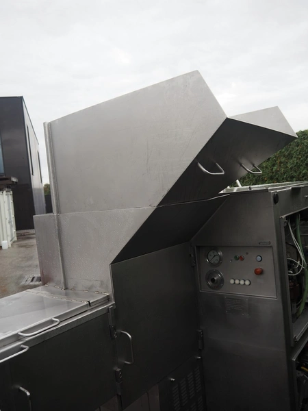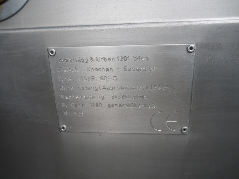 Inject Star separator, type: M16/P-60-S, number: 305, year of construction: 1998, 380 V, 3 Ph, 50 Hz, 18 kW, diameter drum: 210 mm, diameter perforations: 5 mm, total dimensions: 4350 mm x 1300 mm x 2200 mm. With lifter for meat bins and control panel.