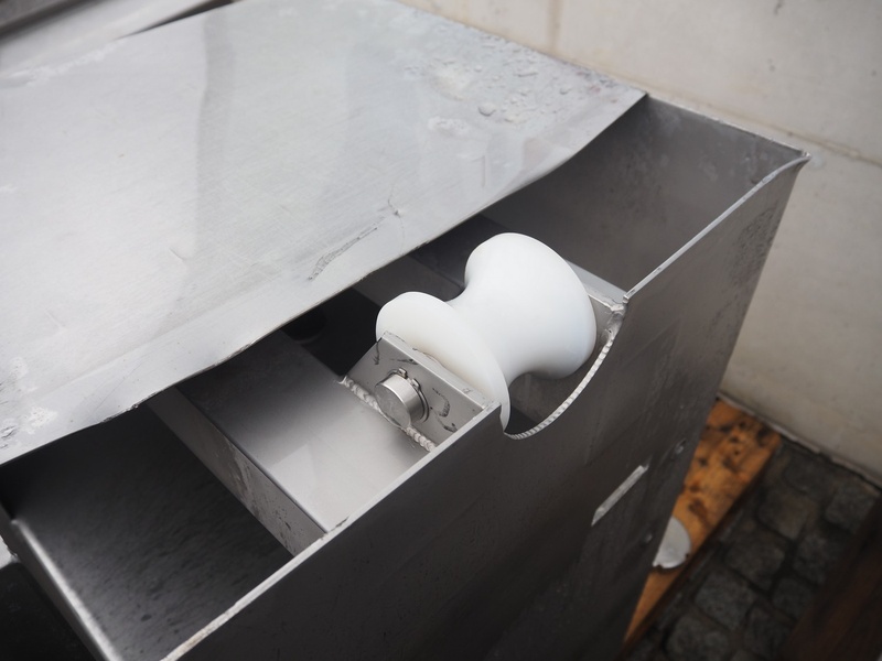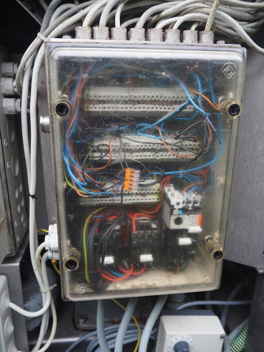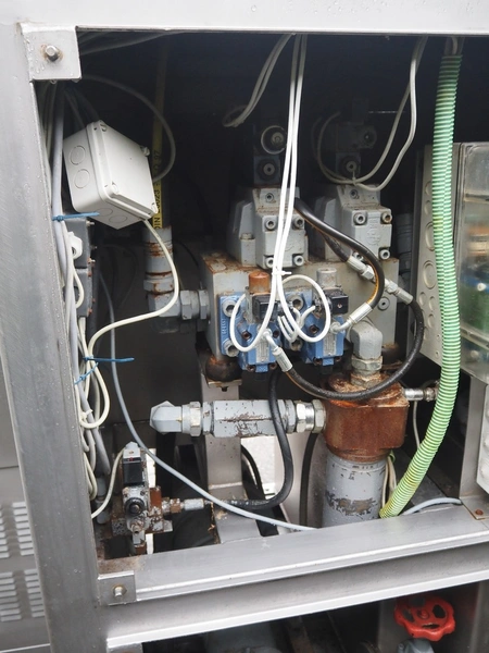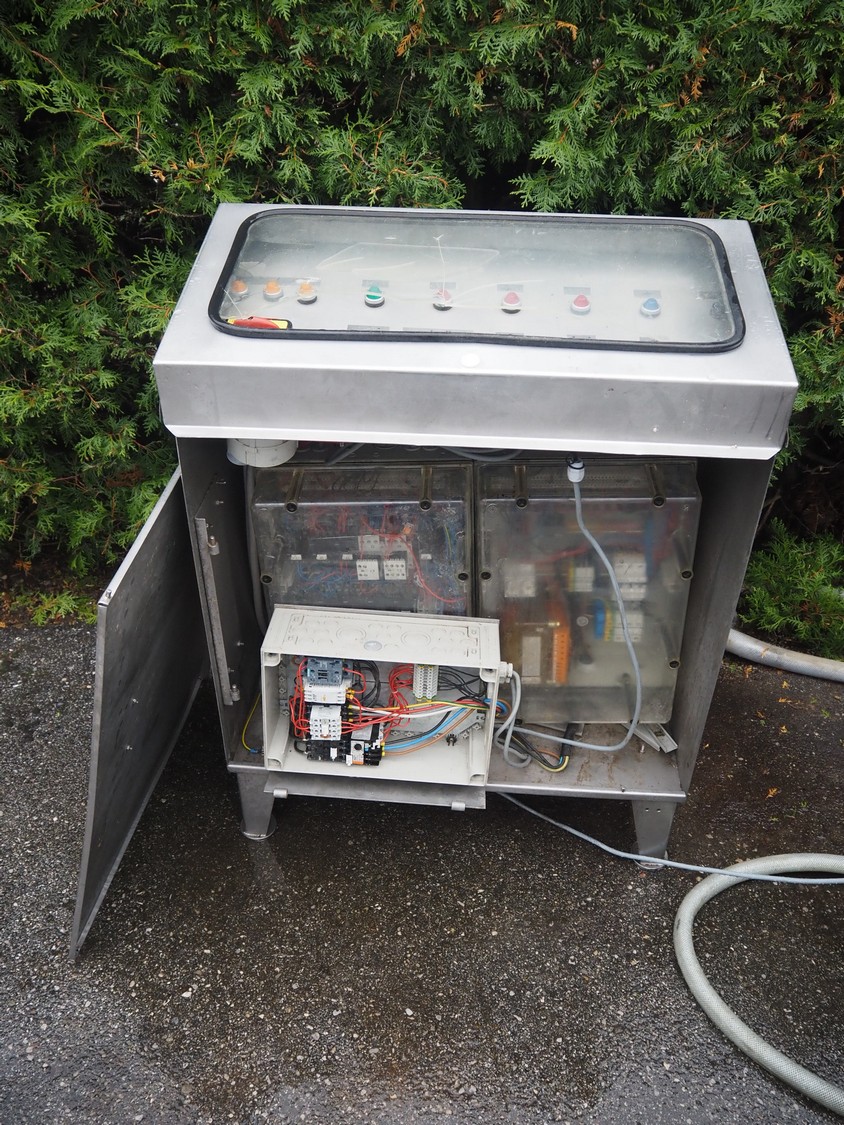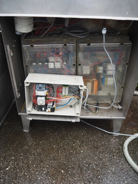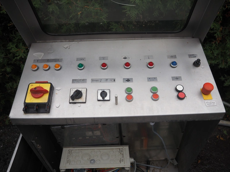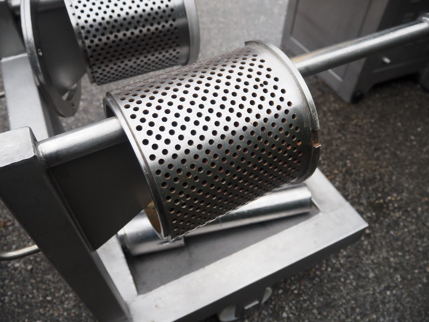 Inject Star separator, type: M16/P-60-S, number: 305, year of construction: 1998, 380 V, 3 Ph, 50 Hz, 18 kW, diameter drum: 210 mm, diameter perforations: 5 mm, total dimensions: 4350 mm x 1300 mm x 2200 mm. With lifter for meat bins and control panel.