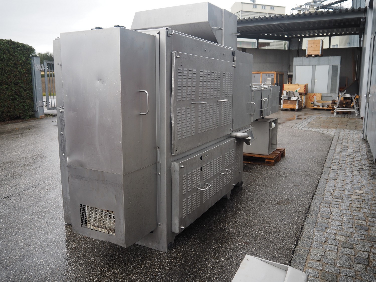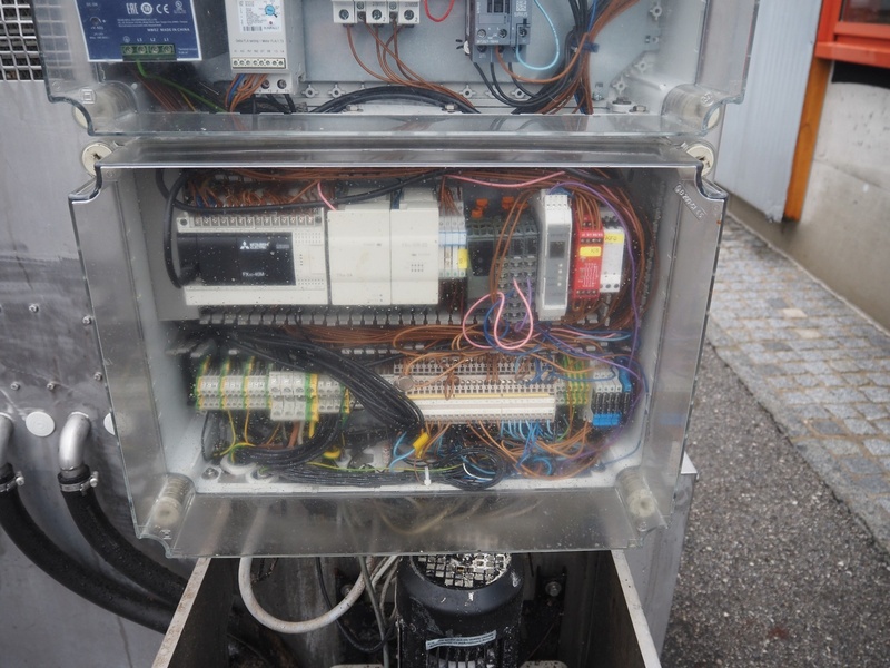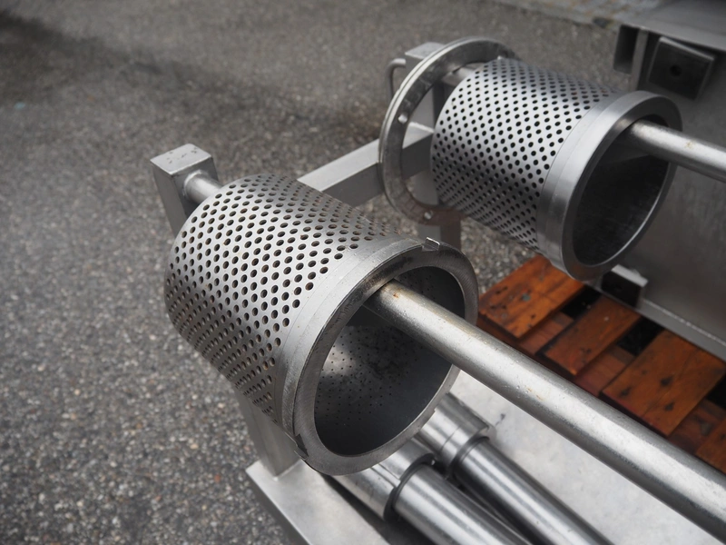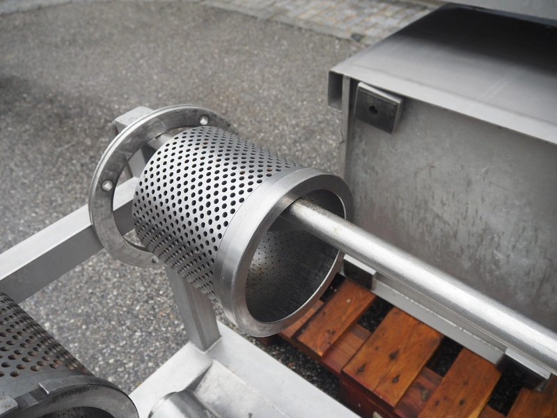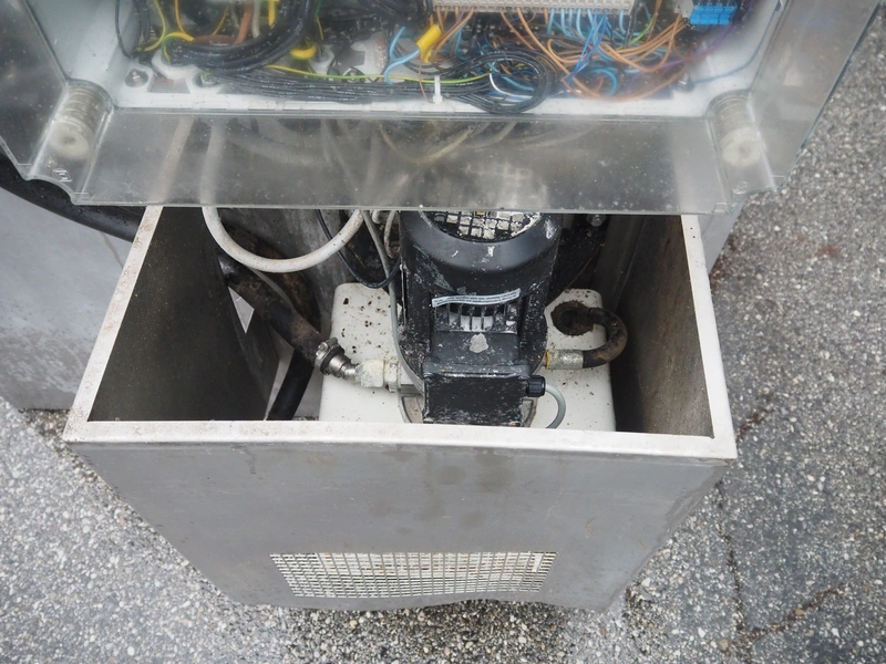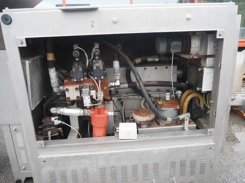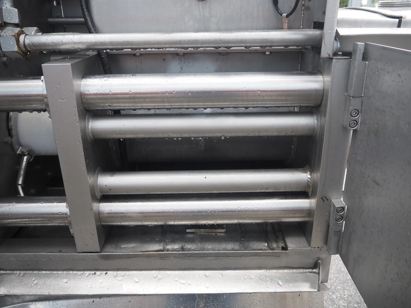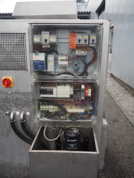 Inject Star separator, type: M16/P-60-S, number: 319, year of construction: 2000, 380 V, 3 Ph, 50 Hz, 18 kW, diameter drum: 210 mm, diameter perforations: 5 mm, total dimensions: 4350 mm x 1300 mm x 2200 mm. With lifter for meat bins and control panel. Technical condition unknown.