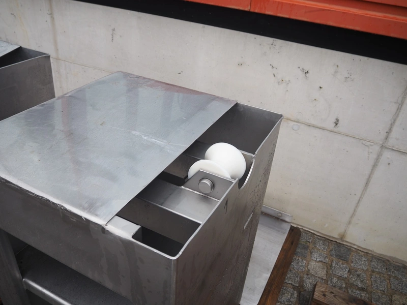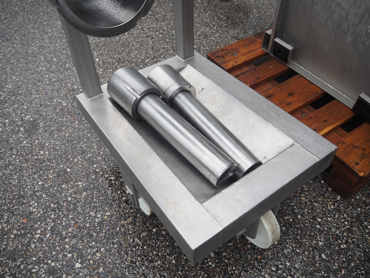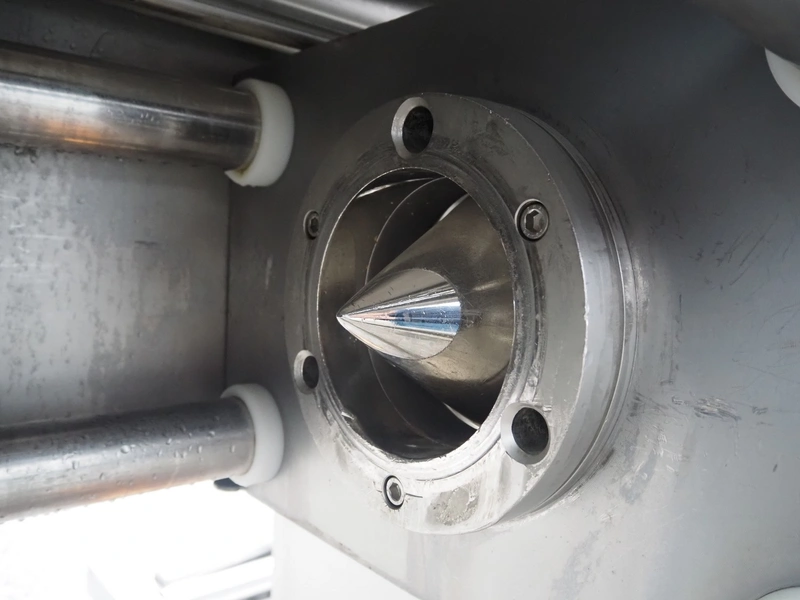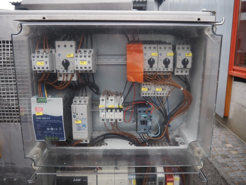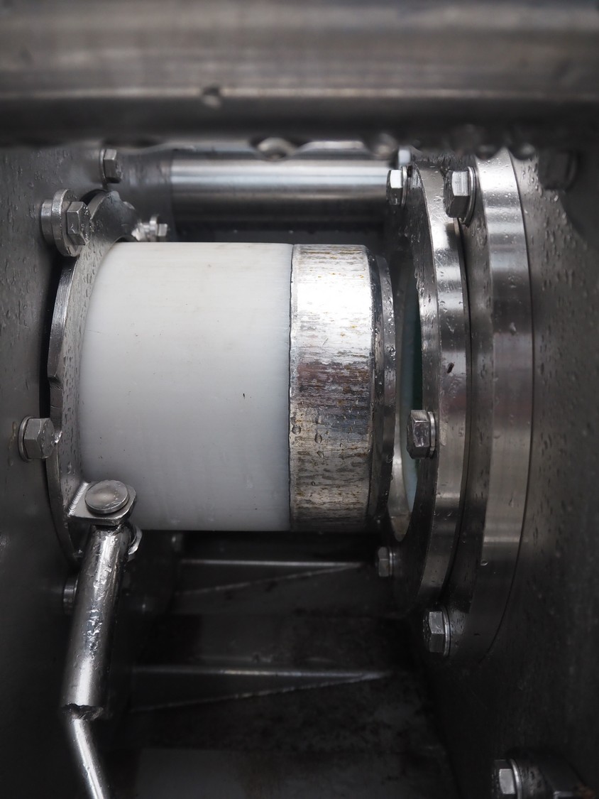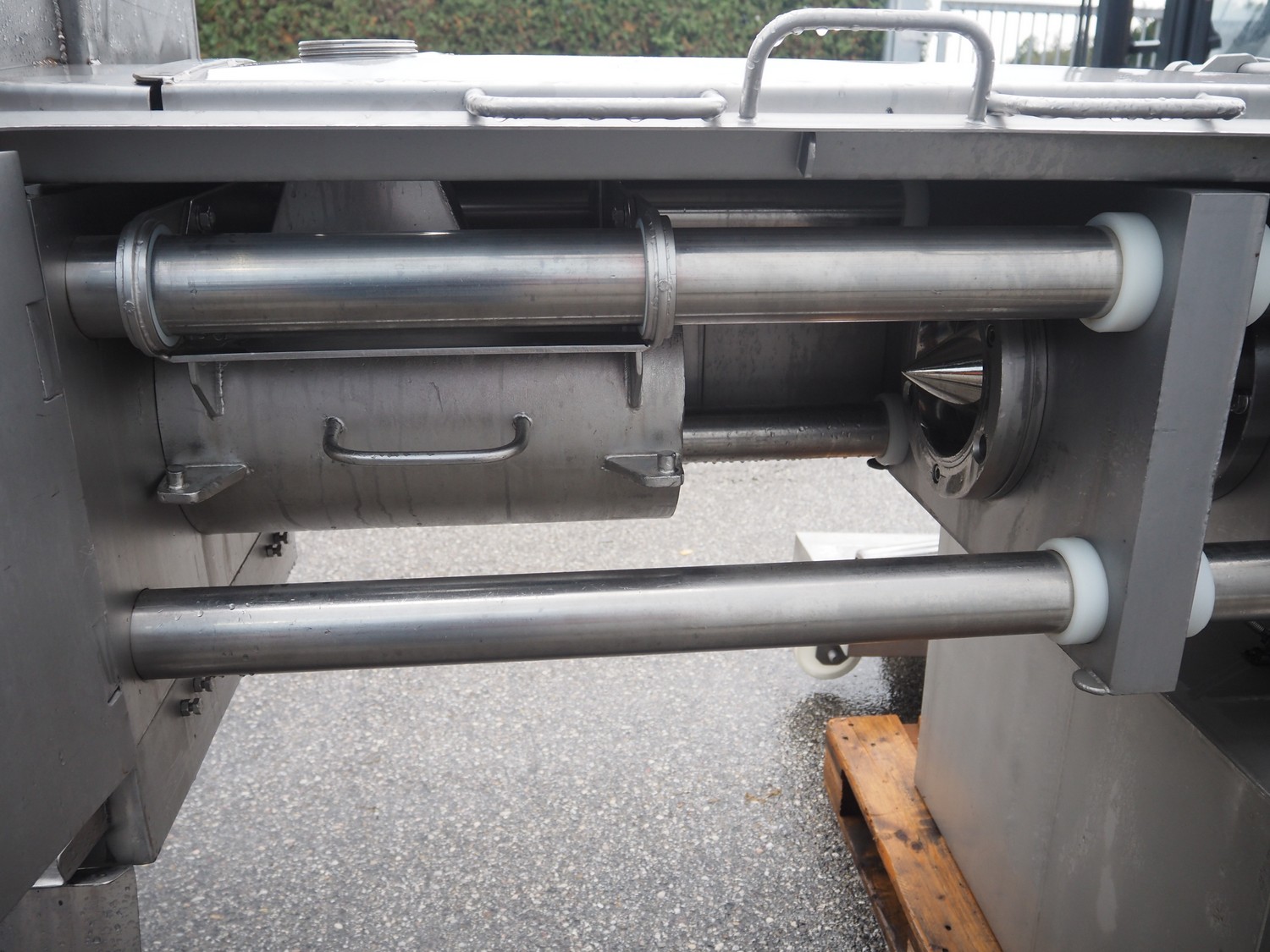 Inject Star separator, type: M16/P-60-S, number: 319, year of construction: 2000, 380 V, 3 Ph, 50 Hz, 18 kW, diameter drum: 210 mm, diameter perforations: 5 mm, total dimensions: 4350 mm x 1300 mm x 2200 mm. With lifter for meat bins and control panel. Technical condition unknown.