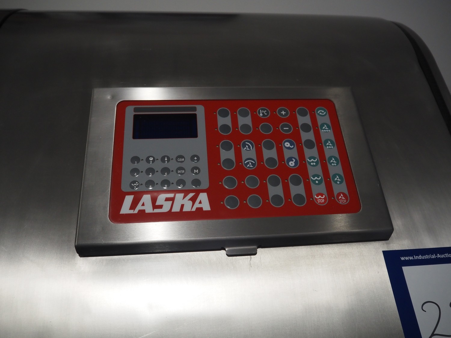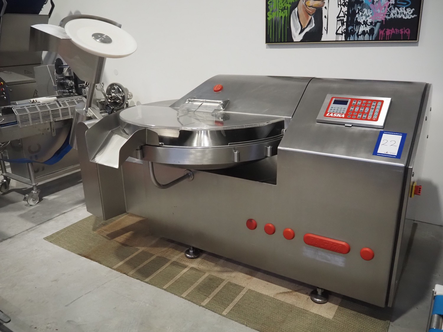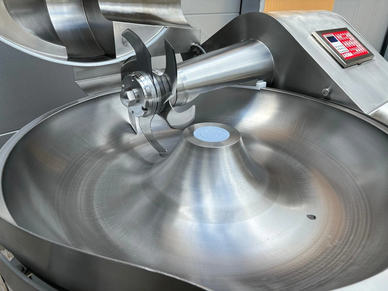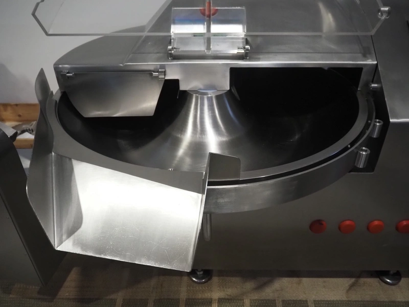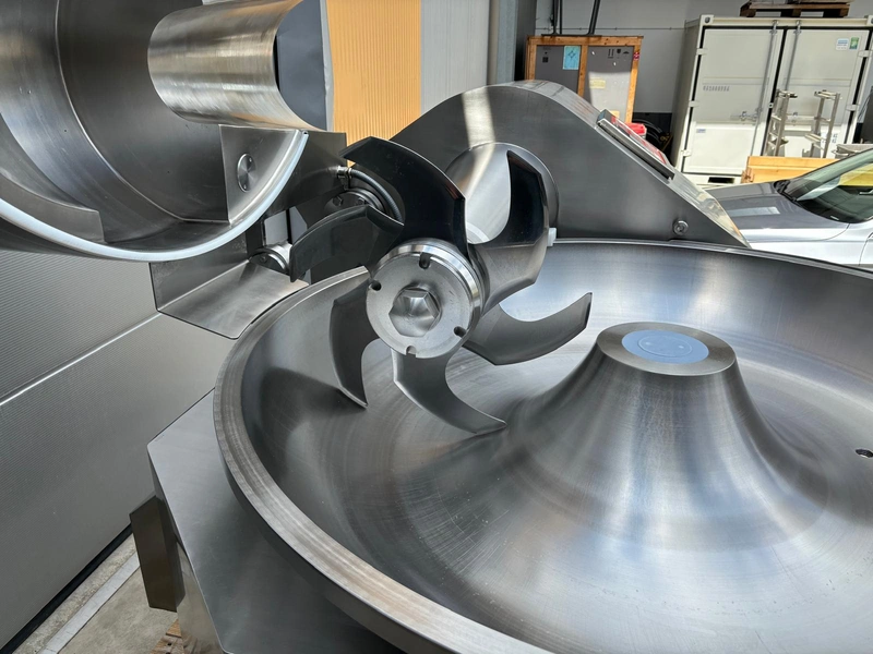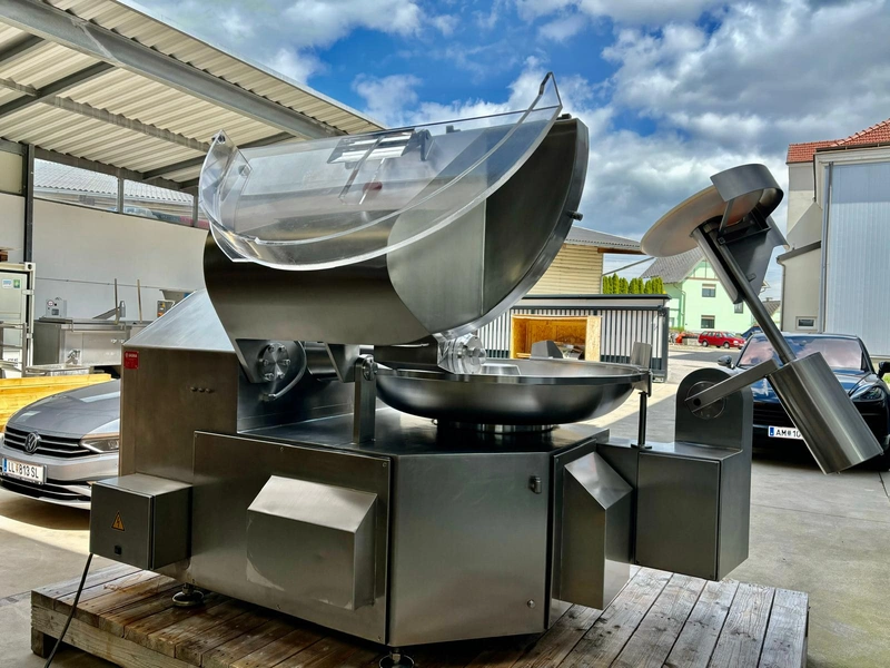 Laska cutter with ejector, type: KCU 200, machine number: 11663, year of construction: 2005, 380 V, 3 Ph, 50 Hz, 241 A, 94 kW, s/s bowl, volume: 200 liter, dimensions: 2750 mm x 1880 mm x 1900 mm.