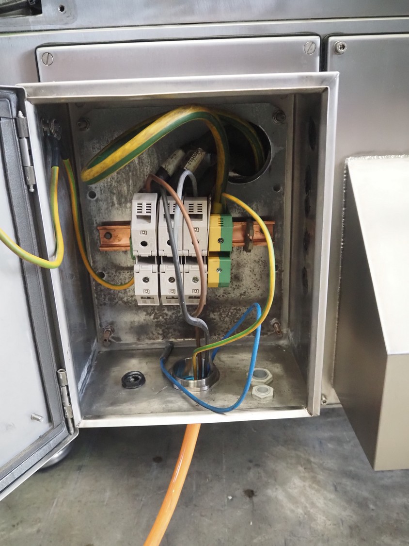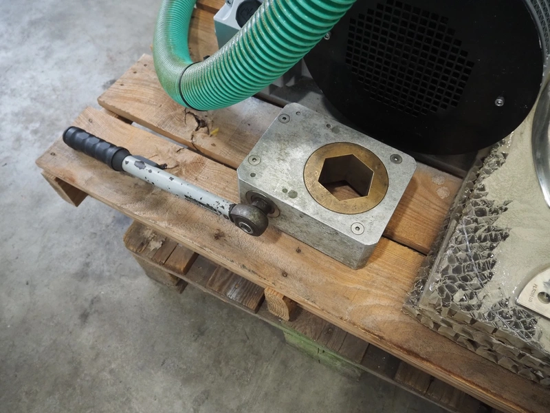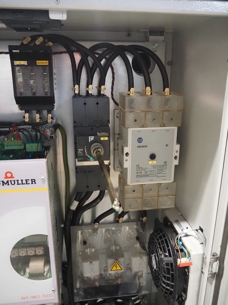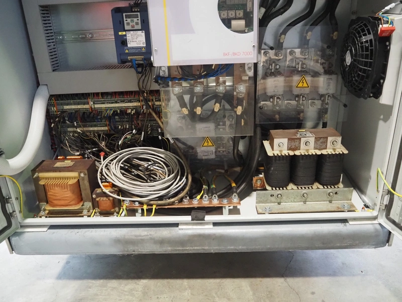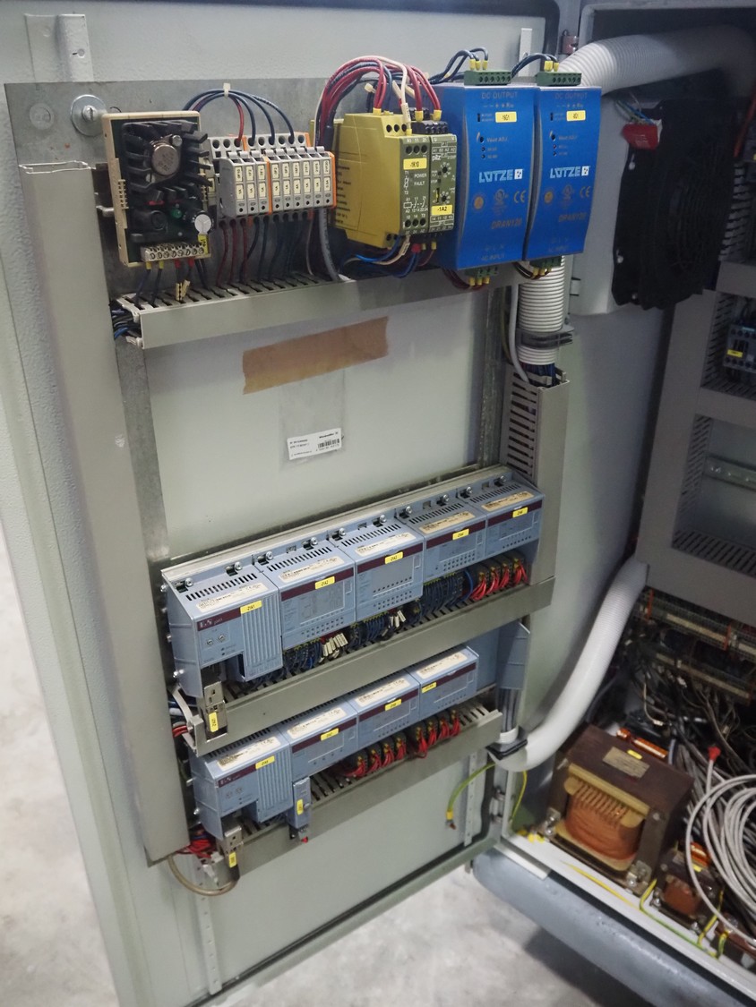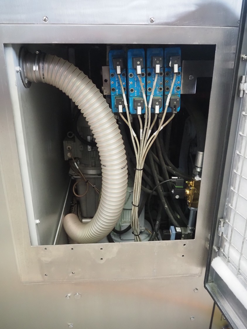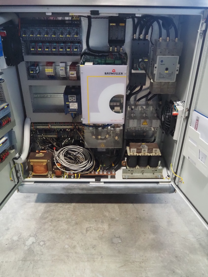 Laska vacuum cutter with lifter for meat bins and ejector, type: KU 200 V.DC, machine number: 14215, year of construction: 2012, 400 V, 3 PH, 60 Hz, 260 A, 103 kW, s/s bowl, volume: 200 liter, dimensions: 3300 mm x 2300 mm x 2000 mm. With Busch vacuum pump, type: RA 0160 D 5Z1 VRXZ, number: C1209000354, year of construction: 2012, capacity: 160 m³ per hour, and spare knife set. Completely overhauled.