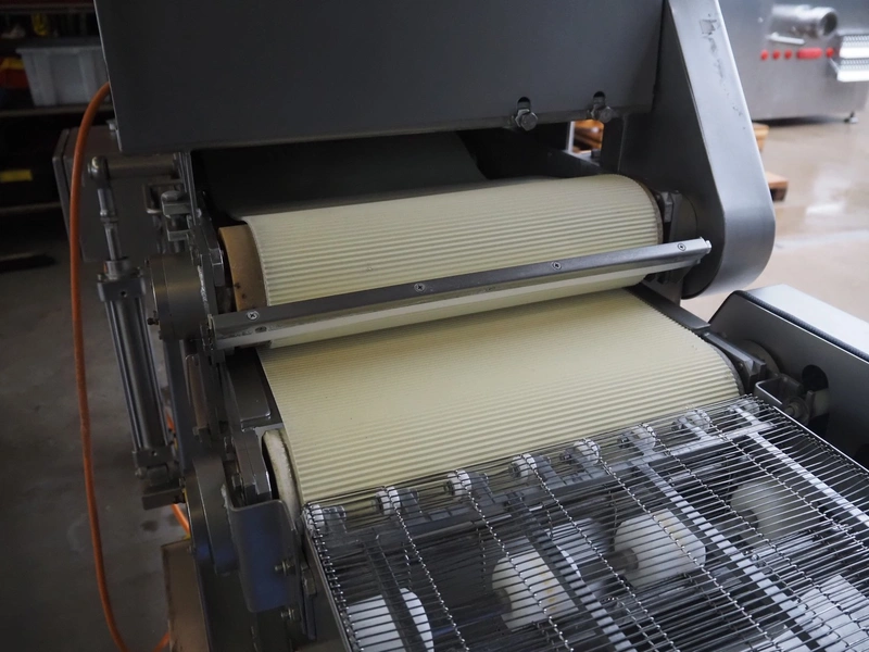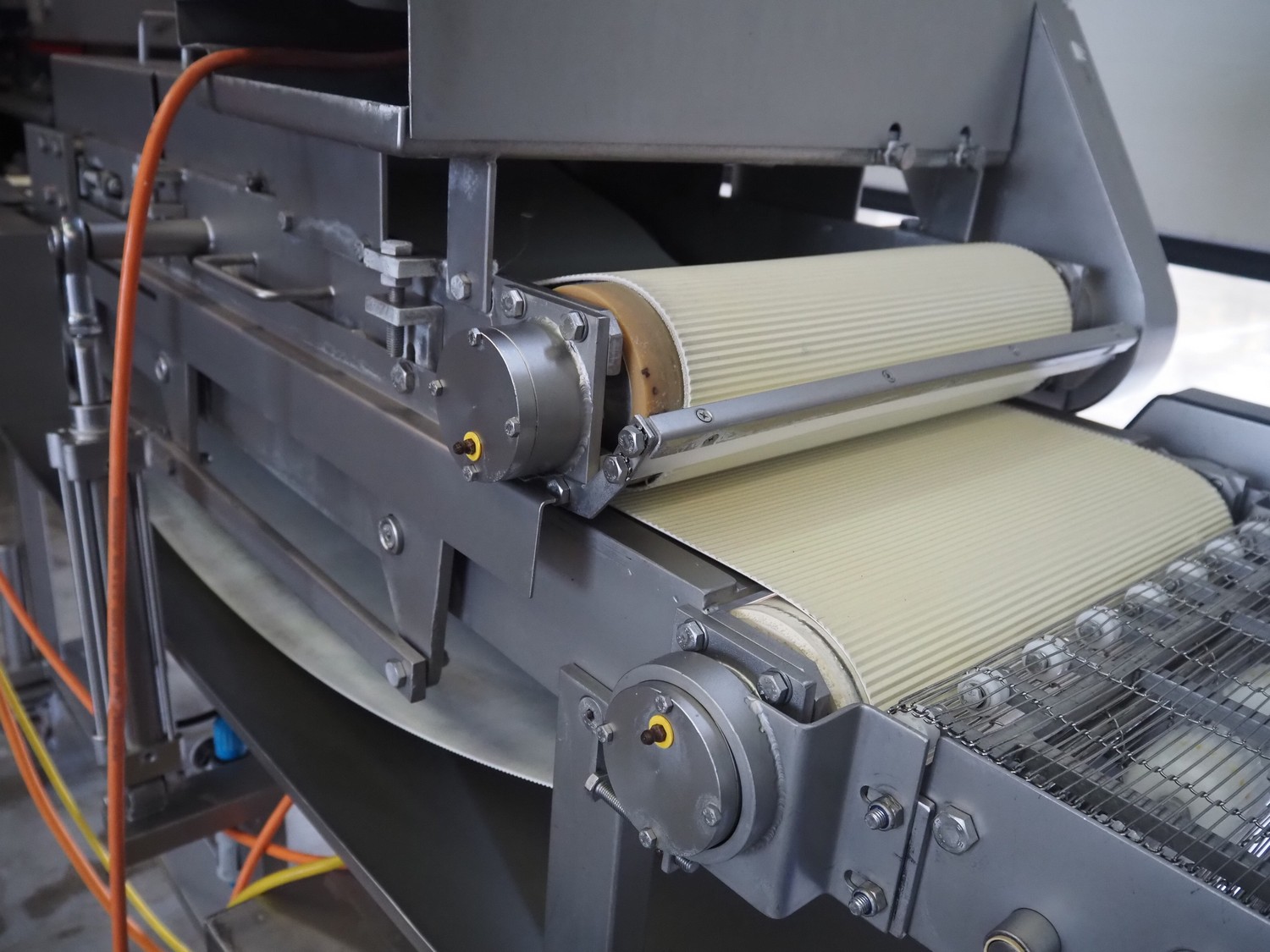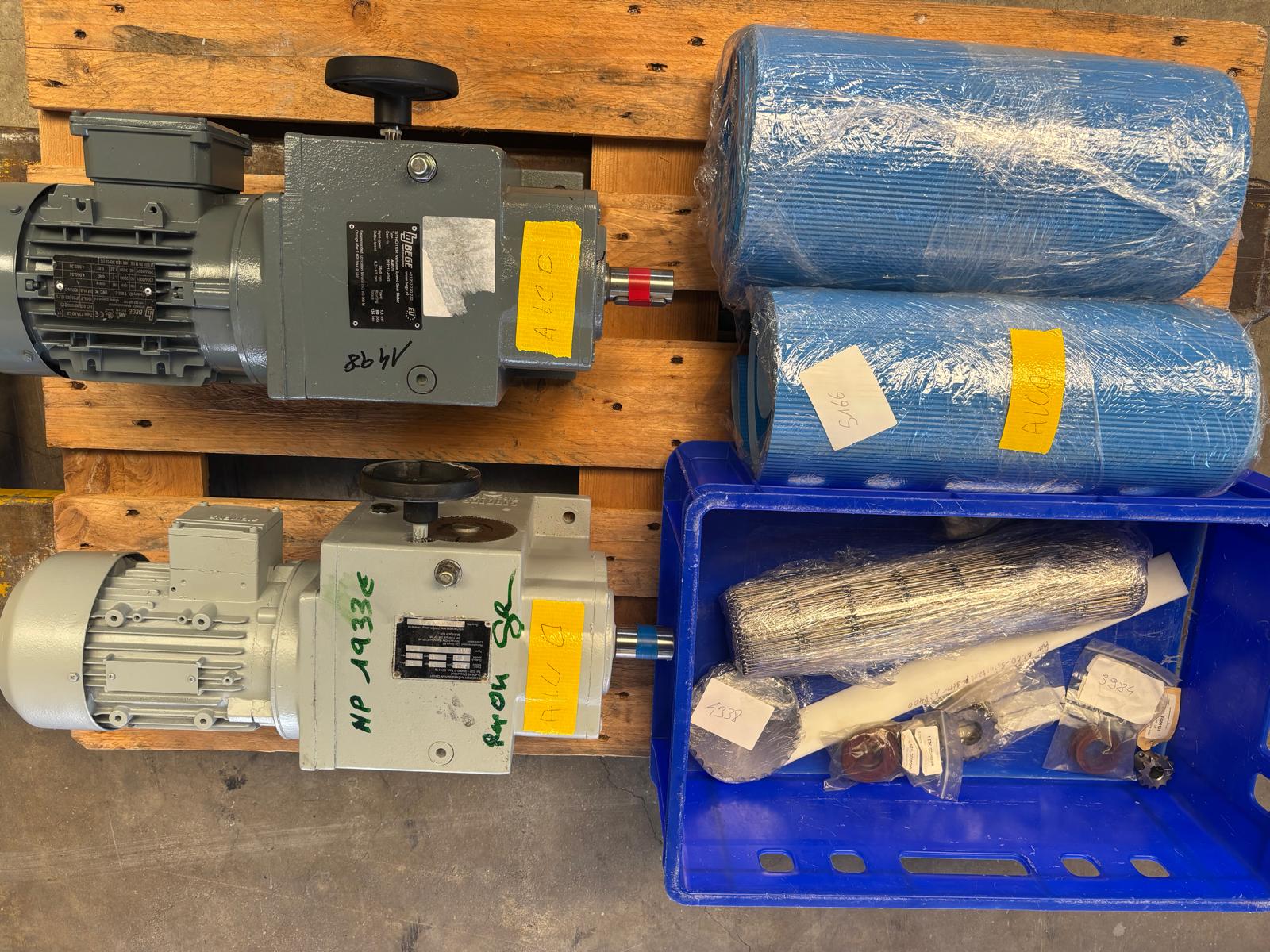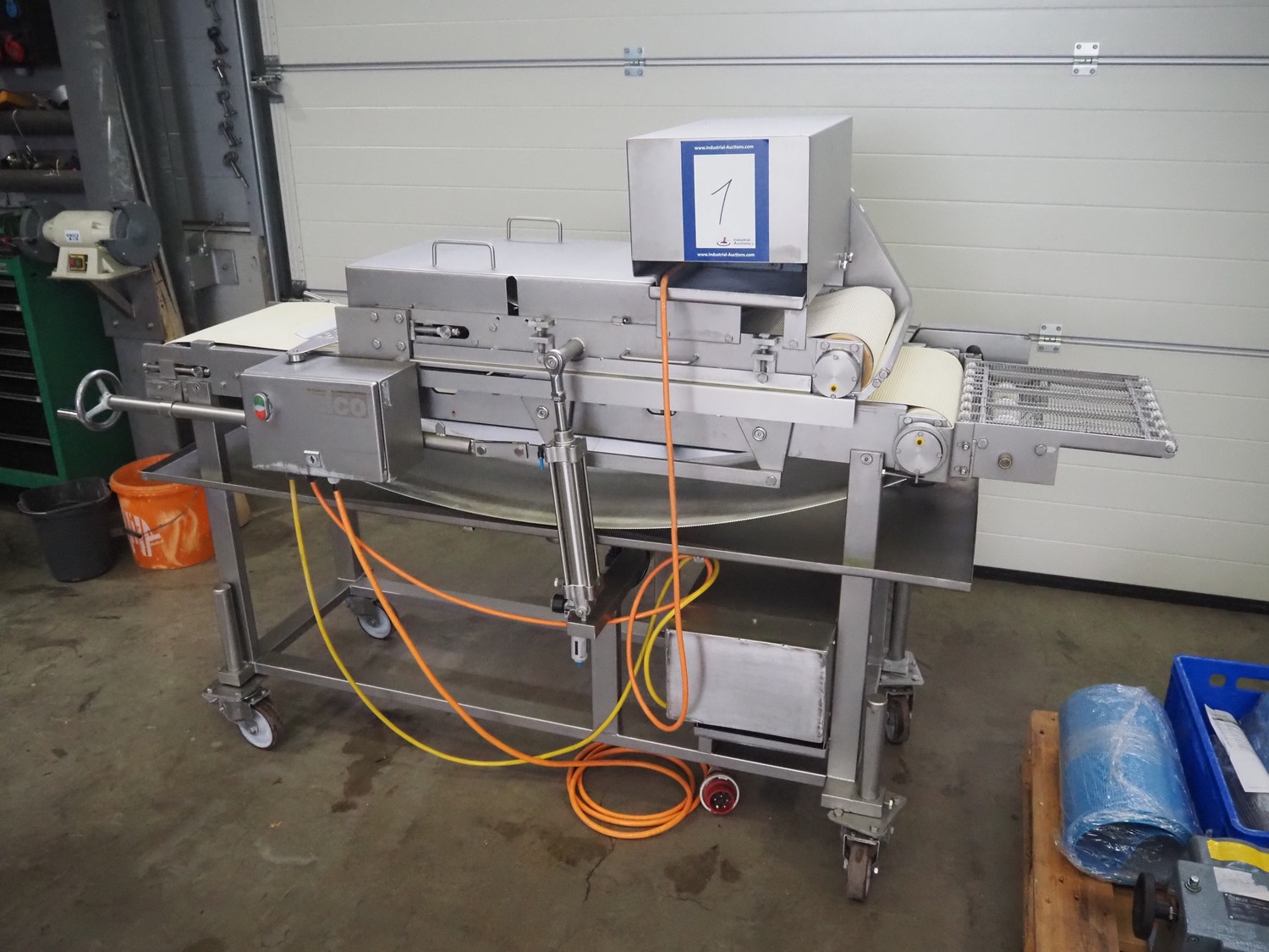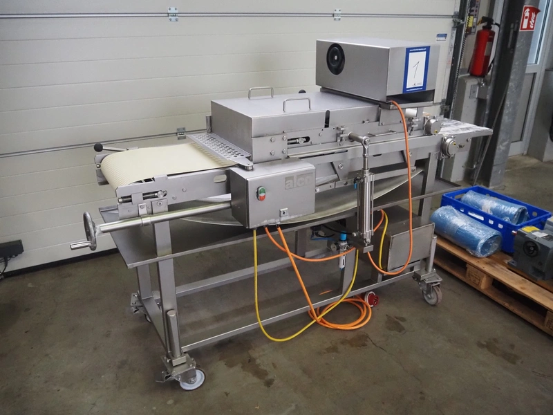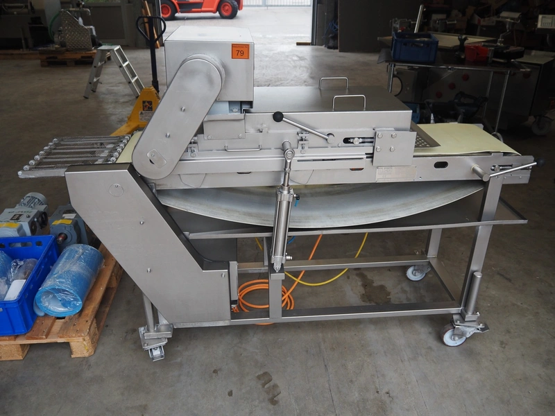 Alco food-machines GmbH & Co.KG mobile flattening machine, type: ASP 400 HDI, serial number: 17704212, year of construction: 2001, 400 V, 2.2 kW, plastic and s/s mesh belt, belt width: 400 mm, total dimensions: 2200 mm x 800 mm x 1400 mm. With pallet with spare parts.