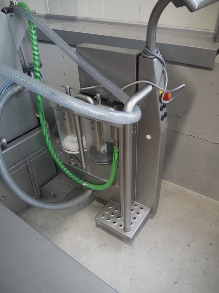 Inject Star cooled tiltable vacuum tumbler, model: Magnum 2600-CSL, number: MAG2600-141, year of construction: 2008, 400 V, 3 Ph, 50 Hz, 9 kW, volume: 2600 liter, dimensions: 3900 mm x 2350 mm x 2600 mm. With cabinet with Busch vacuum pump, type: RA 0063 F 4S3, number: 100063962, year of construction: 2010, capacity: 63 m³ per hour.