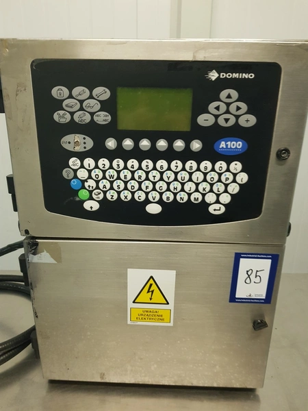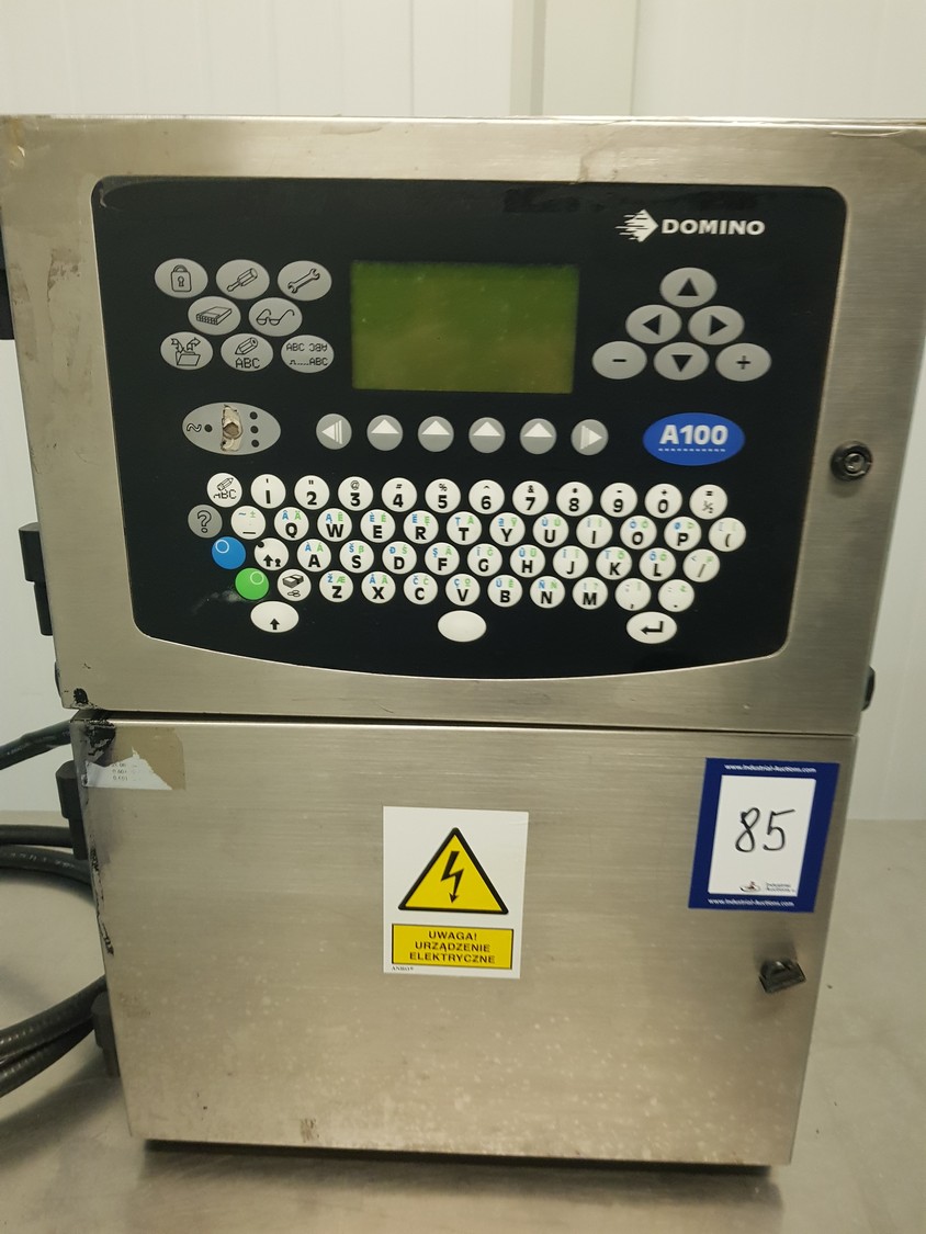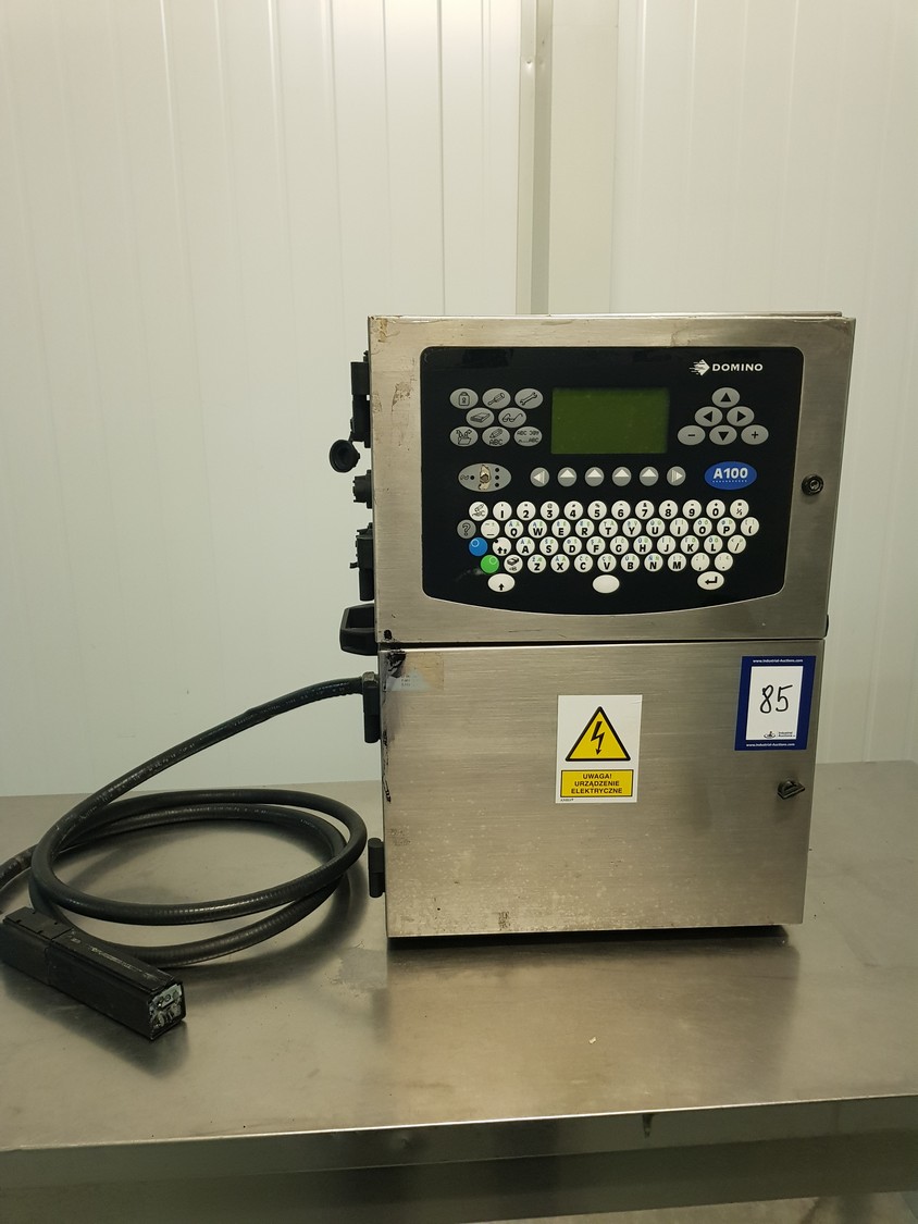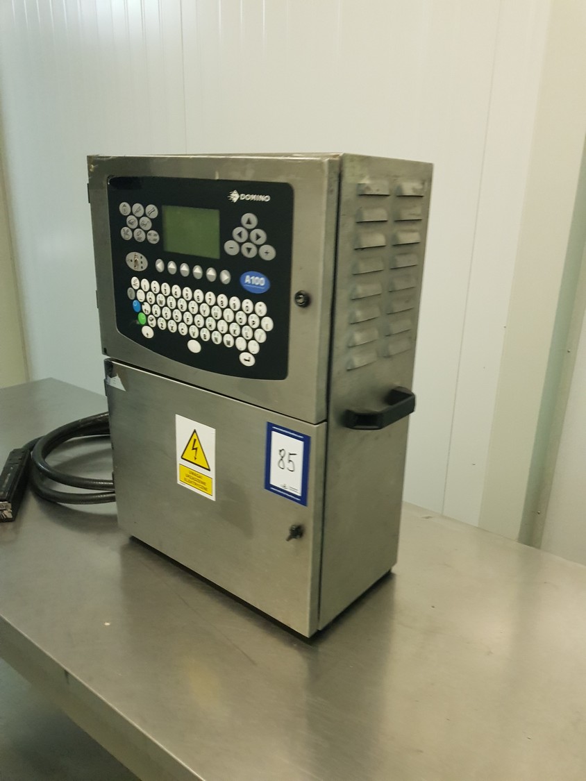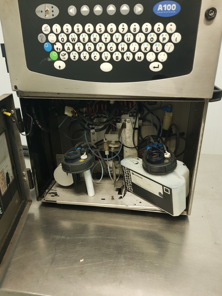 Domino inkjet printer, model: A100, serial number: N1A09056, dimensions: 600 mm x 350 mm x 750 mm. Incomplete.