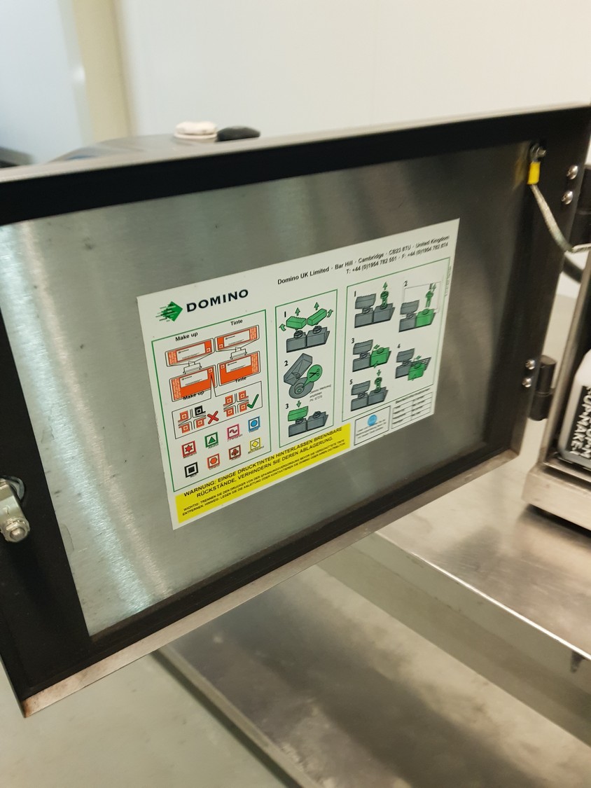 Domino inkjet printer, model: A200+, serial number: N113971, dimensions: 600 mm x 350 mm x 750 mm.