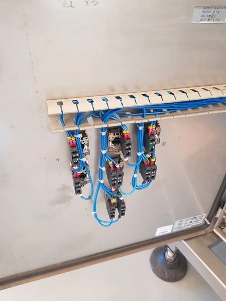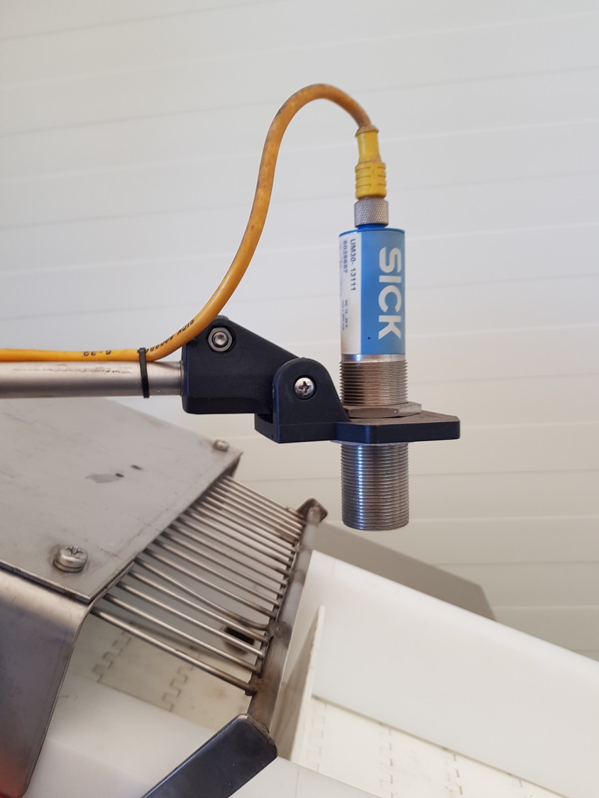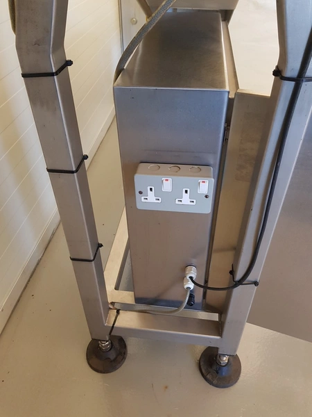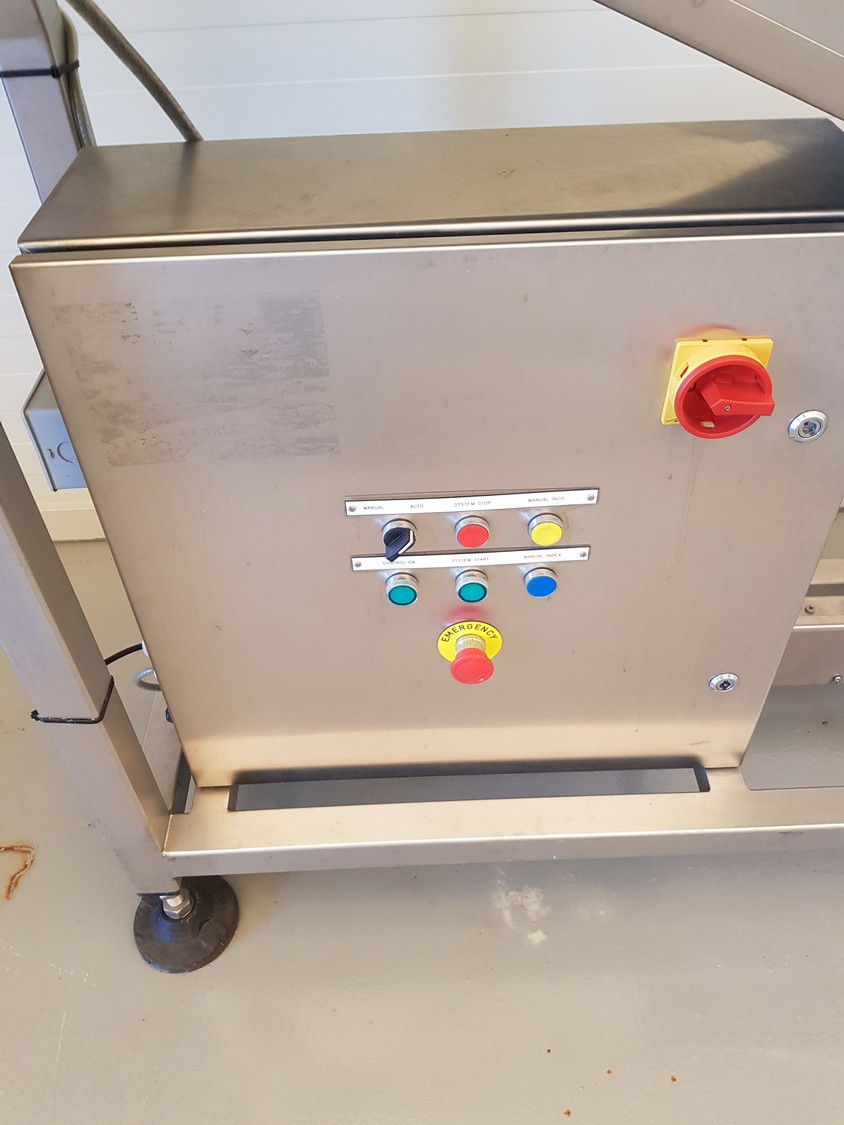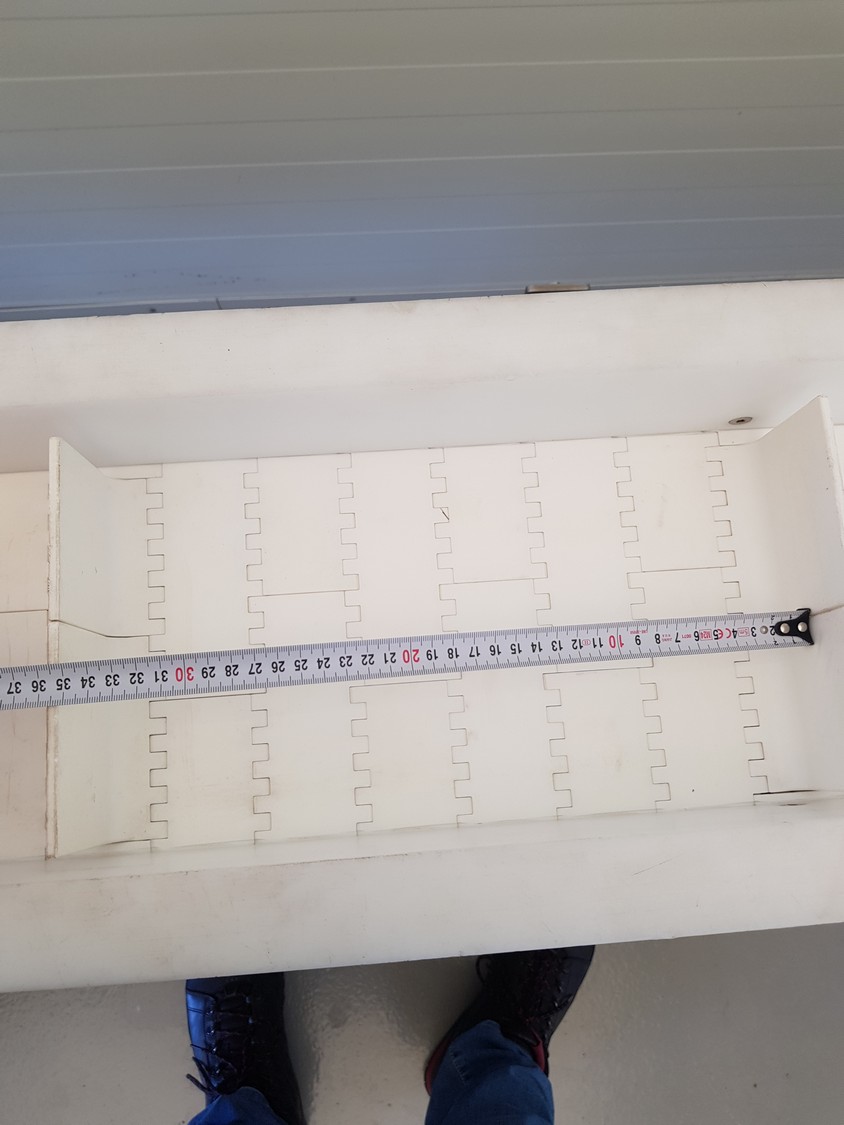 Marco Weighing Systems Ltd. elevating belt, number: 18185, year of construction: Dec 2006, belt width: 200 mm, distance between dividers: 350 mm, elevating height: 1650 mm, dimensions: 7750 mm x 600 mm x 1850 mm.