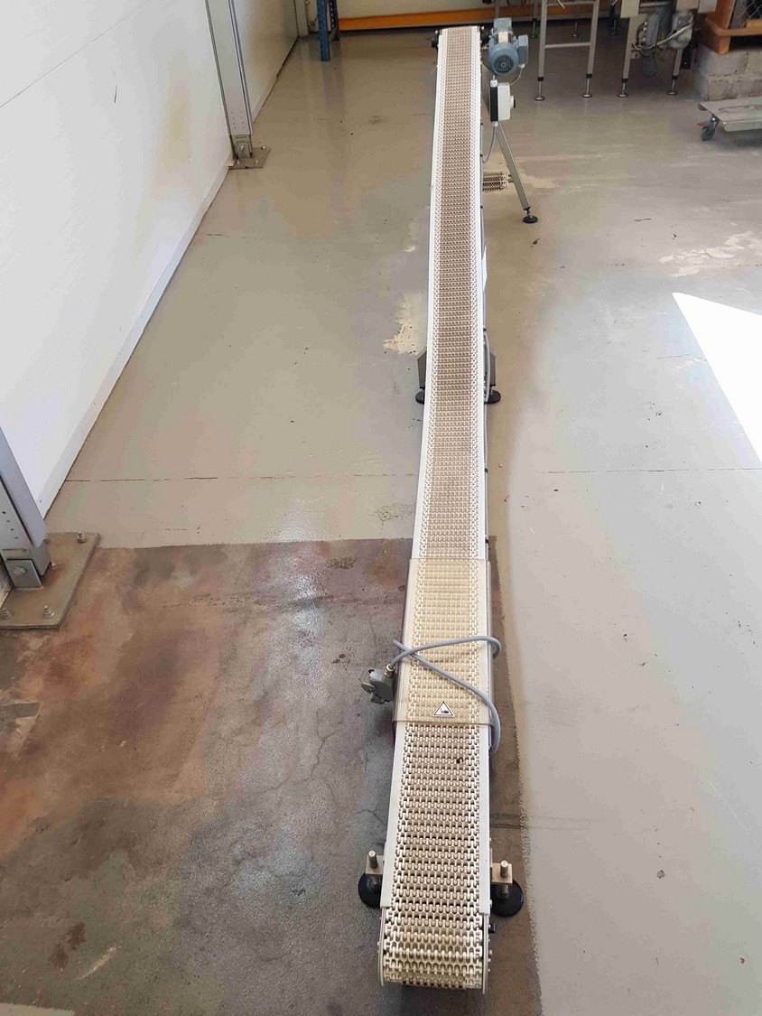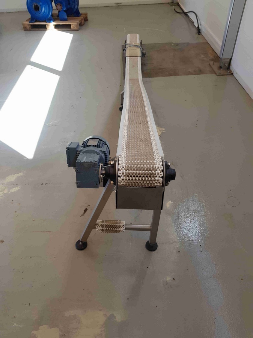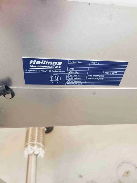 Hellings Machinebouw B.V. elevating belt, year of construction: 2011, plastic belt, belt width: 175 mm, elevating height: 900 mm, total dimensions: 4400 mm x 580 mm x 1000 mm.