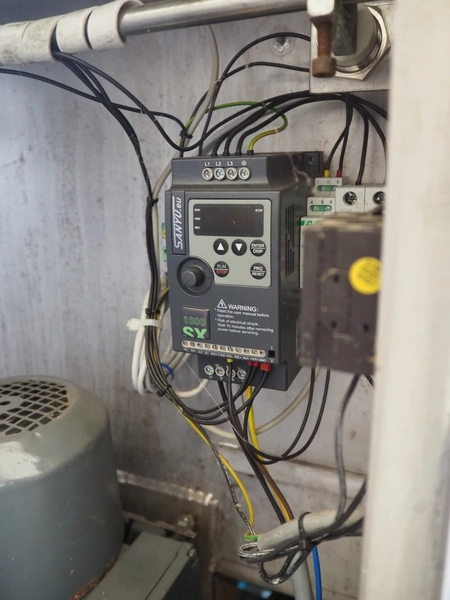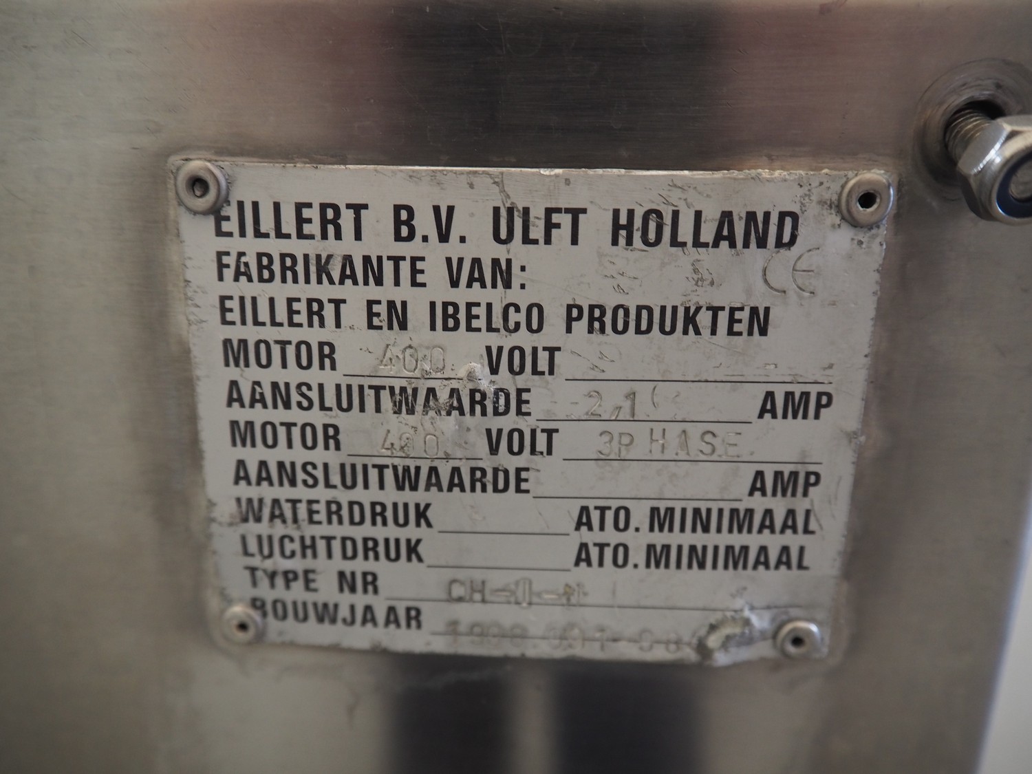 Eillert B.V. vegetable centrifuge, type: CH-1N, 400 V, 3 Ph, 2.1 A, dimensions: 1100 mm x 900 mm x 800 mm.