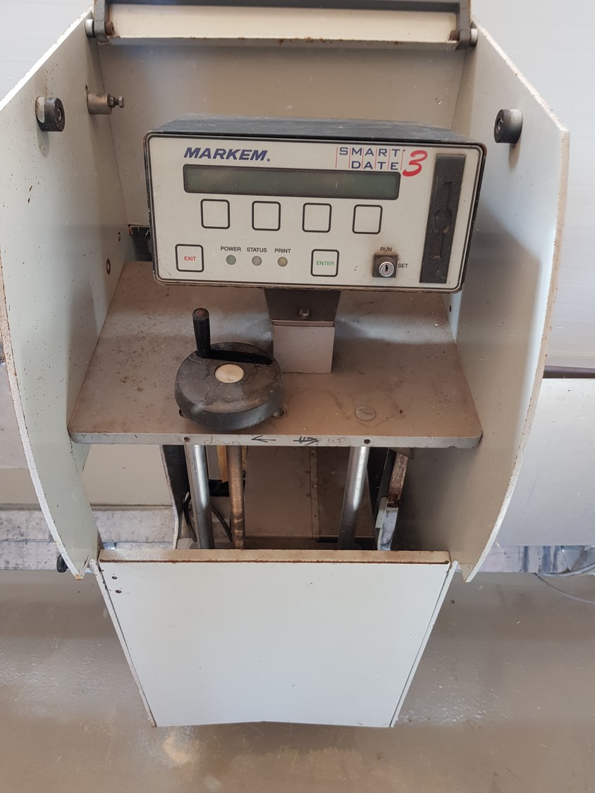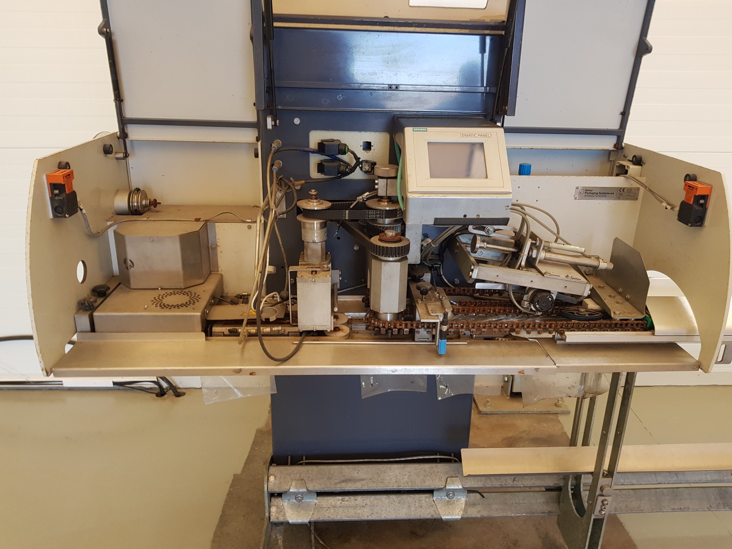 Schur Packaging Systems a/s mobile horizontal bag forming and sealing machine, type: 3020, number: 511-BG/C Y077, year of construction: 2003, seal length: 300 mm, belt width: 135 mm, total dimensions: 7000 mm x 1000 mm x1500 mm.