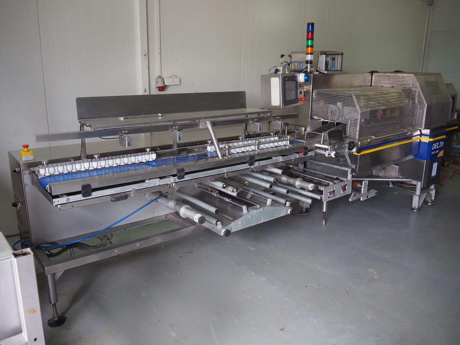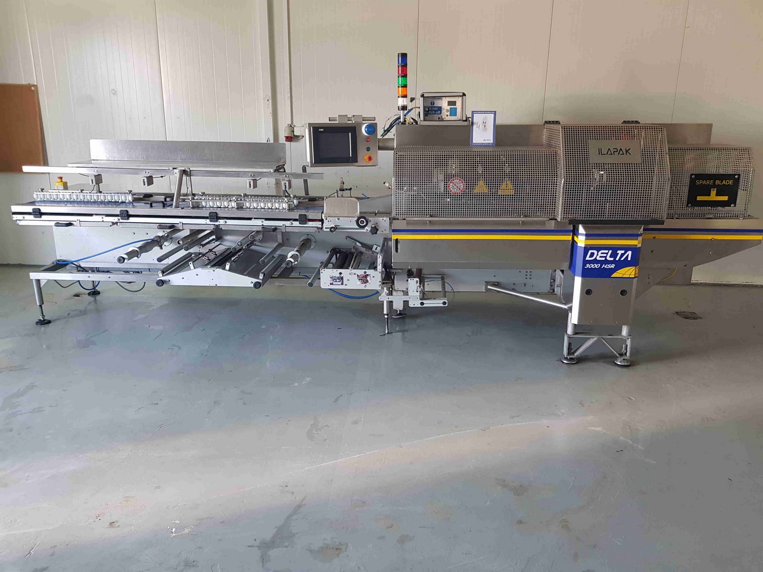 Ilapak flowpacker, type: DELTA 3000 LDR, serial number: D.250.02.015, year of construction: 10.2006, 400 V, 50 Hz, 7000 W, seal length: 600 mm and 220 mm, belt width: 150 mm, total dimensions: 2800 mm x 1500 mm x 1700 mm.