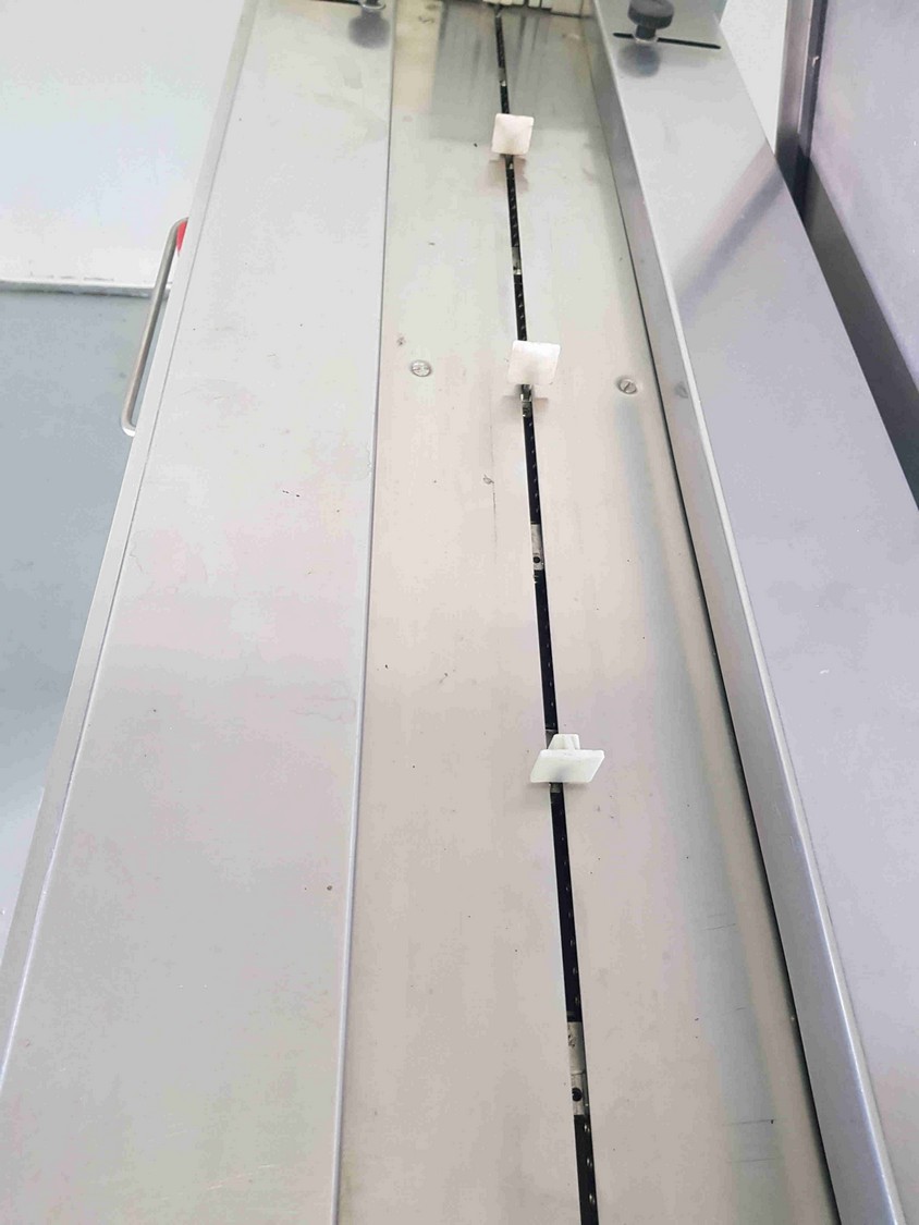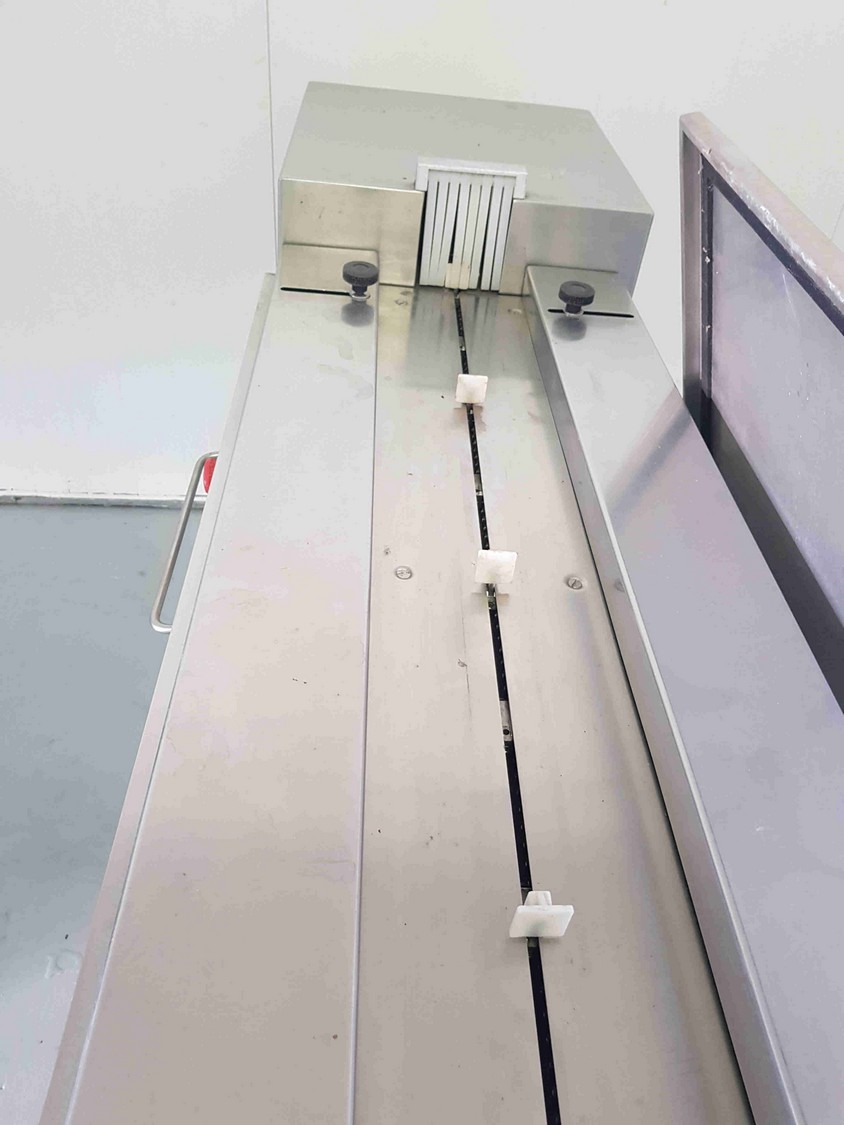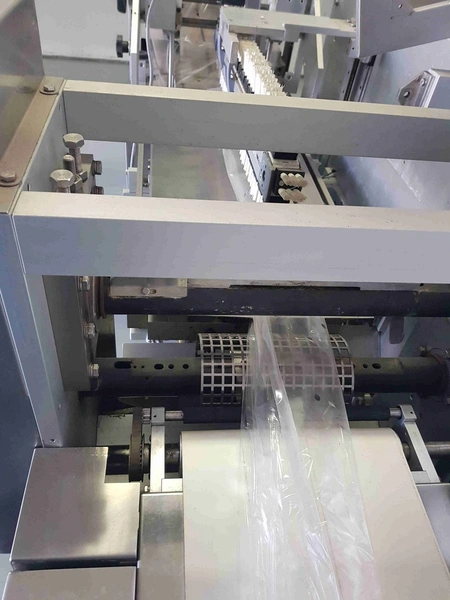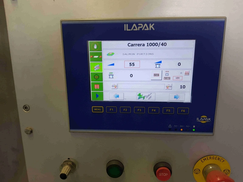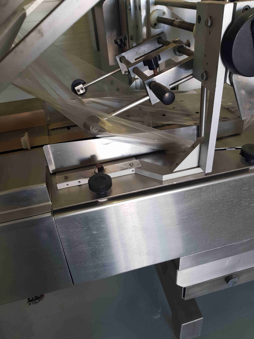 Ilapak flowpacker, type: CARRERA 1000/40, serial number: 0640490095, year of construction: 05-2014, 400 V, 60 Hz, 4250 W, film width: 480 mm, seal length: 250 mm, plastic belt, belt width: 150 mm, distance between dividers: 280 mm, total dimensions: 4700 mm x 1400 mm x 1800 mm.