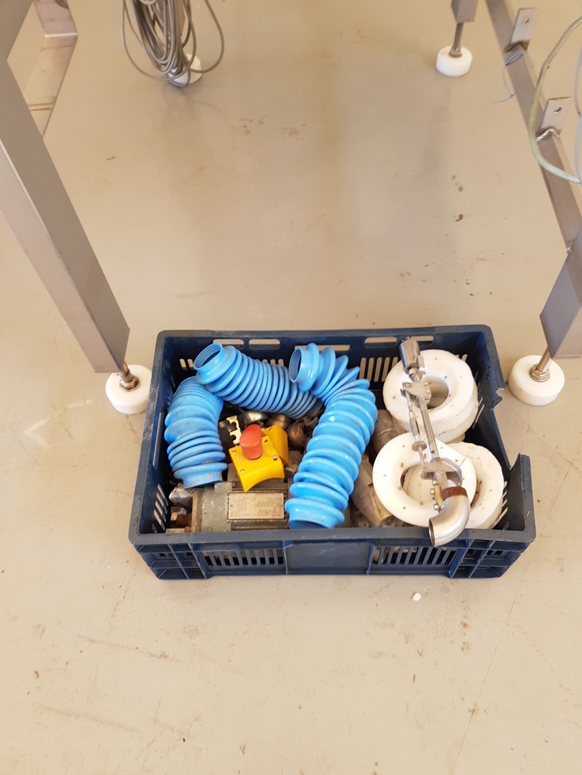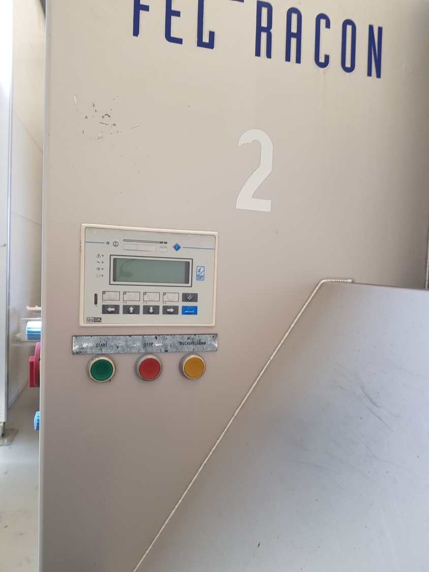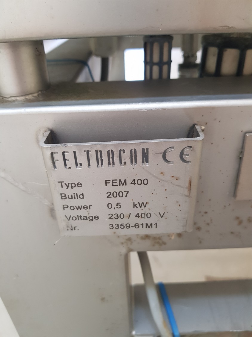 Feltracon melon peeler, type: FEM 400, number: 3359-61M1, year of construction: 2007, 230/400 V, 0.5 kW, dimensions: 1500 mm x 1100 mm x 2170 mm. Incomplete.