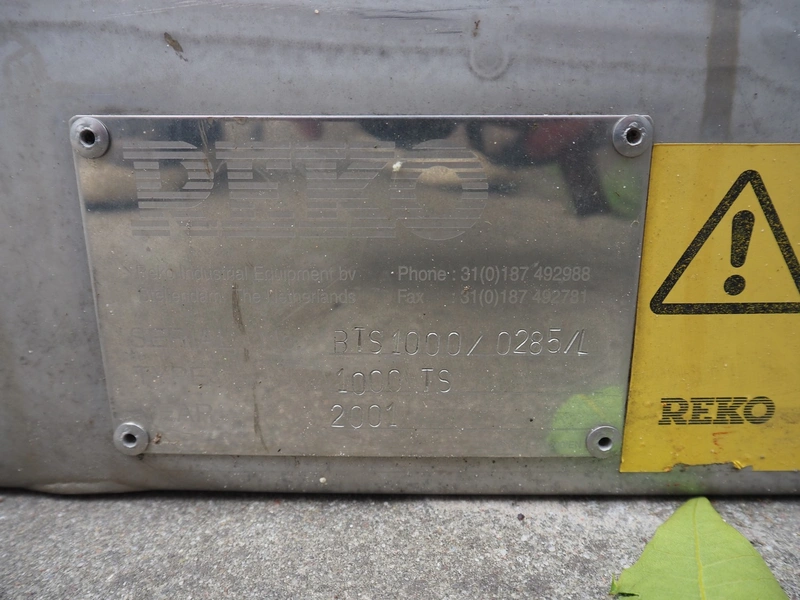 REKO sieve filter, type: 1000 TS, serial number: BTS1000/0285/L, year of construction: 2001, perforations width: 1 mm, total dimension: 1100 mm x 1100 mm x 1500 mm.