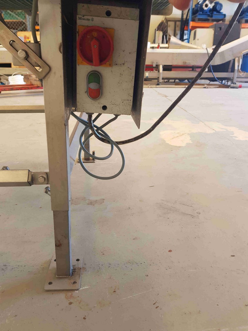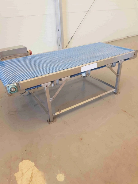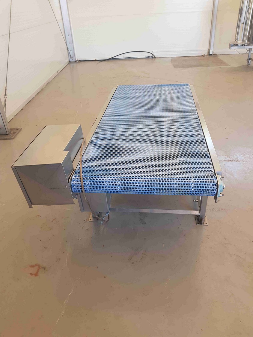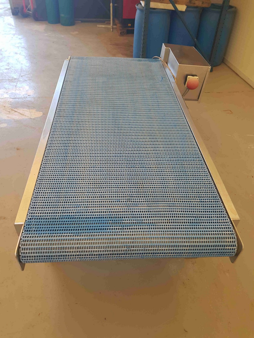 Opal transport belt, serial number: OP1053005, year of construction: 31-05-05, s/s frame, plastic mesh belt, belt width: 600 mm, dimensions: 2100 mm x 1000 mm x 1200 mm.