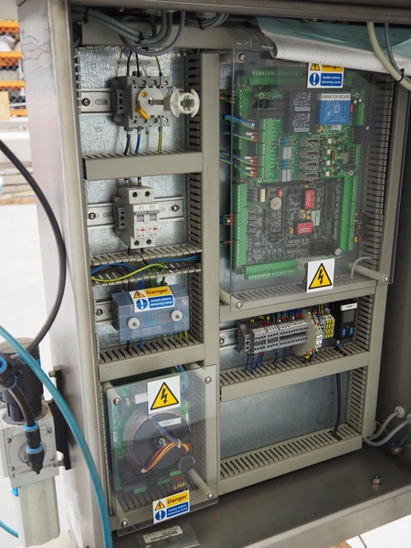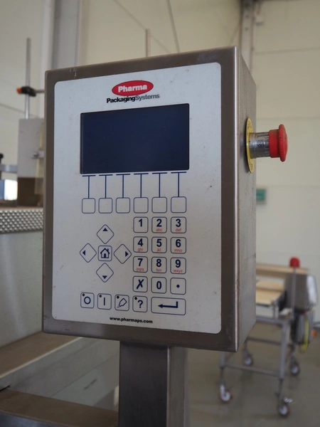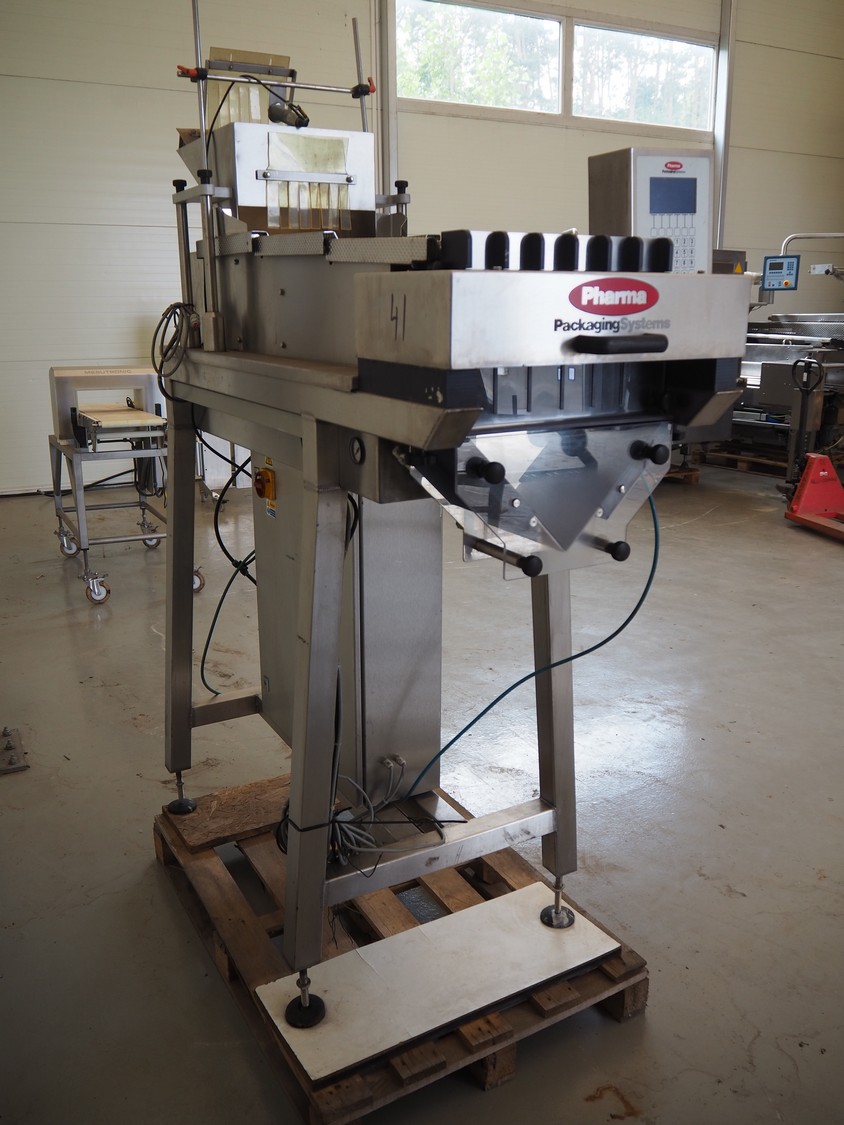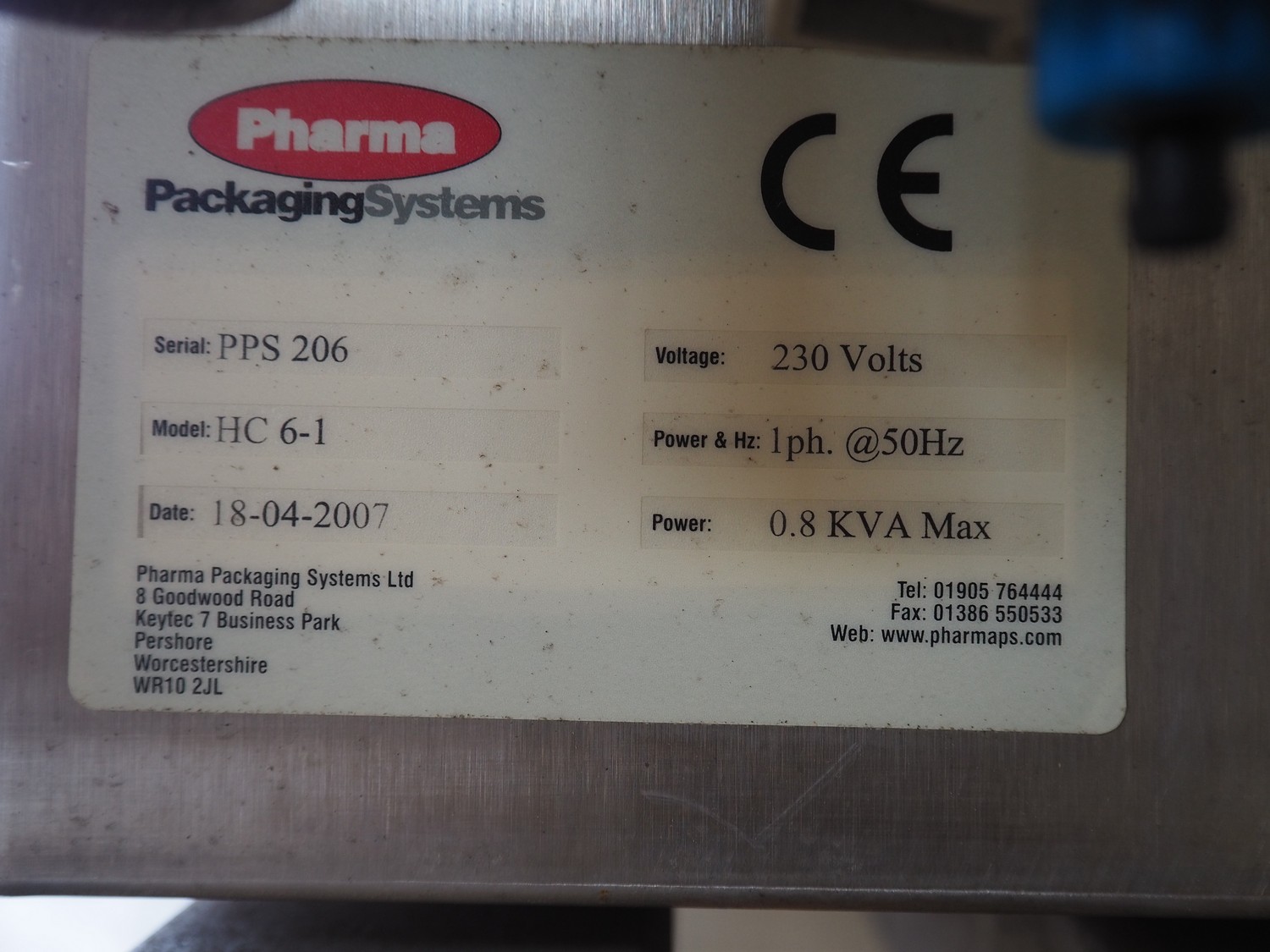 Pharma Packaging Systems vibrating and counting gutter, model: HC 6-1, serial number: PPS 206, year of construction: 18-04-2007, 230 V, 1 Ph, 50 Hz, 0.8 kVa, 6 lanes gutter, total dimensions: 1600 mm x 1100 mm x 2200 mm.