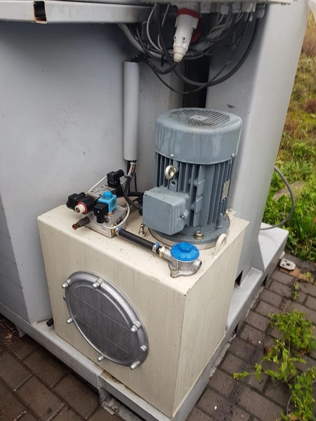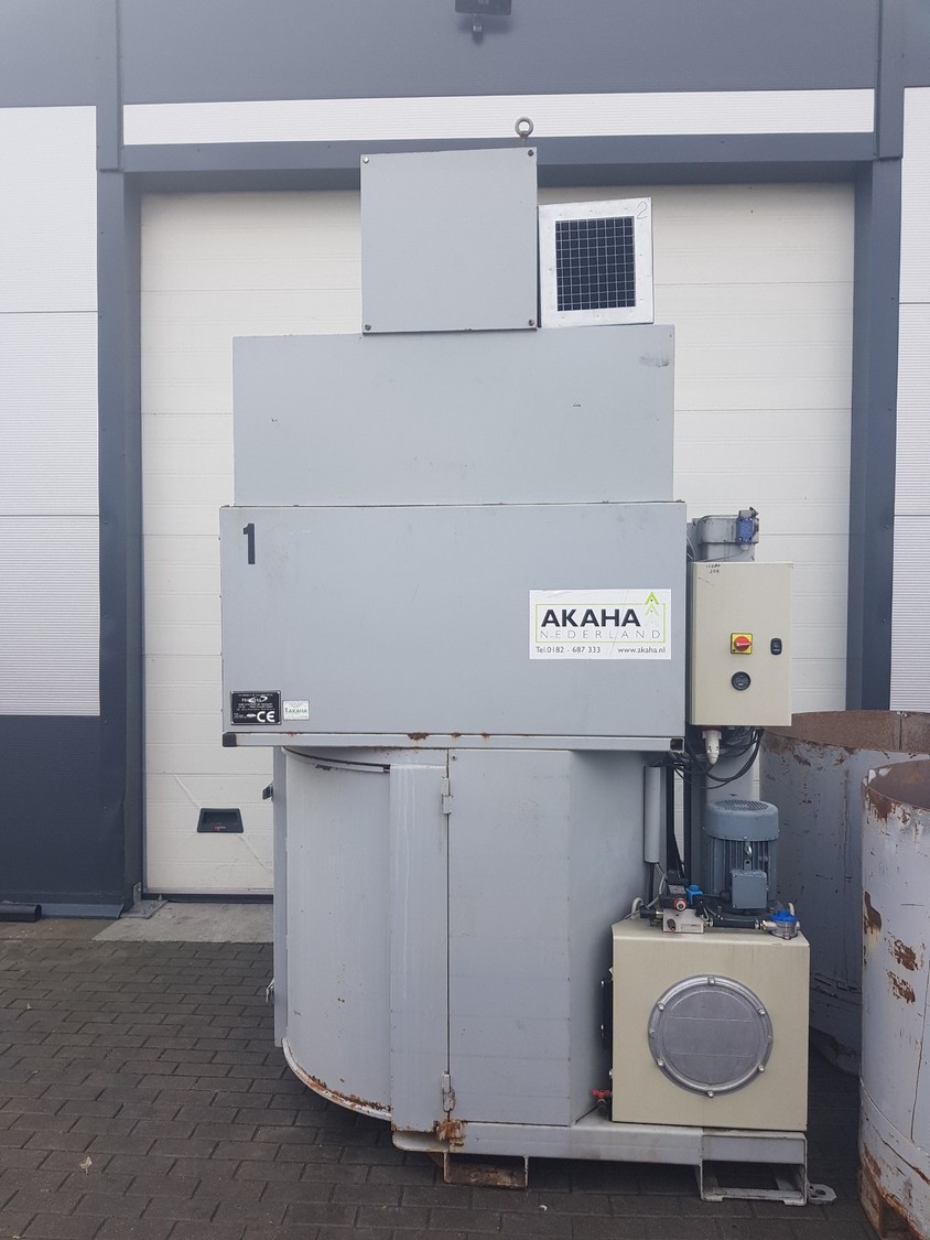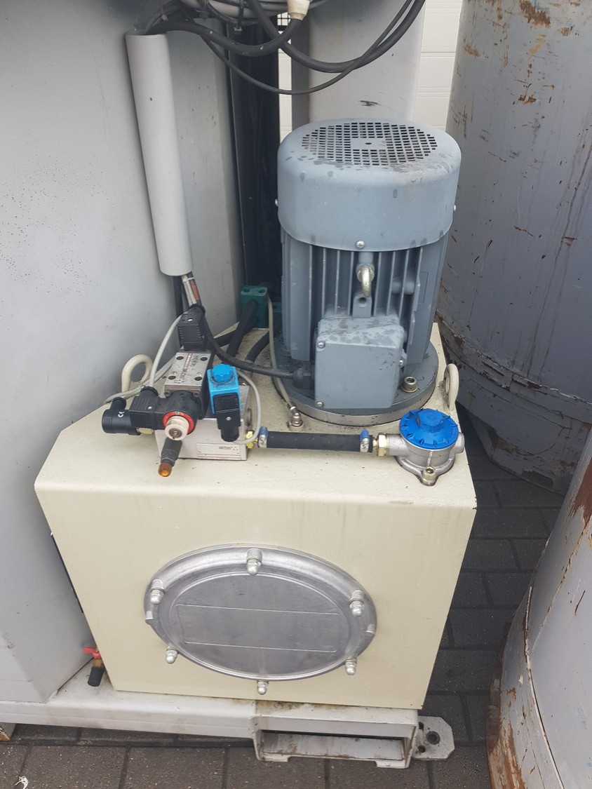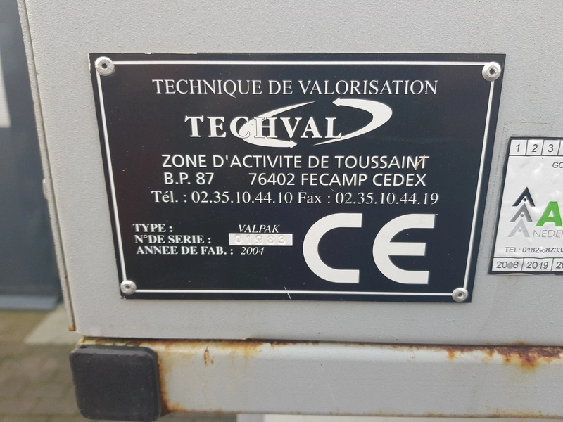 Techval waste baler and 2 containers, type: VALPAK, serial number: 01983, year of construction: 2004, dimensions: 2450 mm x 1800 mm x 3050 mm and (2x) ⌀ 1260 mm x 1200 mm.