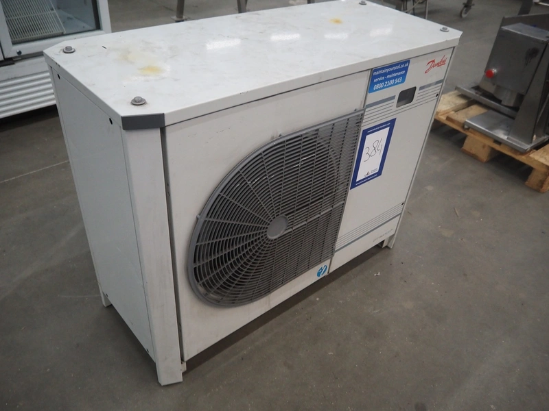 Danfoss outside cooling unit, type: OP-MPHM026AJP00E, serial number: 027931CG4114, 400 V, 3 Ph, 50 Hz, dimensions: 1100 mm x 450 mm x 830 mm.