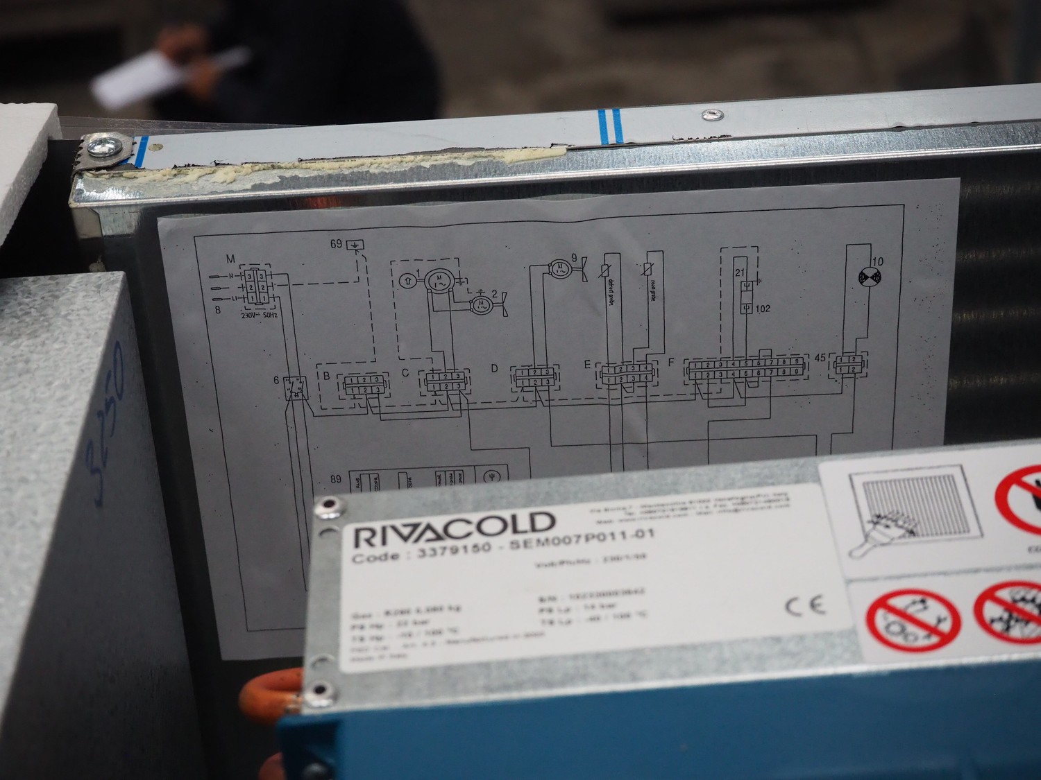 Franstal refrigerator, type: FSANE7-0P4H, 230 V, 50 Hz, 1.2 A, 210 Watt, refrigerant: R290, 0.08 kg, 20 floors, floor dimensions: (20x) 635 mm x 525 mm, total dimensions: 800 mm 690 mm x 2000 mm.