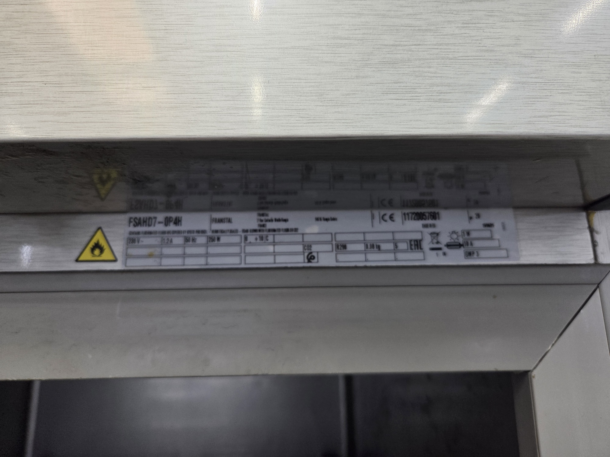 Franstal refrigerator, type: FSAHD7-OP4H, serial number: 11720057601, 230 V, 50 Hz, 1.2 A, 250 Watt, 4 floors, dimensions each floor: 650 mm x 520 mm, total dimensions: 720 mm x 800 mm x 2000 mm.