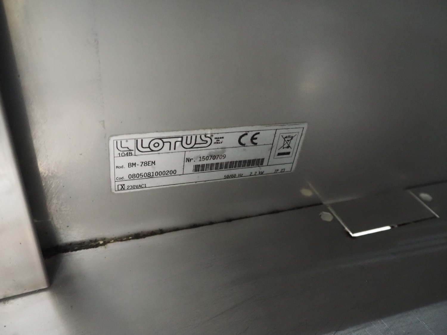 Lotus au-bin marie, model: BM-78EM, number: 15070709, 230 V, 1 Ph, 50/60 Hz, 2.2 kW, dimensions: 800 mm x 1020 mm x 720 mm.