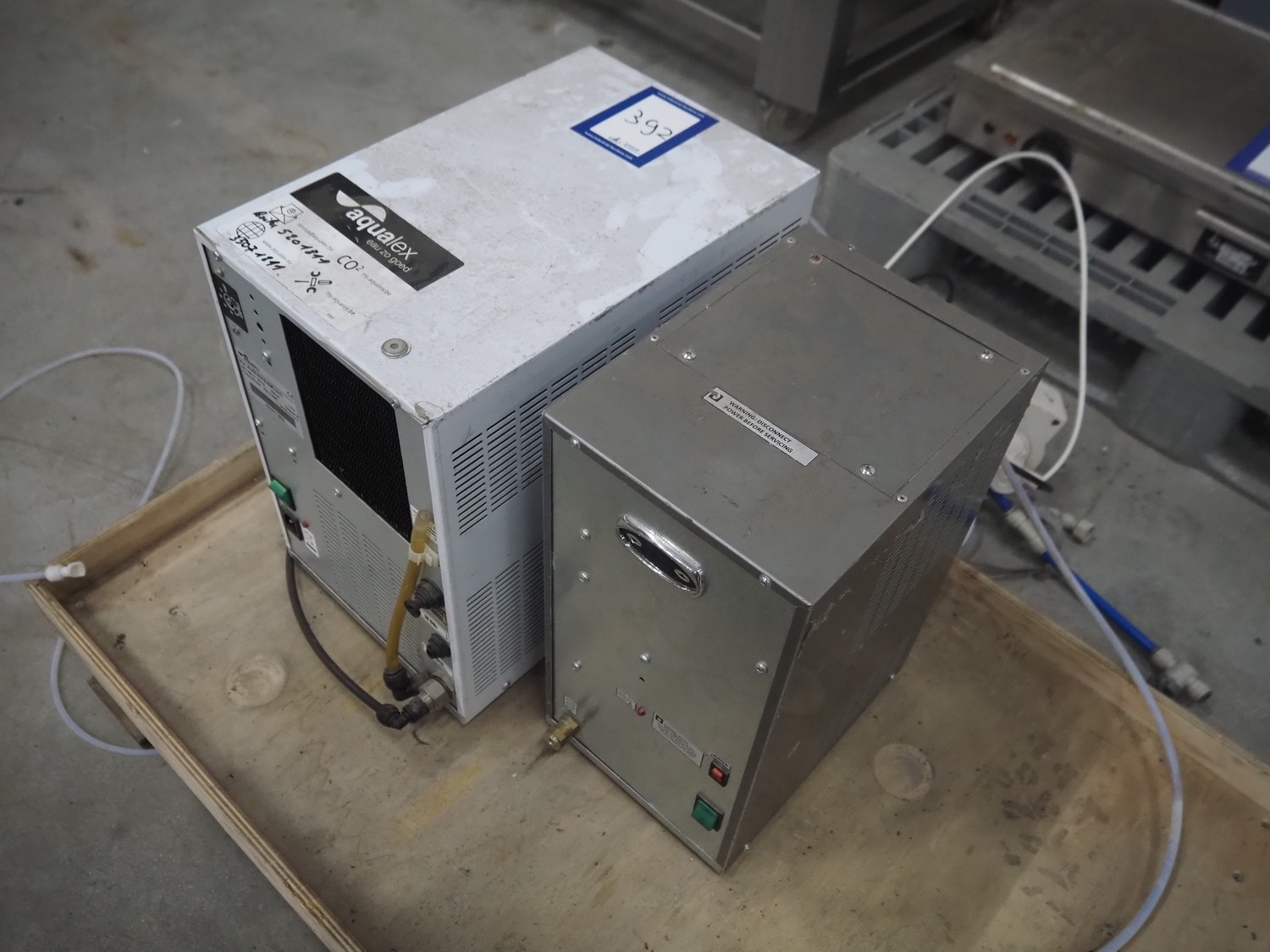 Aqualex water cooler and hot boiler, model: JCLASS IN 45 IB ACWG and HOT BOILER EVO, dimensions: 260 mm x 400 mm x 400 mm and 200 mm x 300 mm x 400 mm.