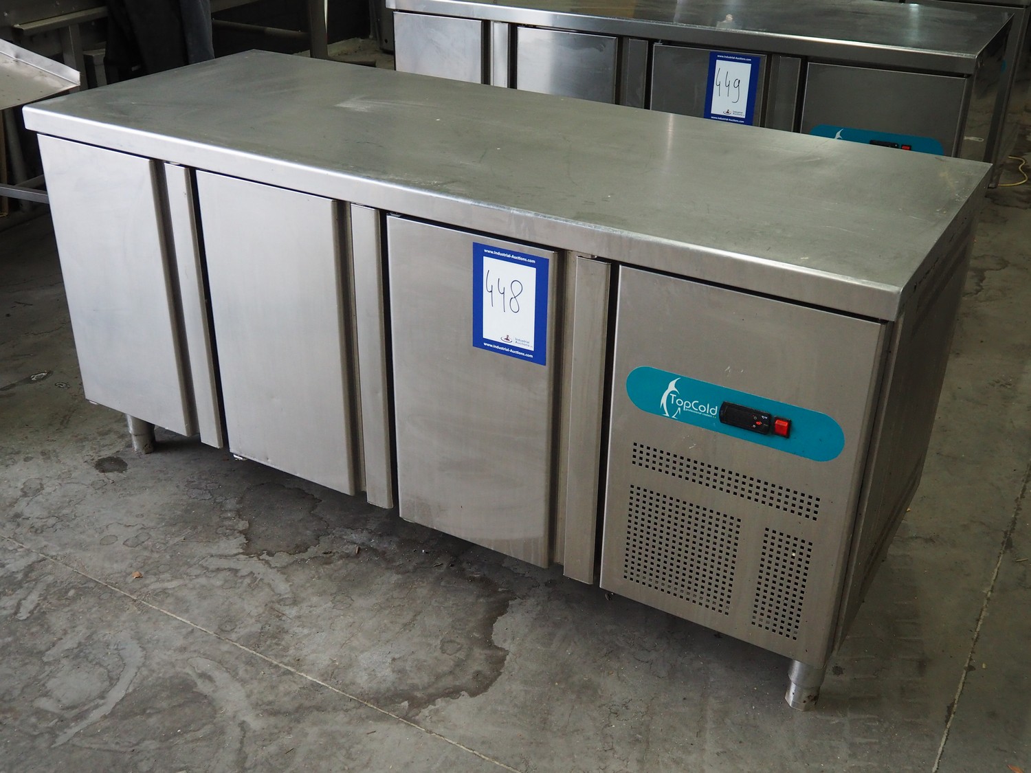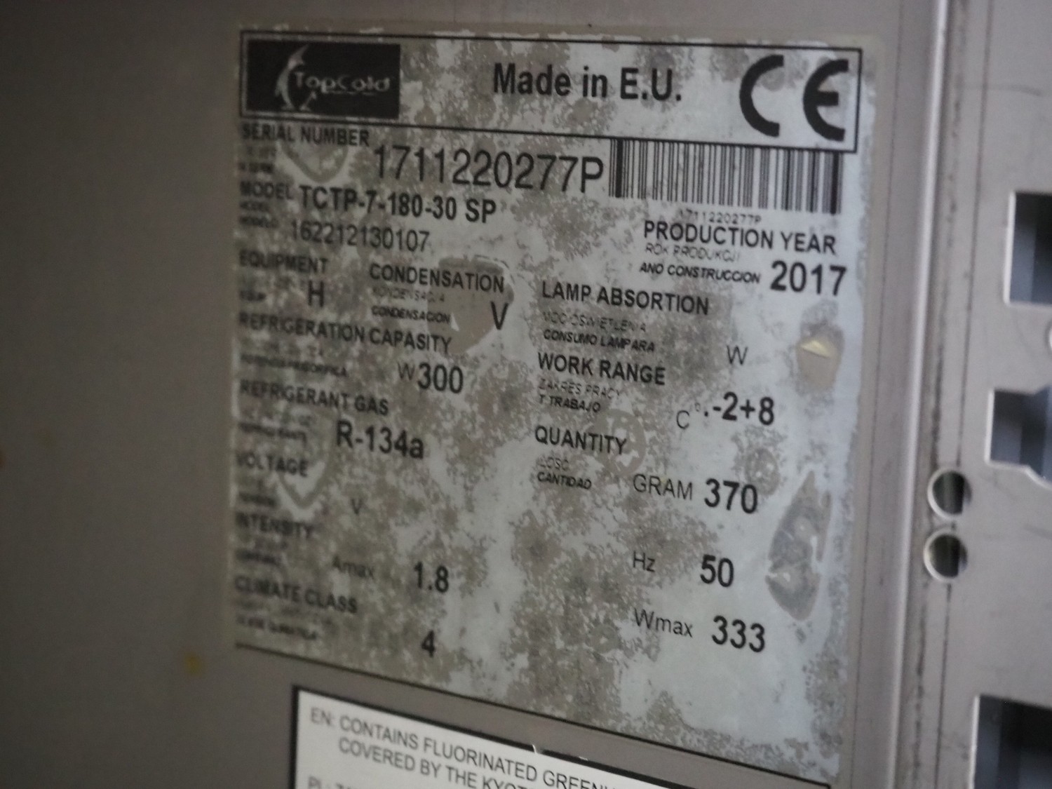 Top Cold refrigerated counter, model: TCTP-7-180-30 SP, serial number: 1711220277P, year of construction: 2017, 50 Hz, refrigerant: R-134a, 370 gram, floor dimensions: 570 mm x 330 mm, total dimensions: 1800 mm x 700 mm x 900 mm.